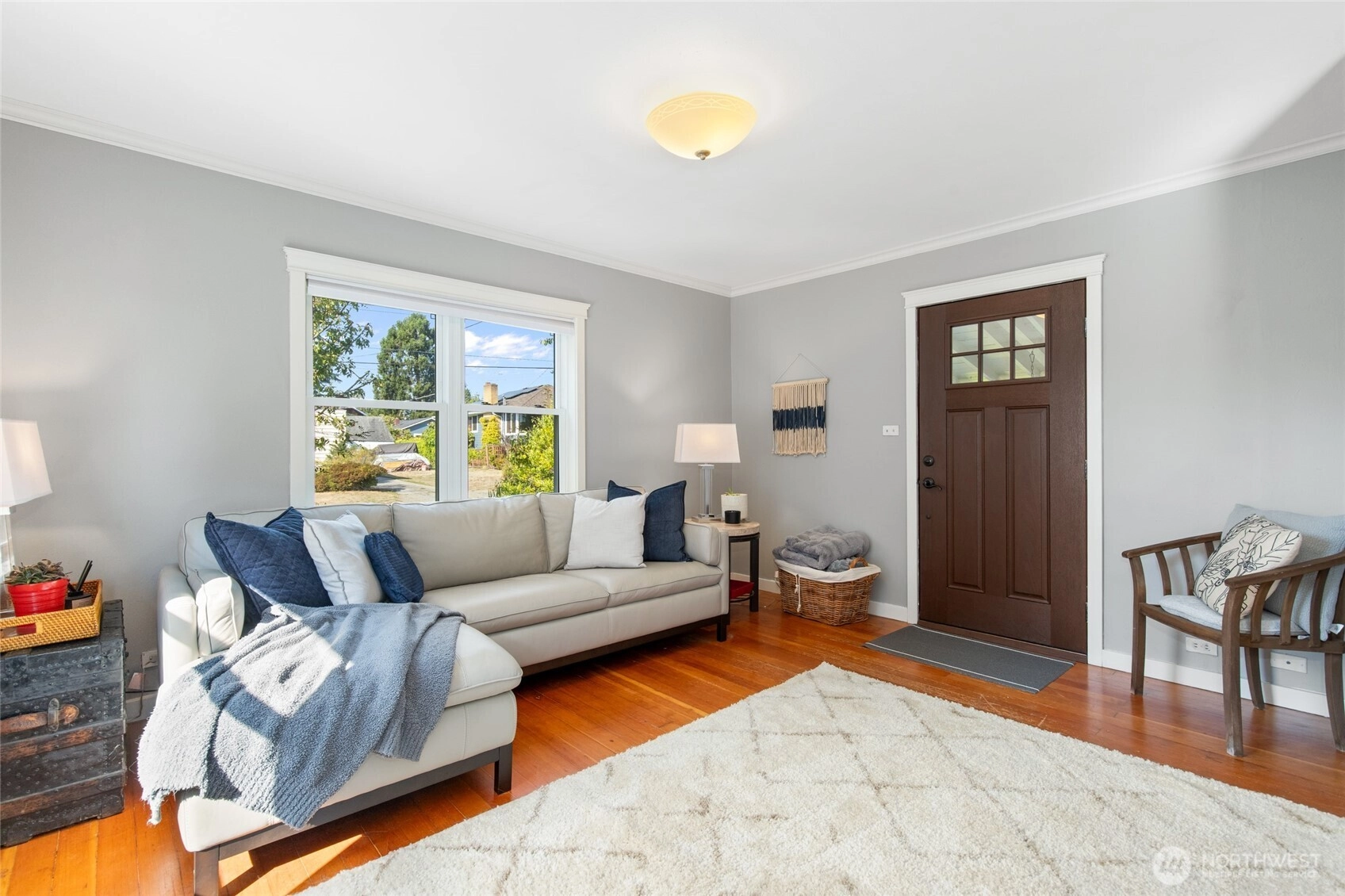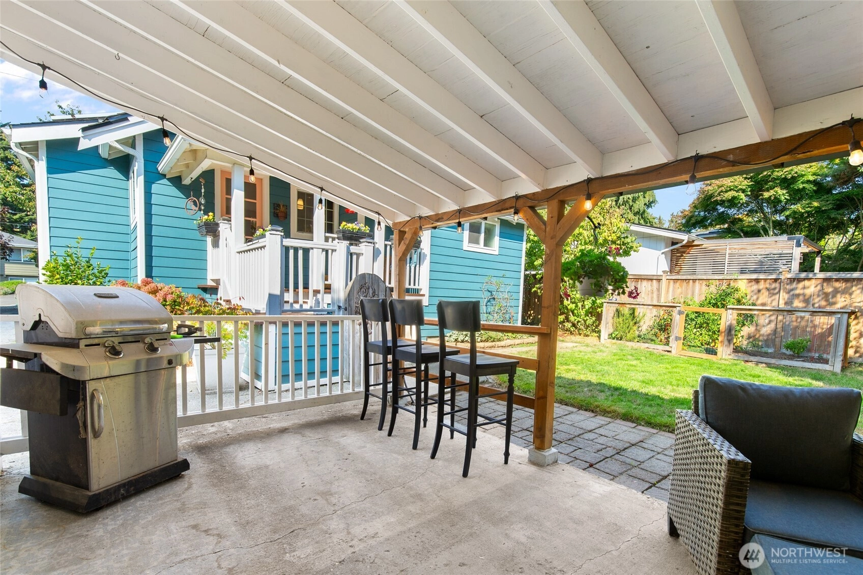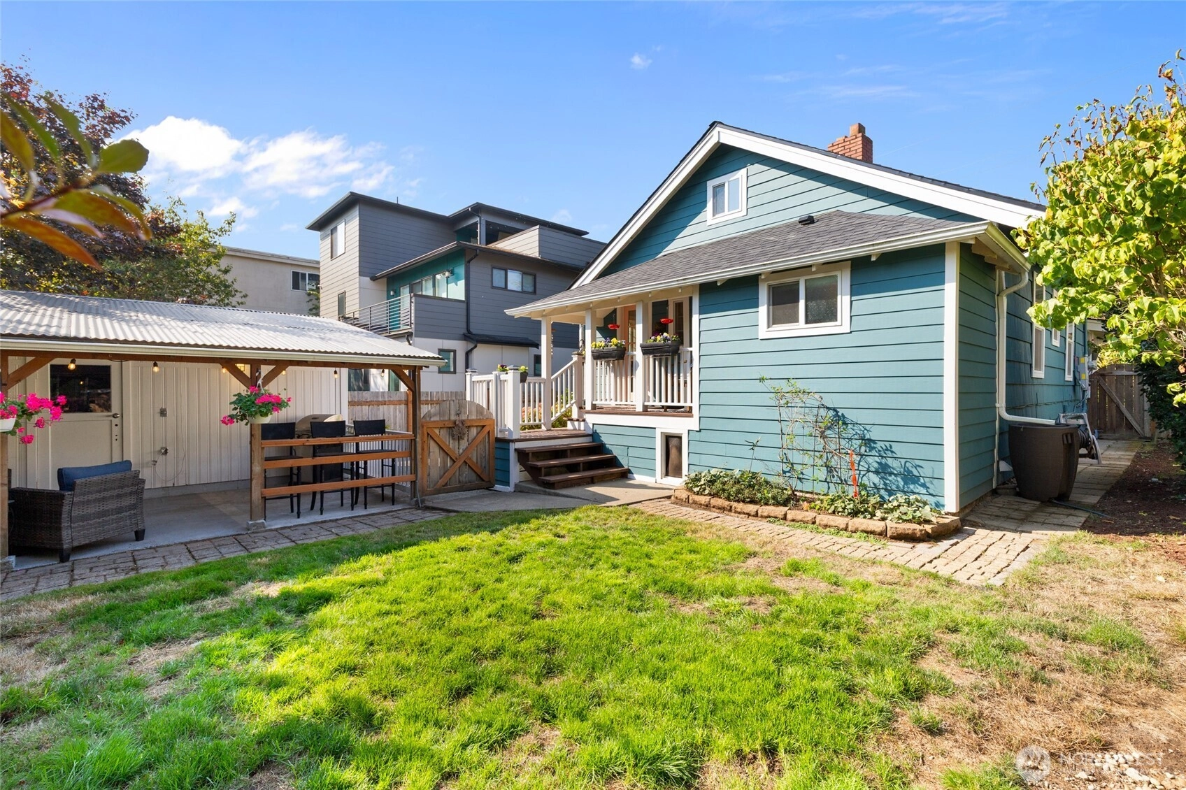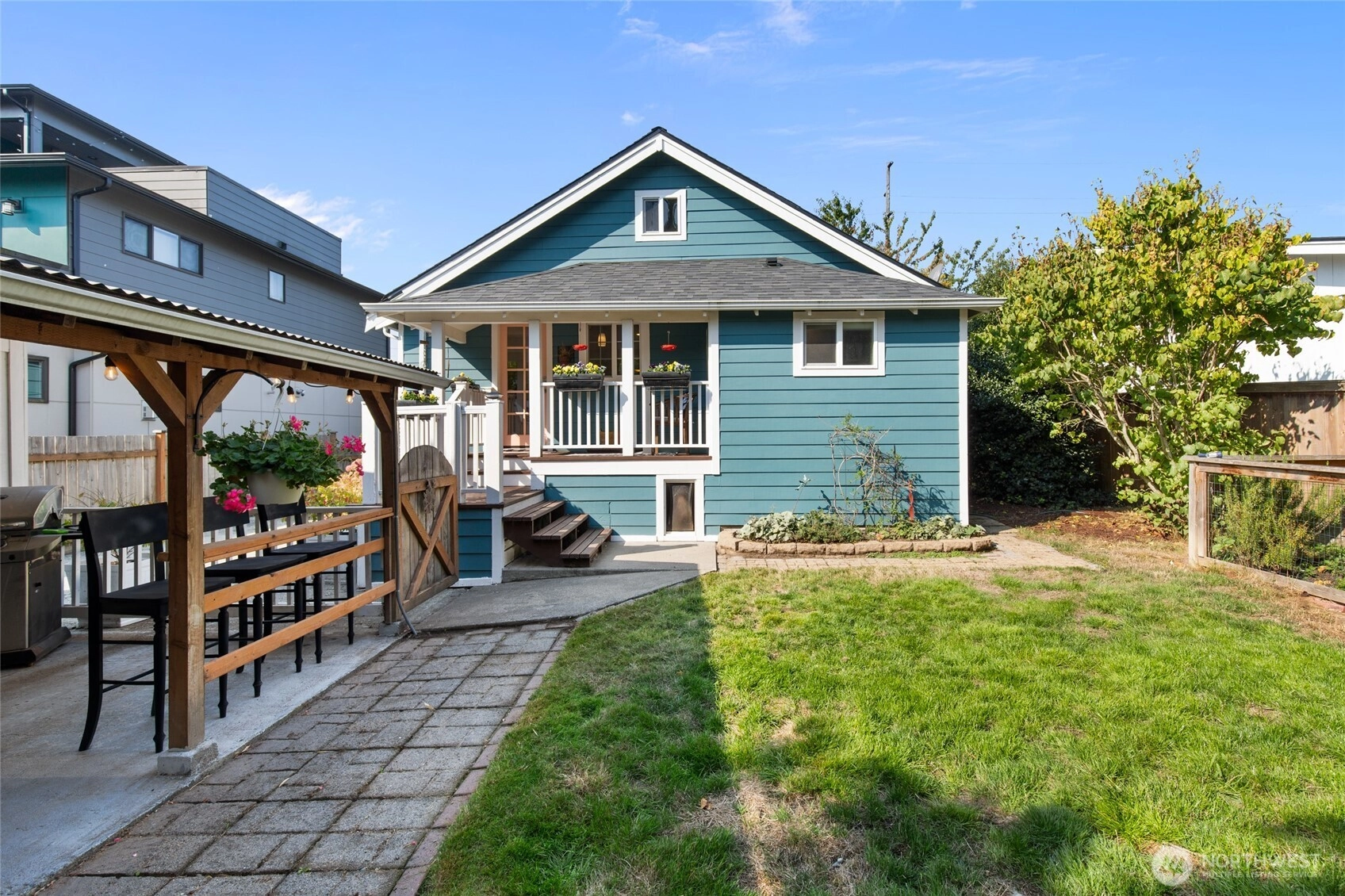 Charming Crown Hill bungalow, fully updated and move-in ready! Features include; spacious dining room and a bright country-style kitchen with breakfast nook. Updates include; AC, fresh paint, double-paned windows and primary bedroom with lux en-suite bath. Basement with great ceiling height offers abundant storage and future possibilities. Enjoy the sun-drenched backyard with garden beds and covered cabana-style patio, perfect for BBQs. Detached garage plus two additional tandem off-street spaces. Close to Golden Gardens, shops, and transit. Pre-inspected for buyer's convenience. Don't miss this adorable gem!