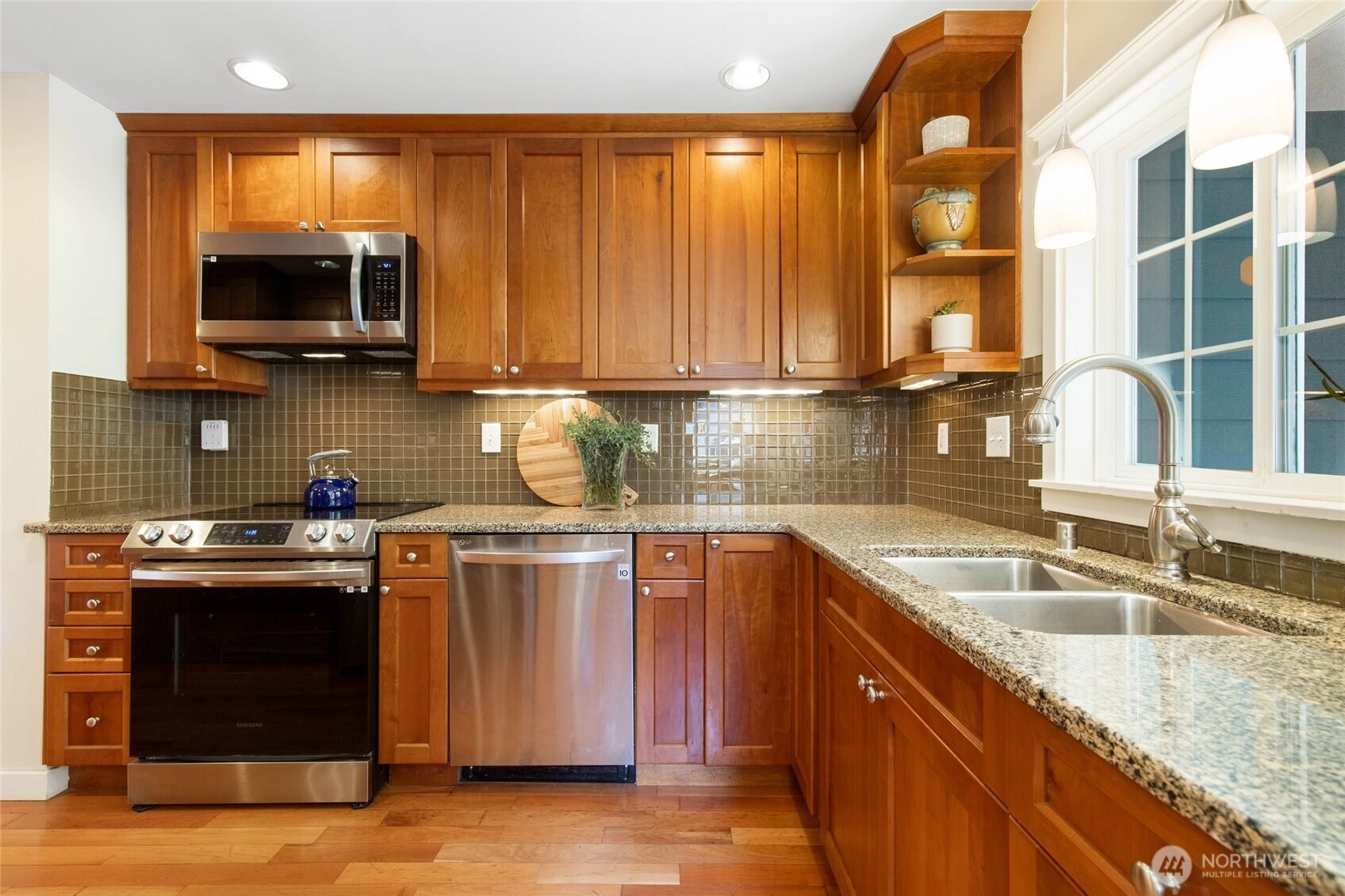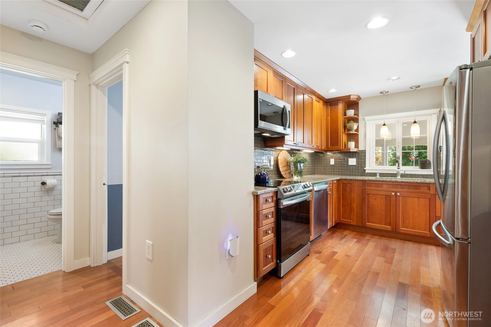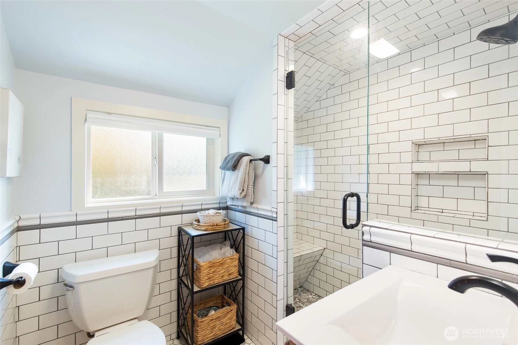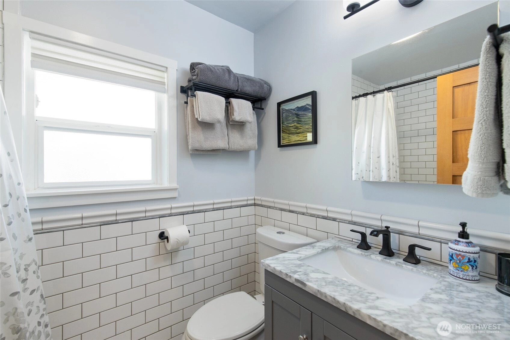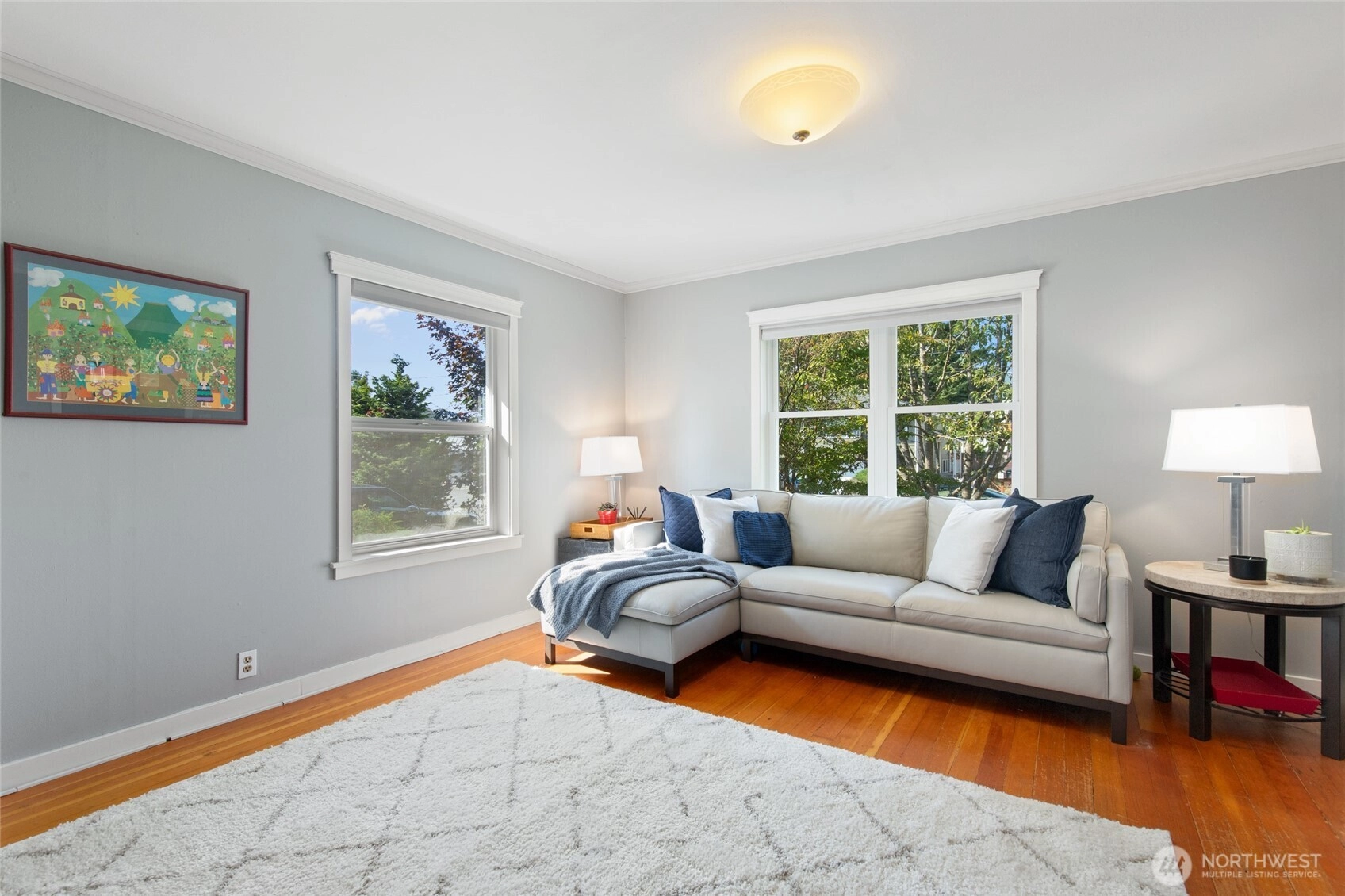 Charming Crown Hill bungalow, fully updated and move-in ready! Features include; spacious dining room and a bright country-style kitchen with breakfast nook. Updates include; AC, fresh paint, double-paned windows and primary bedroom with lux en-suite bath. Basement with great ceiling height offers abundant storage and future possibilities. Enjoy the sun-drenched backyard with garden beds and covered cabana-style patio, perfect for BBQs. Detached garage plus two additional tandem off-street spaces. Close to Golden Gardens, shops, and transit. Pre-inspected for buyer's convenience. Don't miss this adorable gem!