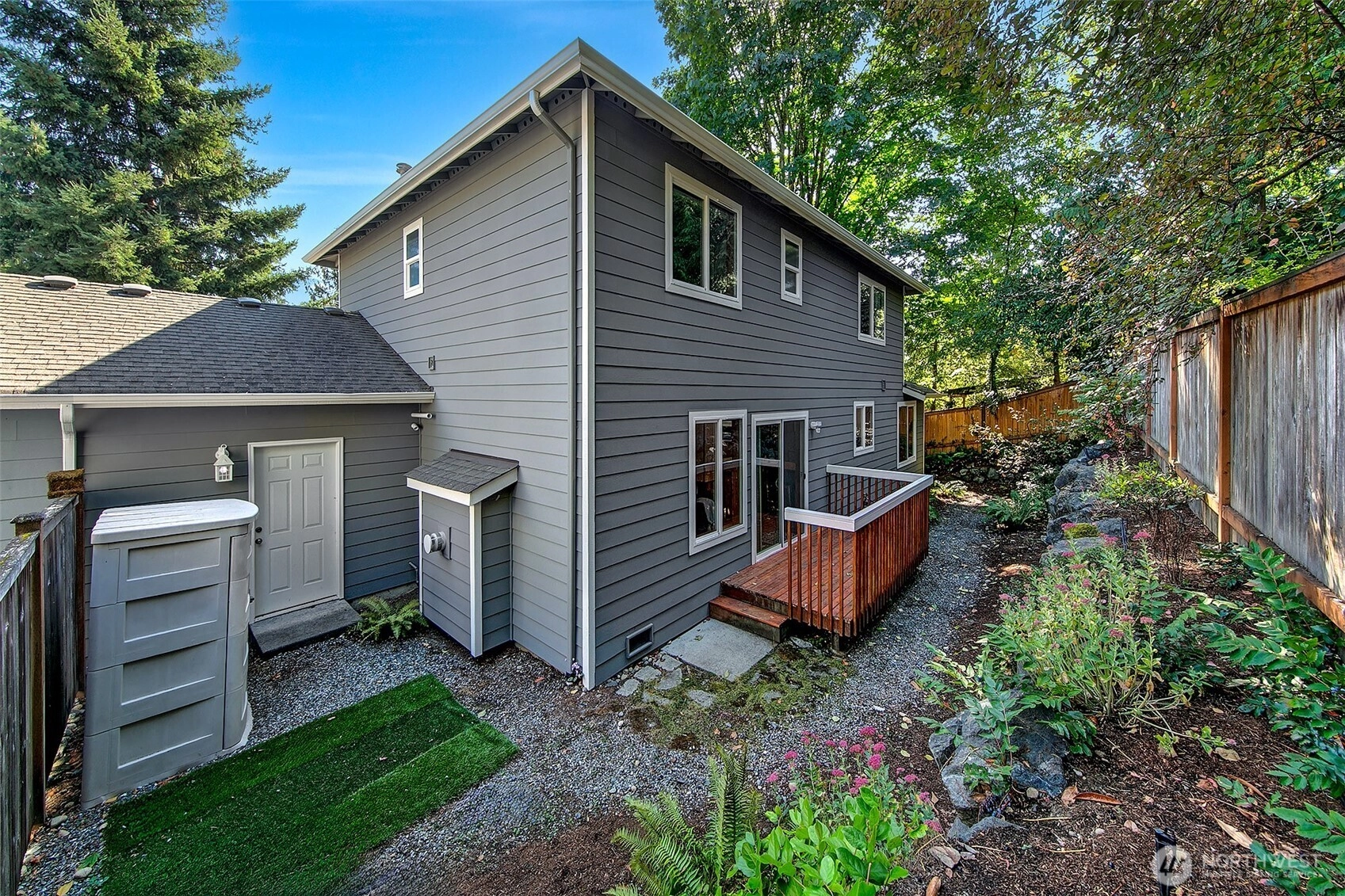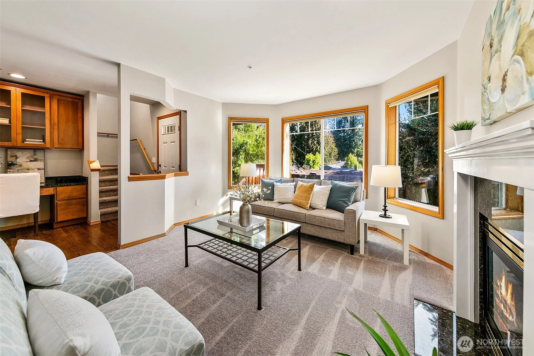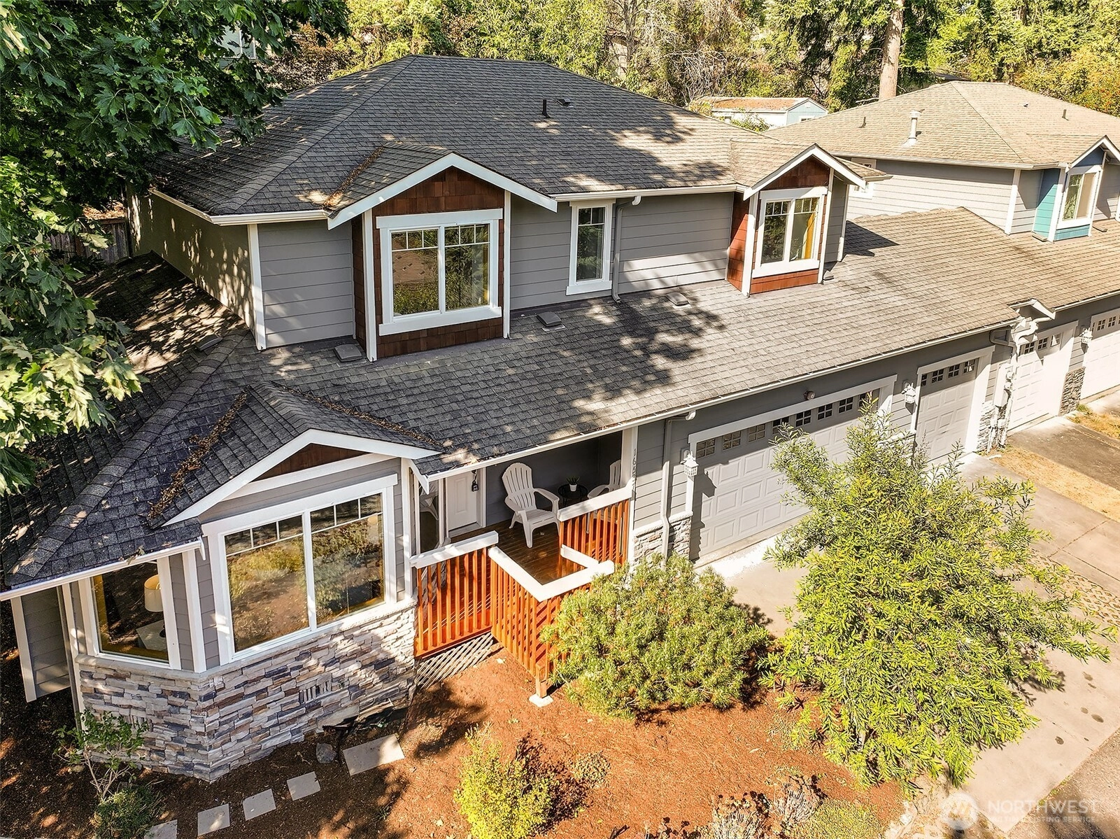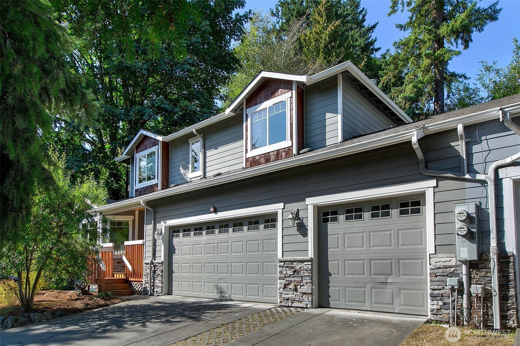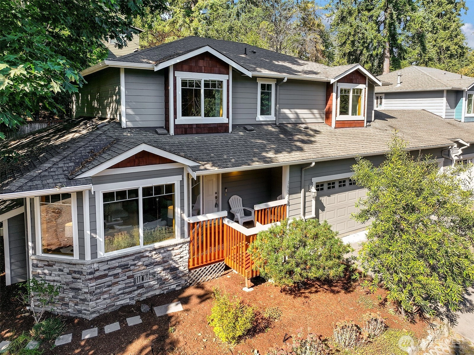 Lovely 2 story home- first time on the market! Amazing opportunity to own a 4 bedroom, 2.5 bath beauty with 3-car attached garage. Featuring fresh paint, flooring & lighting throughout. Formal living room with gas fireplace & formal dining room. All new kitchen with quartz counters, pantry & new appliances! Kitchen opens to spacious family room with 2nd gas fireplace & sliders that open to West-facing deck overlooking the private yard. 4 large bedrooms on upper level including primary bedroom with en-suite 5-piece bath & walk-in closet! Buffered by trees, fenced & quiet, yet close to popular Shoreline schools. Easy access to I-5 & in-between 2 Light Rail Stations. Short walk to shops, restaurants & Interurban Trail. Incredible opportunity!