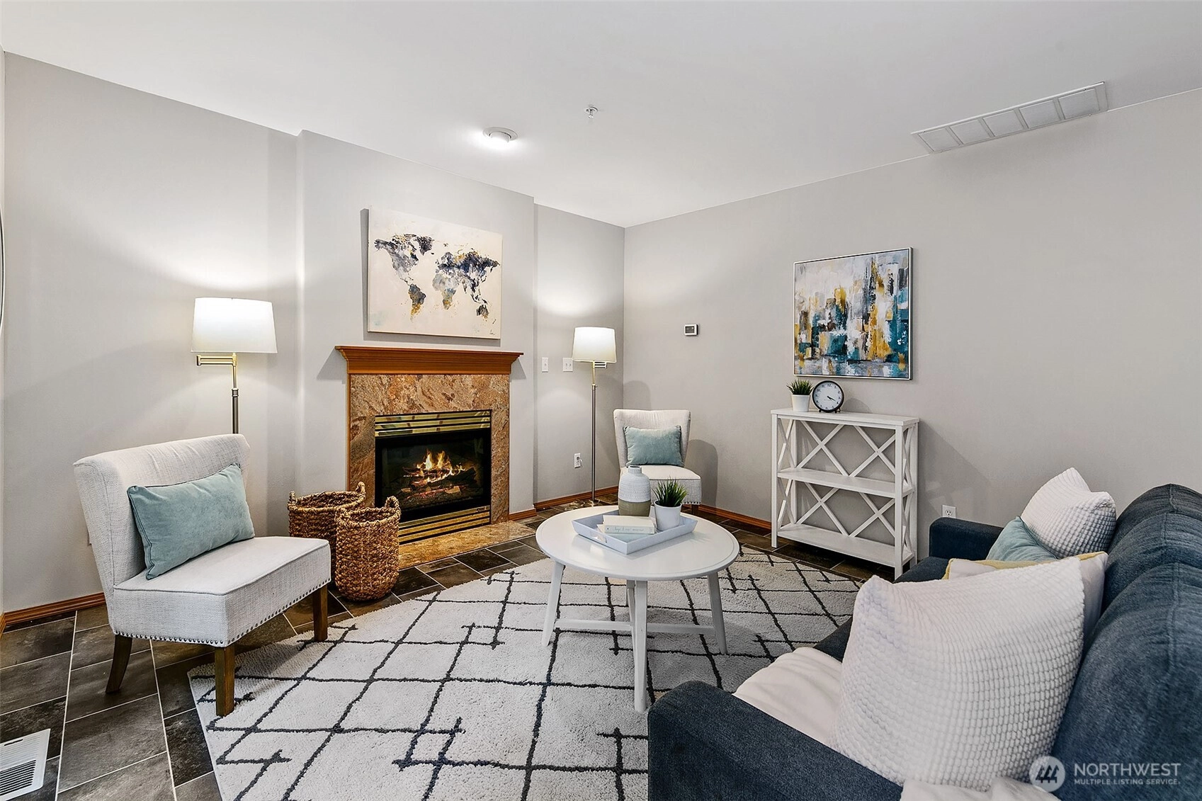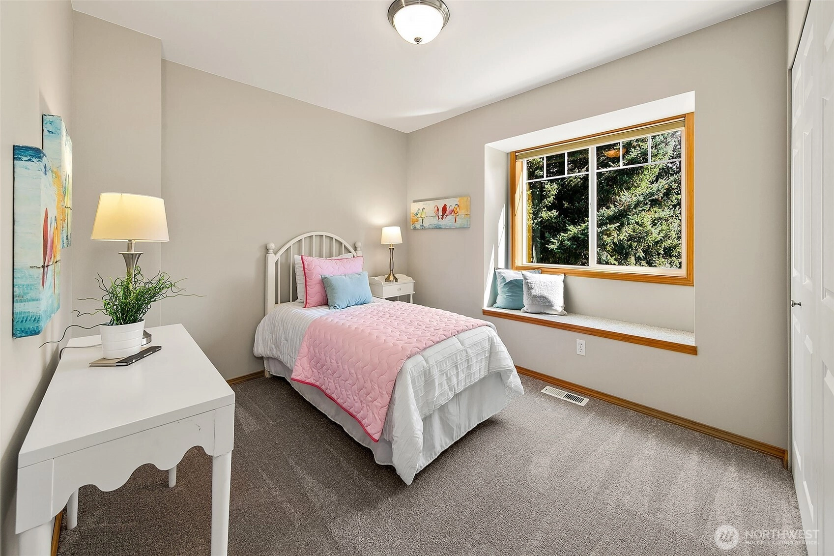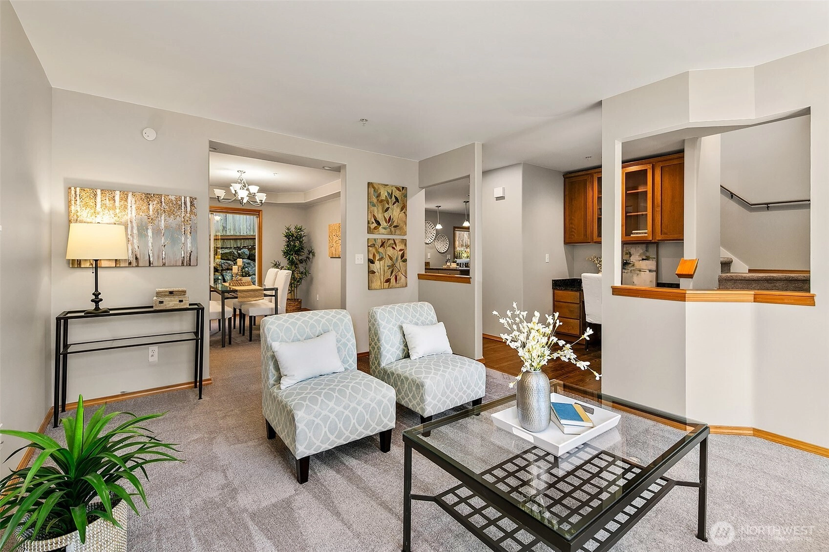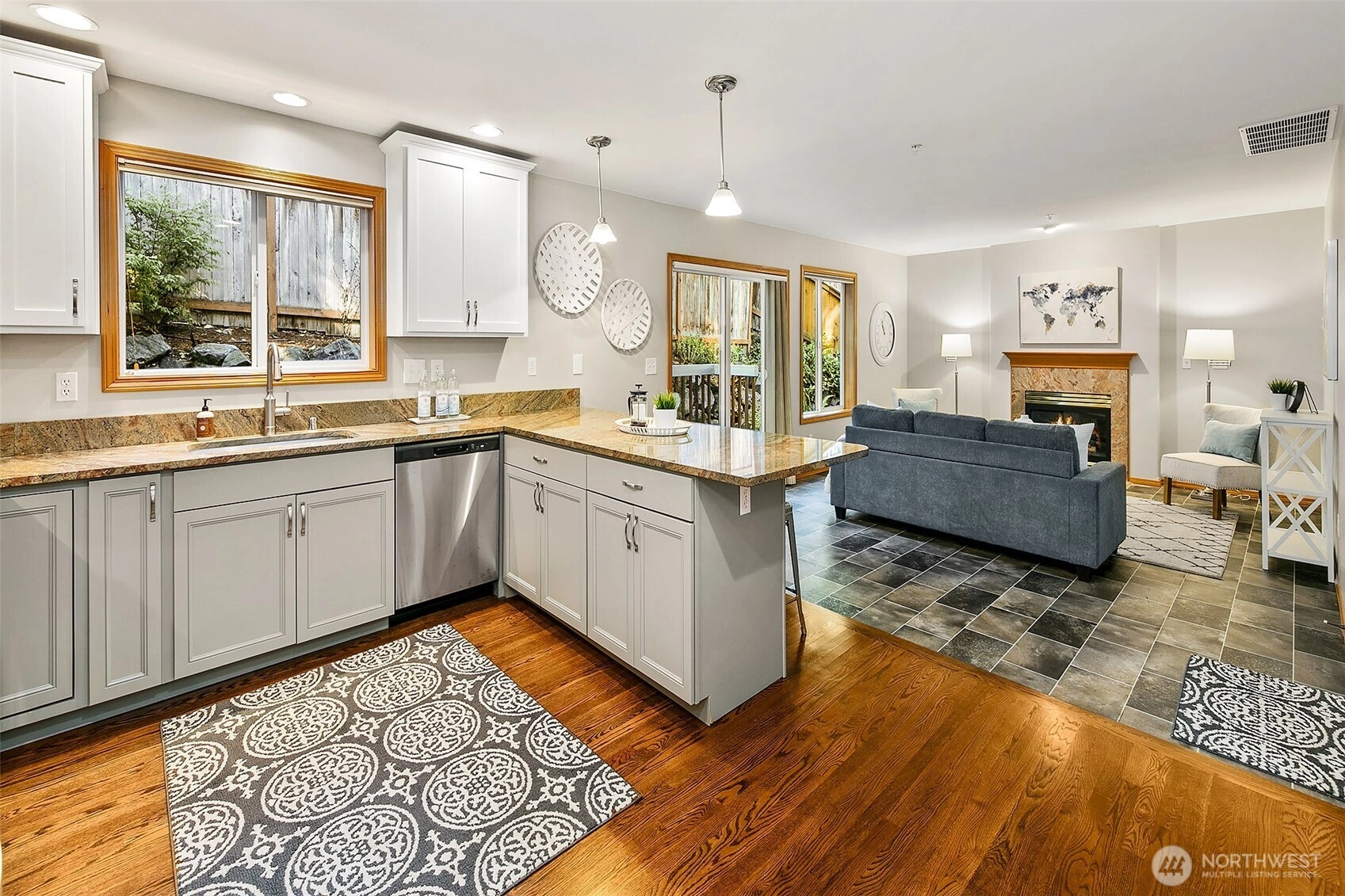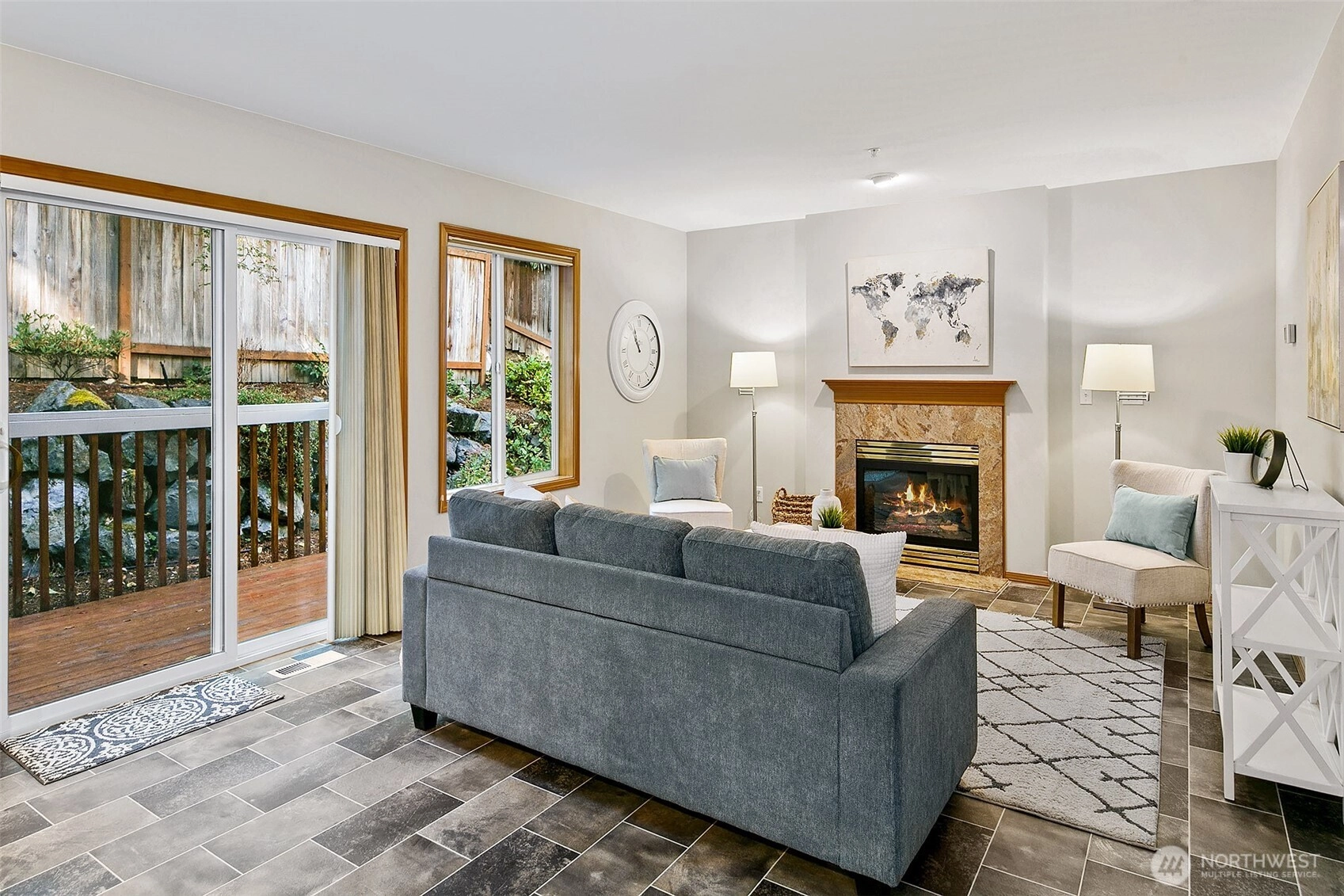 Lovely 2 story home- first time on the market! Amazing opportunity to own a 4 bedroom, 2.5 bath beauty with 3-car attached garage. Featuring fresh paint, flooring & lighting throughout. Formal living room with gas fireplace & formal dining room. All new kitchen with quartz counters, pantry & new appliances! Kitchen opens to spacious family room with 2nd gas fireplace & sliders that open to West-facing deck overlooking the private yard. 4 large bedrooms on upper level including primary bedroom with en-suite 5-piece bath & walk-in closet! Buffered by trees, fenced & quiet, yet close to popular Shoreline schools. Easy access to I-5 & in-between 2 Light Rail Stations. Short walk to shops, restaurants & Interurban Trail. Incredible opportunity!