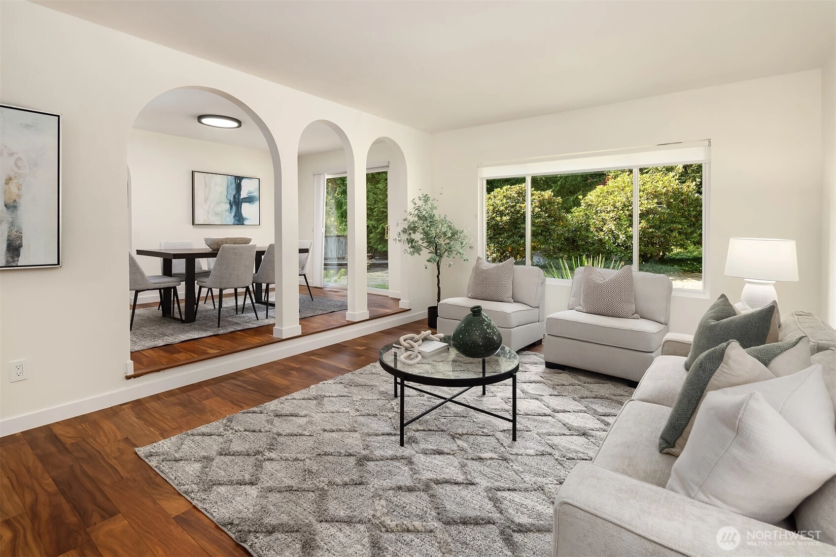 Welcome to this updated one-level home on an expansive acre-plus lot. It offers privacy, space together while being minutes from renowned wineries, dining, and trails. Lot of natural light through skylights and added windows, while acacia hardwoods add warmth throughout. The kitchen features new smart appliances and quartz counters while refreshed bathrooms add modern comfort. The primary suite opens to backyard views and includes a walk-in closet, spa-inspired ensuite. A bonus room with a gas fireplace provides cozy space for relaxing or entertaining. With A/C, a new roof, RV parking, and EV charger readiness, this home is stylish and practical. Move-in ready, it’s a great opportunity to enjoy Woodinville living at its best.