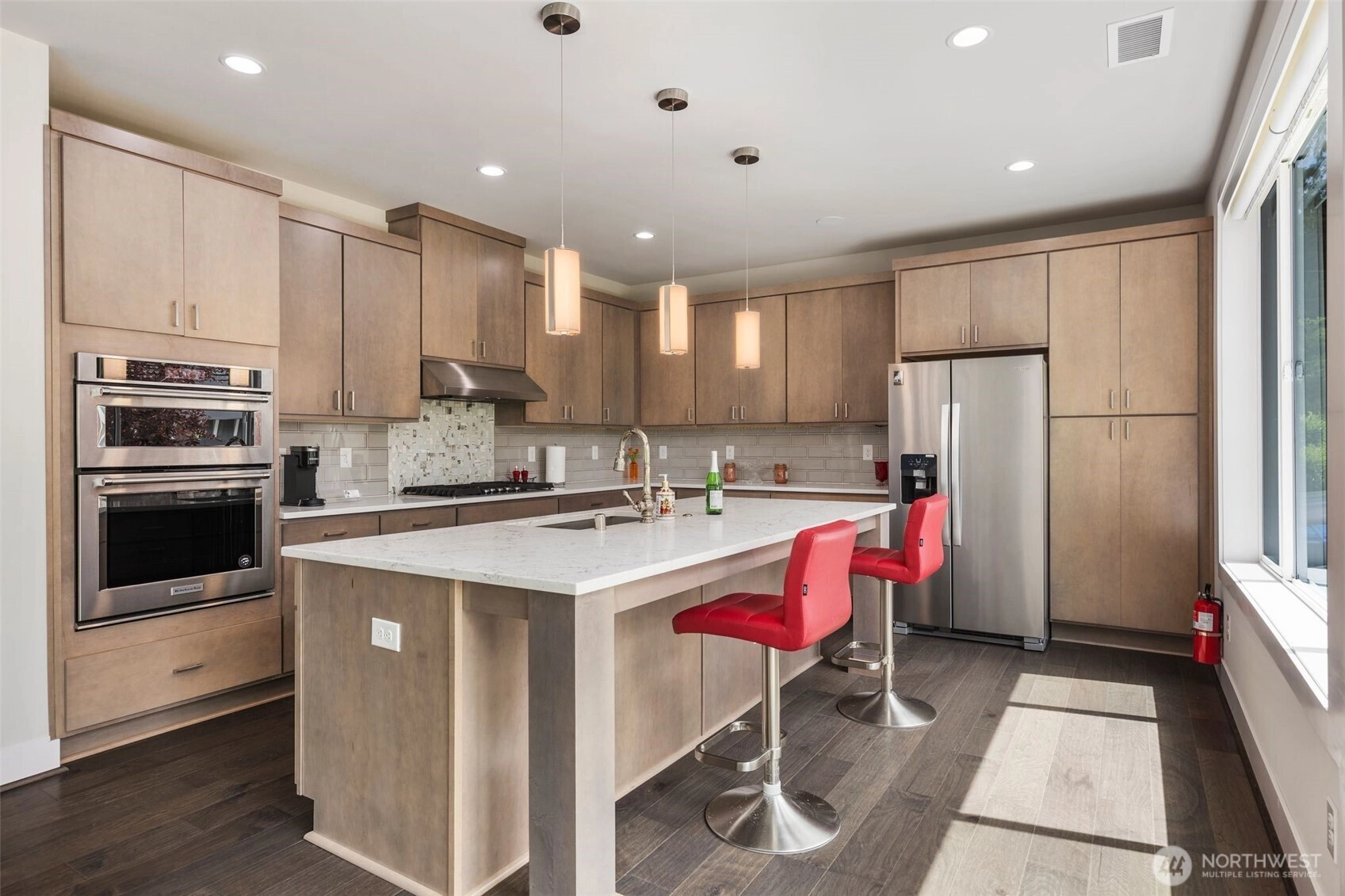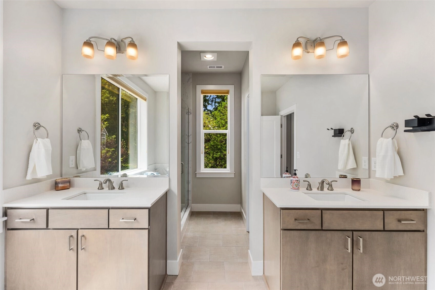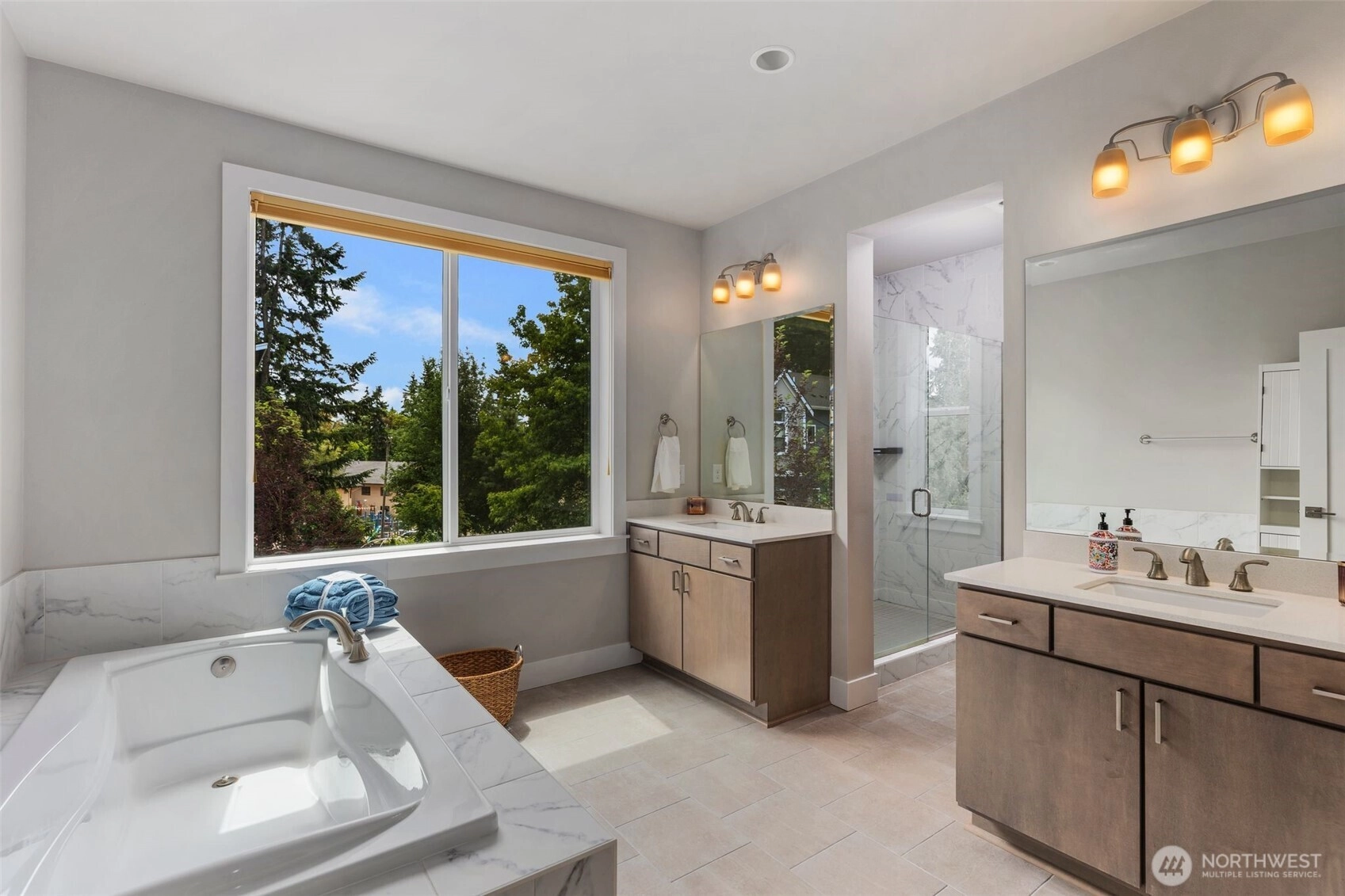 The Fremont! a Beautiful NW Contemporary Floor plan by Toll Brothers in desirable Enclave at Lake Hills. Soaring ceilings & abundance of natural light creates an airy, inviting ambiance. seamless open layout connects each living space effortlessly, perfect for entertaining. Kitchen is a true showstopper, featuring gleaming quartz countertops, stunning floor-to-ceiling cabinetry, sleek SS appliances & island w/breakfast bar. Primary suite offers a luxurious retreat w/a spa-inspired 5-piece ensuite bath, complete w/a soaking tub, walk-in shower & dual vanities. The upper level includes a versatile bonus space, ideal as guest suite or rec room, complete w/additional bed & bath. A/C Unit! Walking instance to the best of Bellevue amenities