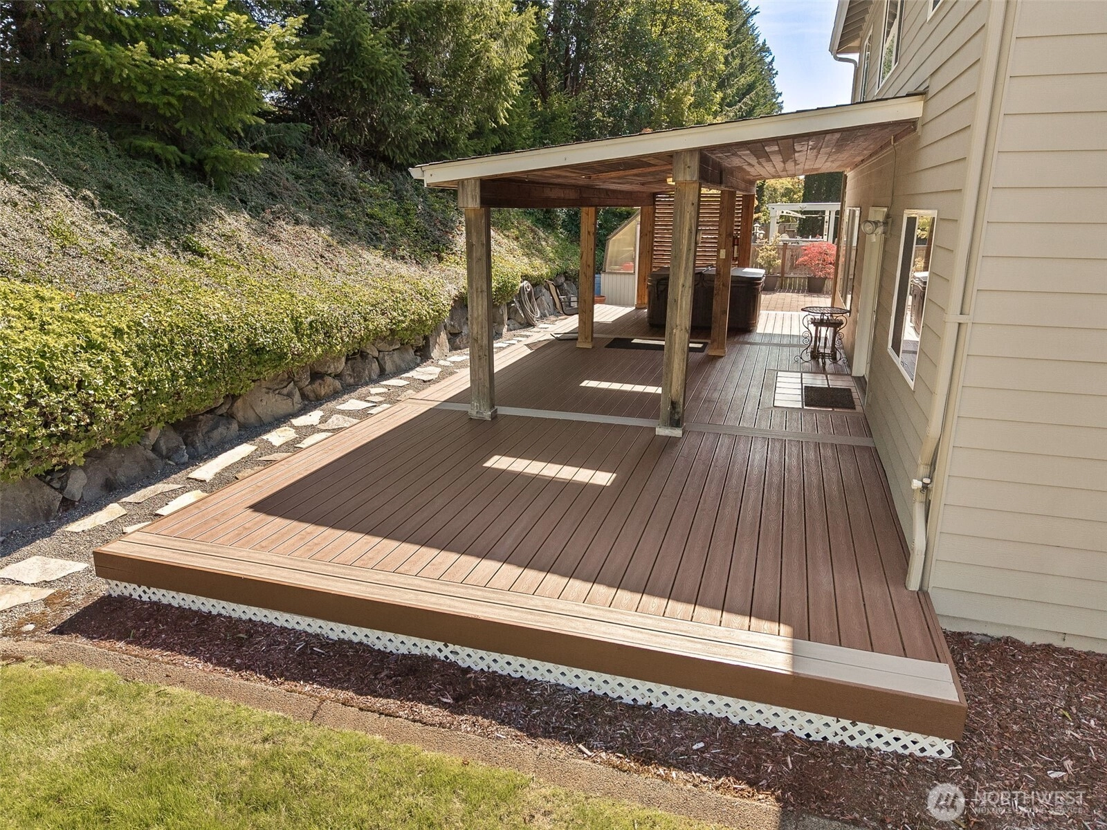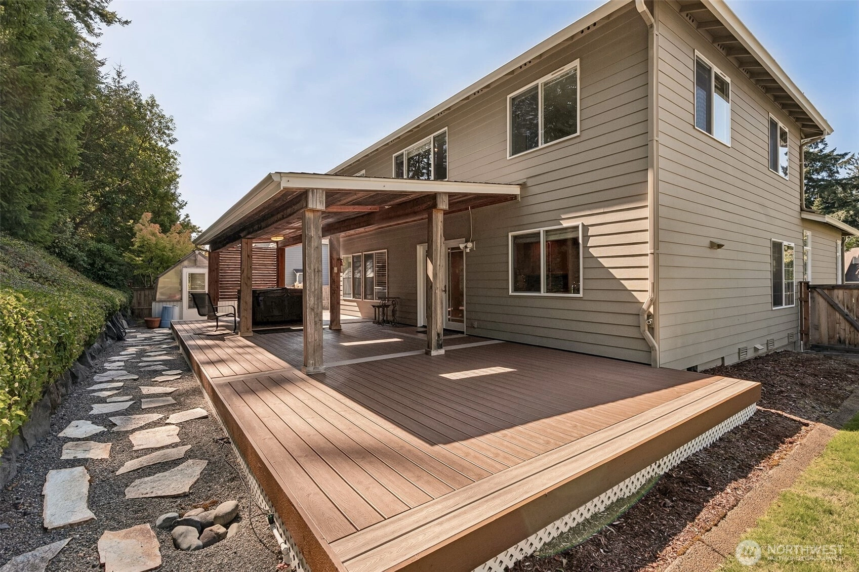 Remodeled upstairs w/hardwood & upgraded carpet | Italian-inspired kitchen w/Franke sink, prep sink & authentic butcher block | Spa-style primary suite w/soaking tub, frameless shower, built-ins & gas fireplace | Loft w/skylights & built-ins | Heated floors in kitchen & primary bath | Insulated/sheetrocked garage w/gas heater | 13 windows('18)/French Door replaced | Roof ('17), exterior paint ('18), water heater ('16) | A/C ('22) & furnace ('24) w/transferable warranties | Full irrigation | Covered deck w/3 skylights | Windows, roof, gutters, pavers, deck exterior cleaned | Greenhouse, shed, hot tub & fenced yard | Built by Murray Franklin. Some images virtually staged, digitally enhanced, or include visual markers for illustration.