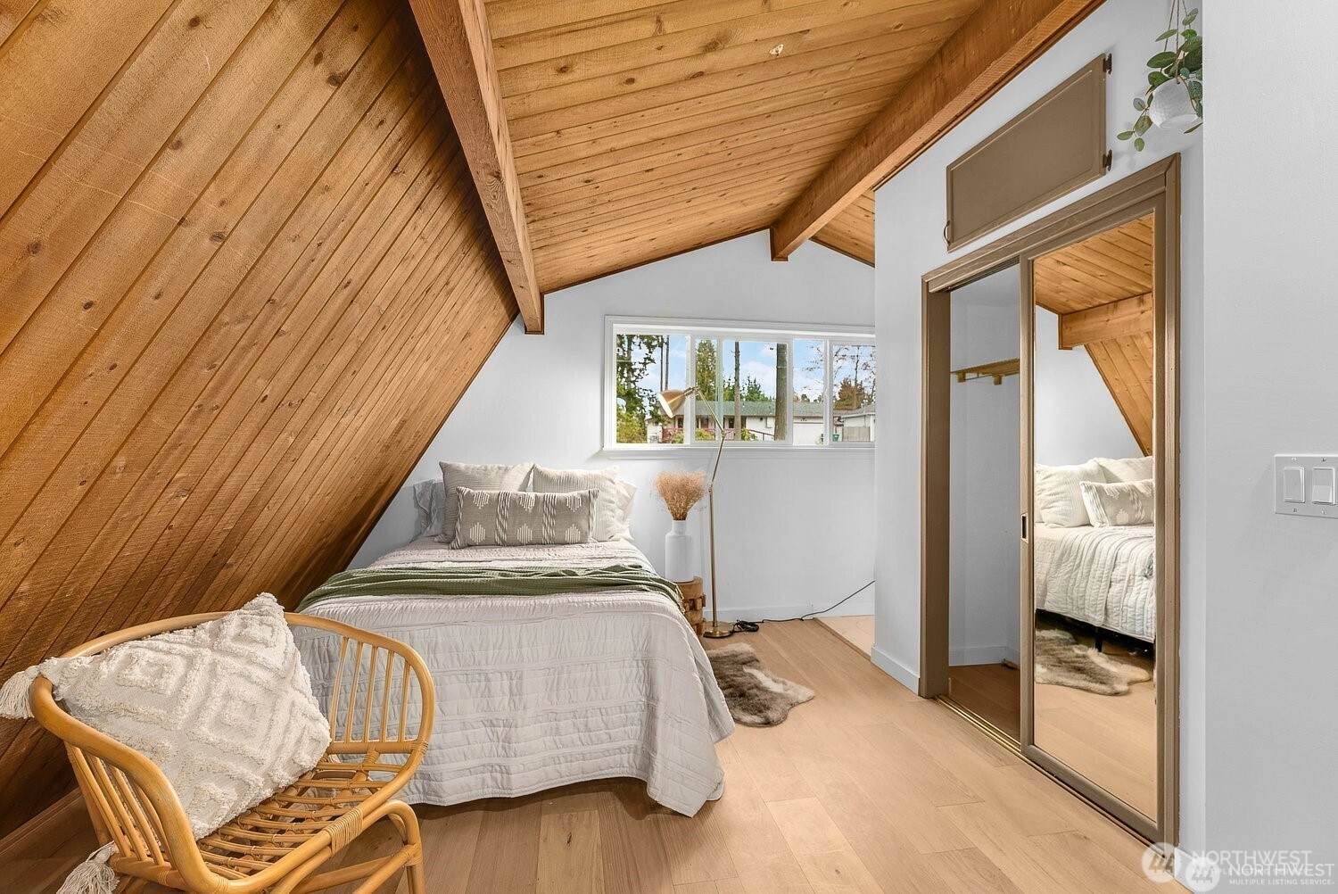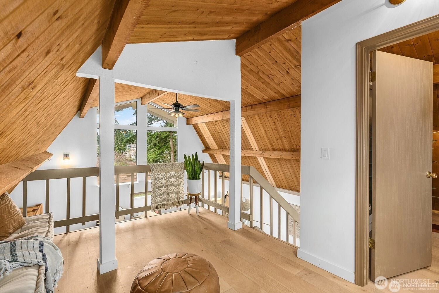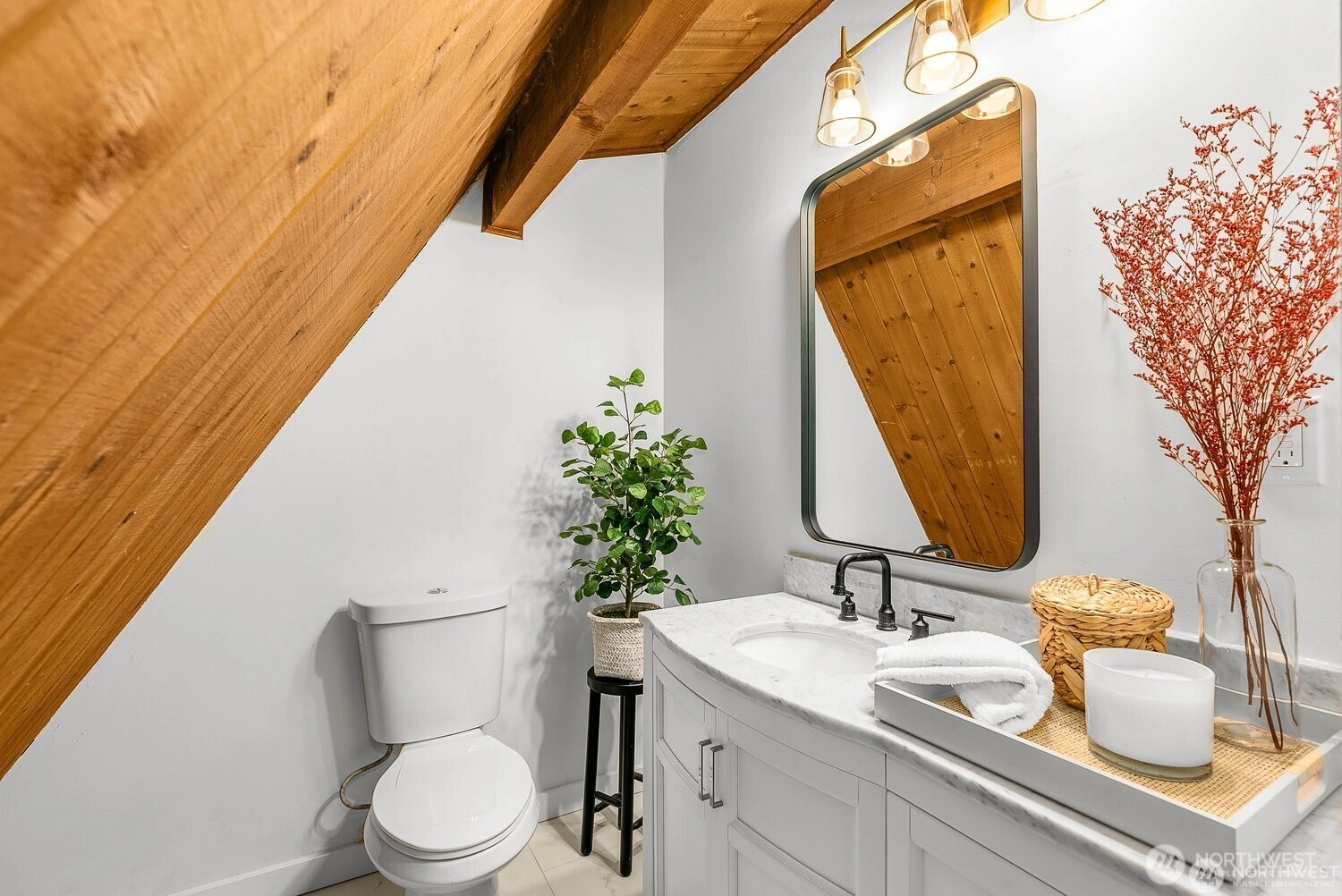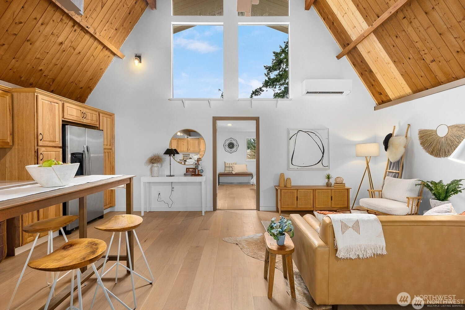 Priced to sell! Opportunity awaits in the gated Camaloch golf community. This unique 3BR, 2.25BA home blends rustic charm with modern updates. Soaring vaulted ceilings, abundant wood finishes, and a loft overlooking the living area create warmth and character. The primary suite includes a private 1/2 upstairs, and loft space for an office or reading nook. Major remodel in 2021 added new flooring, updated kitchen & baths, paint, new water heater, and a mini-ductless split for A/C & heat. Enjoy a huge fenced yard with Smith Lake views, plus community perks: unlimited golf, 2 seasonal pools, and a stocked fishing lake. Detached garage/shop adds flexibility.