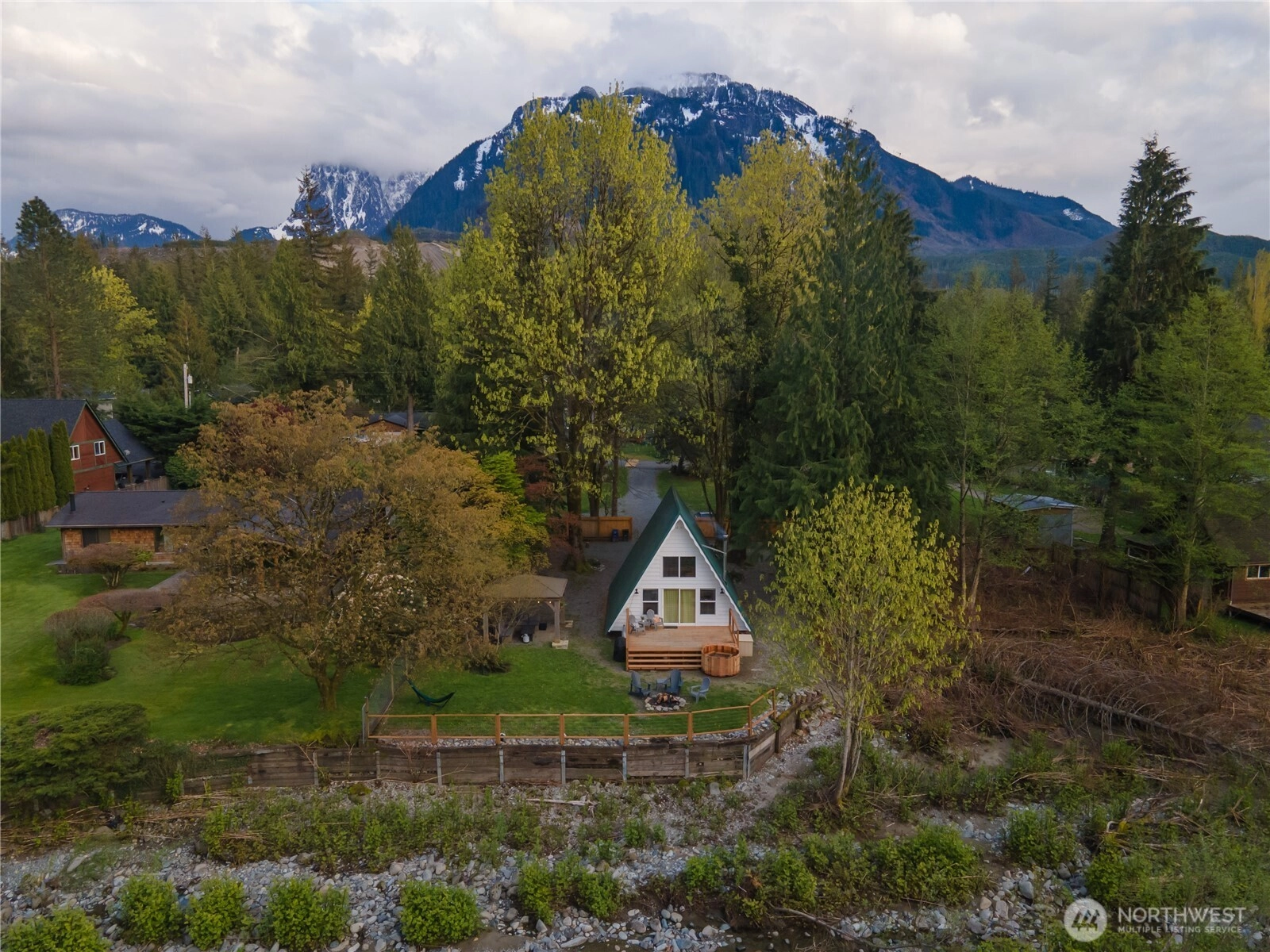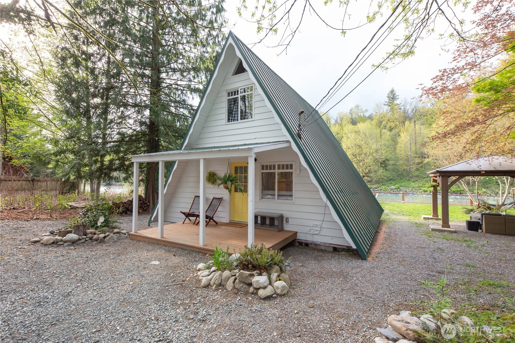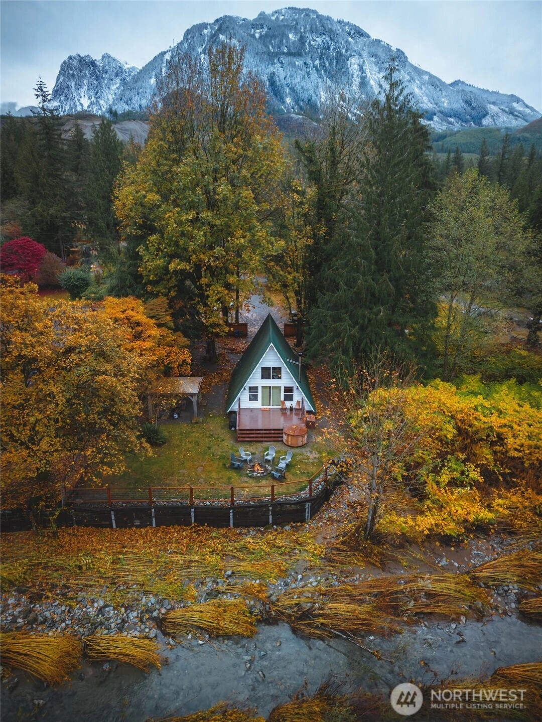 A true storybook riverfront A-frame! Set on a private half acre with direct riverfront access, this remodeled cabin is as charming as it is profitable. Inside, modern details, open layout, and updated kitchen & bath create the perfect getaway feel. Outside, unwind on the new deck or in the custom cedar hot tub with the river as your backdrop. This has been a successful short-term rental for years and comes fully furnished, ready to continue operating. From your own private beach to nearby hiking, fishing, Index climbing, and Stevens Pass skiing—this iconic A-frame delivers the quintessential PNW lifestyle and investment in one. Financials available upon request.