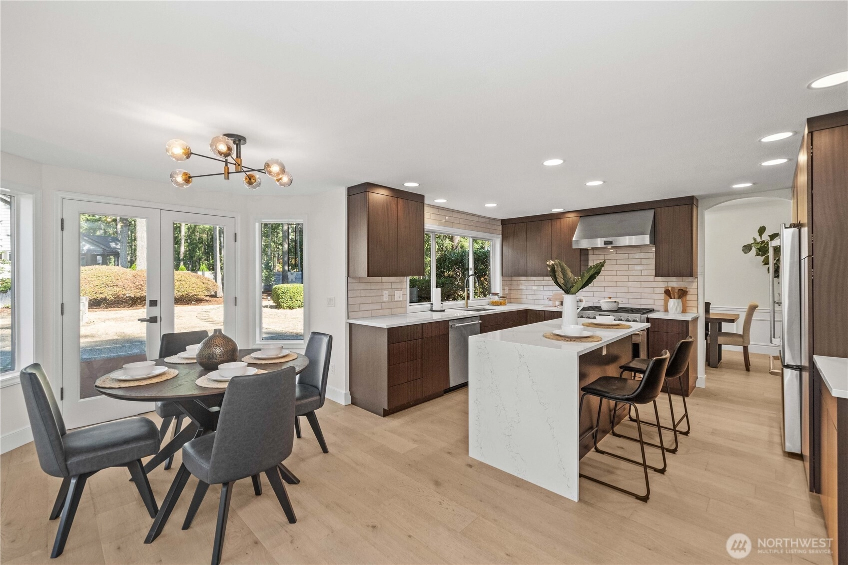 Discover this gorgeous, newly remodeled 3-bed, 2.25-bath gem in Black Diamond just moments from Lake Sawyer! Nestled on over a half acre, this home provides the perfect blend of space, modern style, and serenity. Walk into the two story entryway and enjoy dual living spaces, complemented by a large kitchen offering new cabinets & countertops. The dining room and additional eating nook offer space for easy hosting, and a main floor office for work or study. The primary suite boasts a reimagined 5-piece en-suite with walk-in closet, with 2 more bedrooms and refreshed 3/4 guest bath. Step outside to a sprawling back deck overlooking the expansive lawn, ideal for relaxing or hosting gatherings. This is the dream home you've been waiting for!