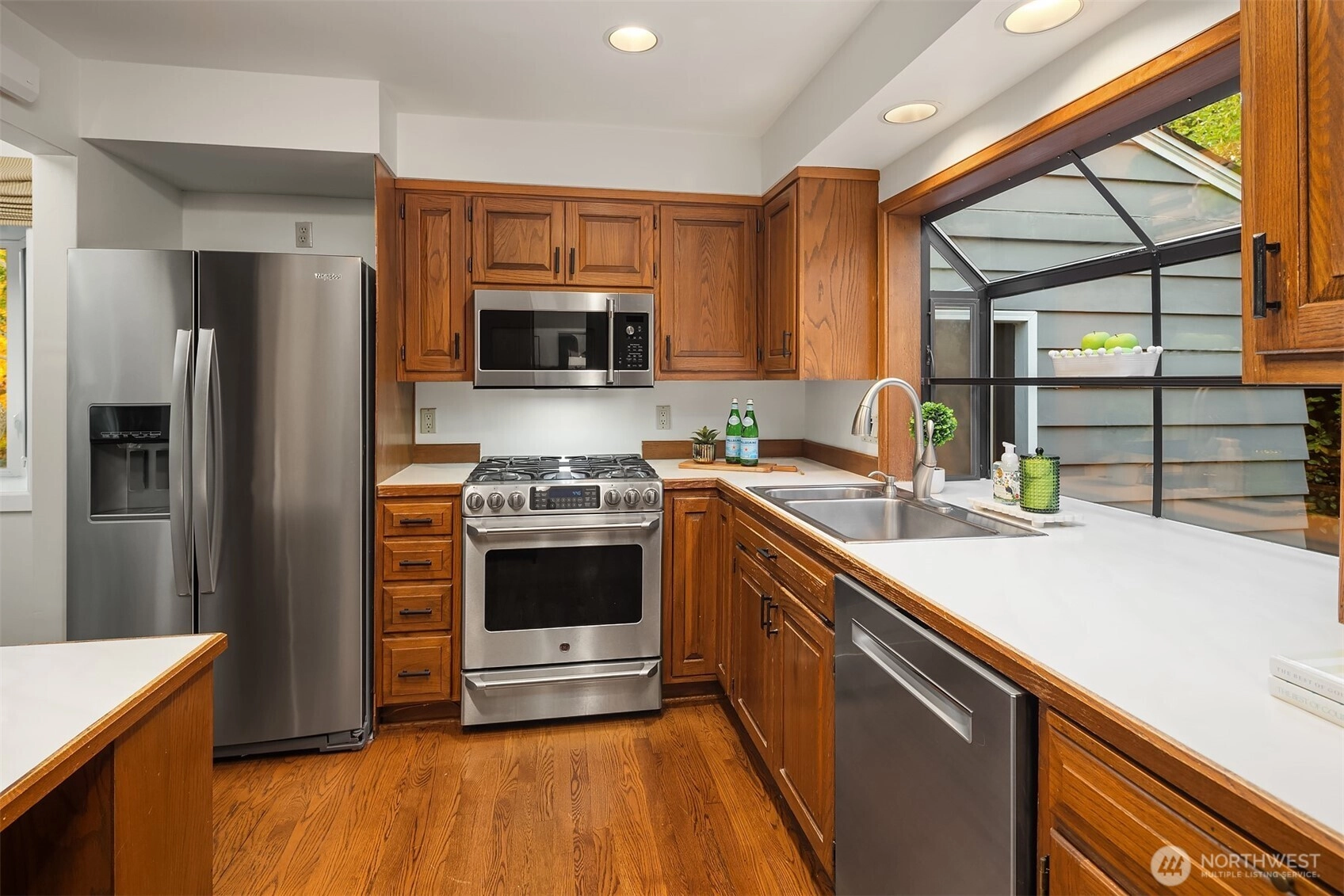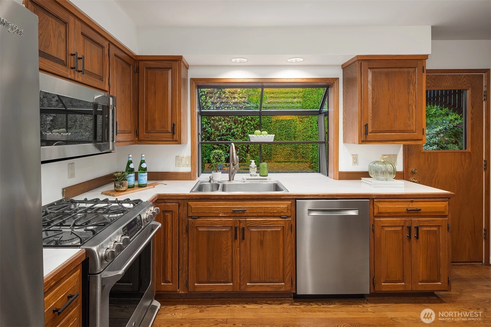 Single level simplicity on a sunny corner lot! Welcome to one of Laurelhurst's most walkable locations, this adorable 2-bedroom, 1-bath cottage is serving up serious curb appeal and laid-back livability. Large 1 car garage and private driveway— all of this on a south facing, sun-drenched 5,100 SF corner lot within the Laurelhurst Beach Club’s boundaries! Inside, you'll find just under 1,000 square feet of refreshed, one-level living, with new paint throughout, hardwood floors and a layout that feels just right: open, bright, and easy to love. Whether you're just starting out, simplifying your space, or eyeing your next great project, this home fits the bill with both location and style.