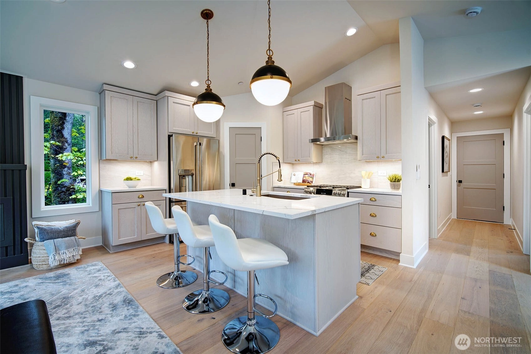 Welcome to Casolare — a boutique community of 14 beautifully designed single-family homes nestled in Kirkland’s sought-after East of Market neighborhood. The West Beach floor plan features 3 bedrooms, 2.5 baths, and a attached one-car garage! Gourmet kitchen with a generous island, quartz countertops, & built-in oven. Spacious primary suite includes a walk-in closet & a stylish 4-piece bath, joined by two additional bedrooms & a full bath. Enjoy modern comfort with energy-efficient mini-split heating & cooling, EV charging readiness. Tucked away in one of Kirkland’s most serene locations. Don’t miss the chance to tour our beautifully furnished model home!
