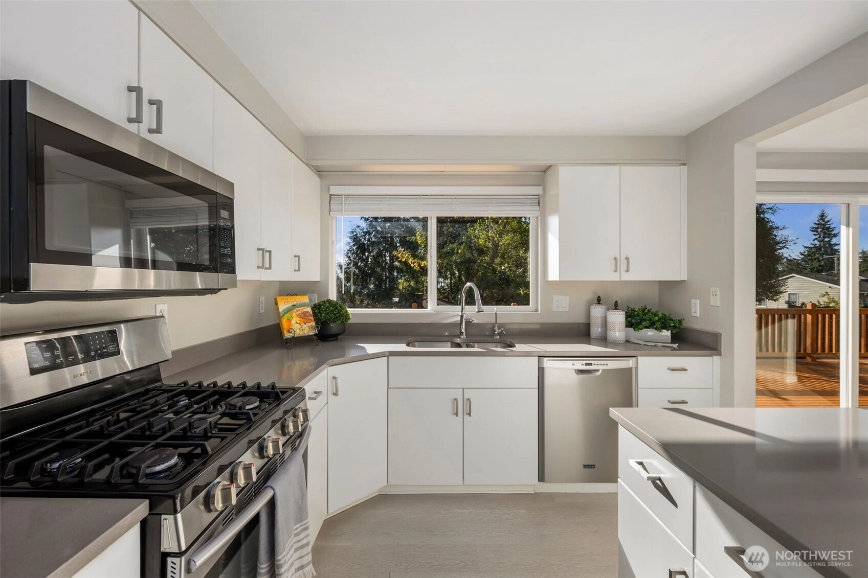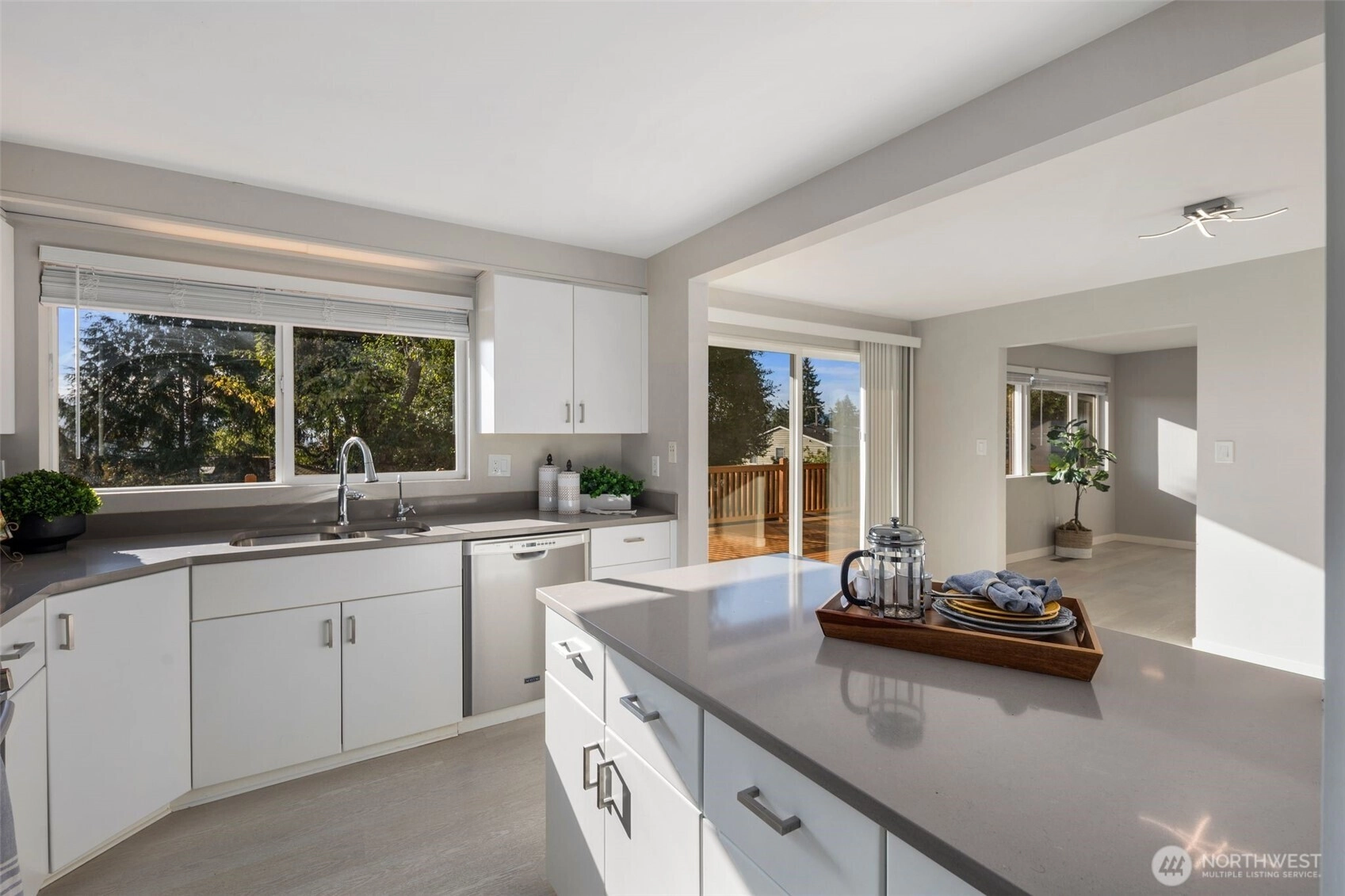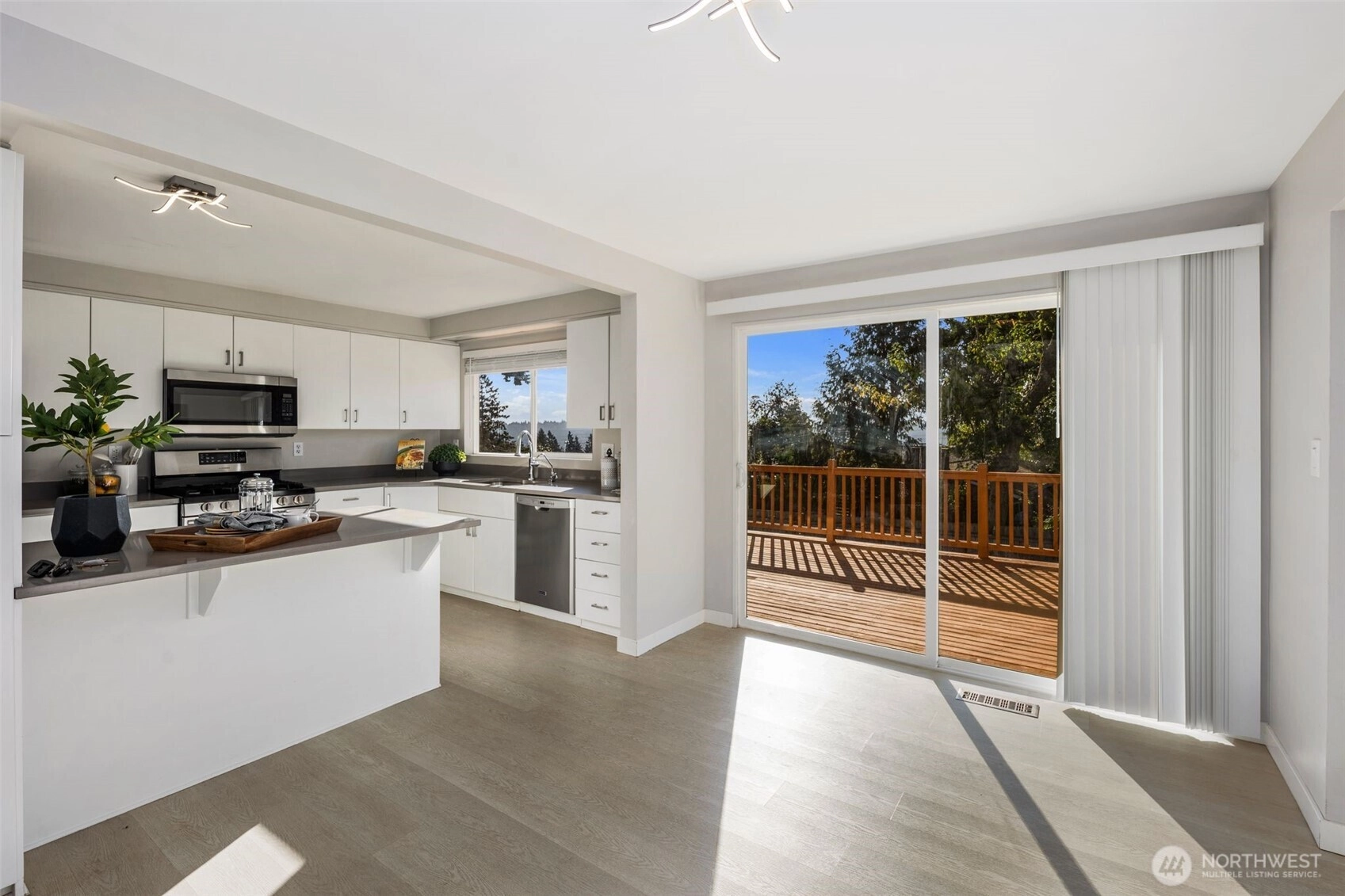Serene views of Cascades, Lake Sammamish & Mt. Rainier, award-winning schools in the heart of Bellevue, are a buyer’s dream come true! This light-filled Lochmoor home sits on a flat lot & comes with 120k Remodel in 2021 & 88K in 2022 - updated kitchen with quartz countertop, Pex water pipes, updated bathrooms, new light fixtures & fully remodeled basement. Large windows & doors open to the expansive deck, offering beautiful views of the sunrise over the Cascades & the lake. Enjoy the view from almost every room. Oversized 2-car garage & finished attic. Minutes to MS, Amazon, Crossroads Mall, Bellevue DT, parks/ shopping/ dining/ entertainment. Easy access to 520/I90/405