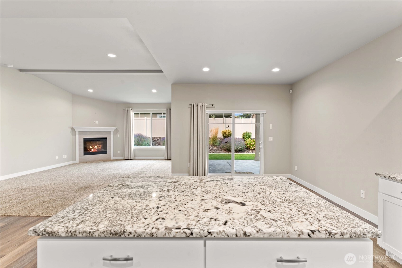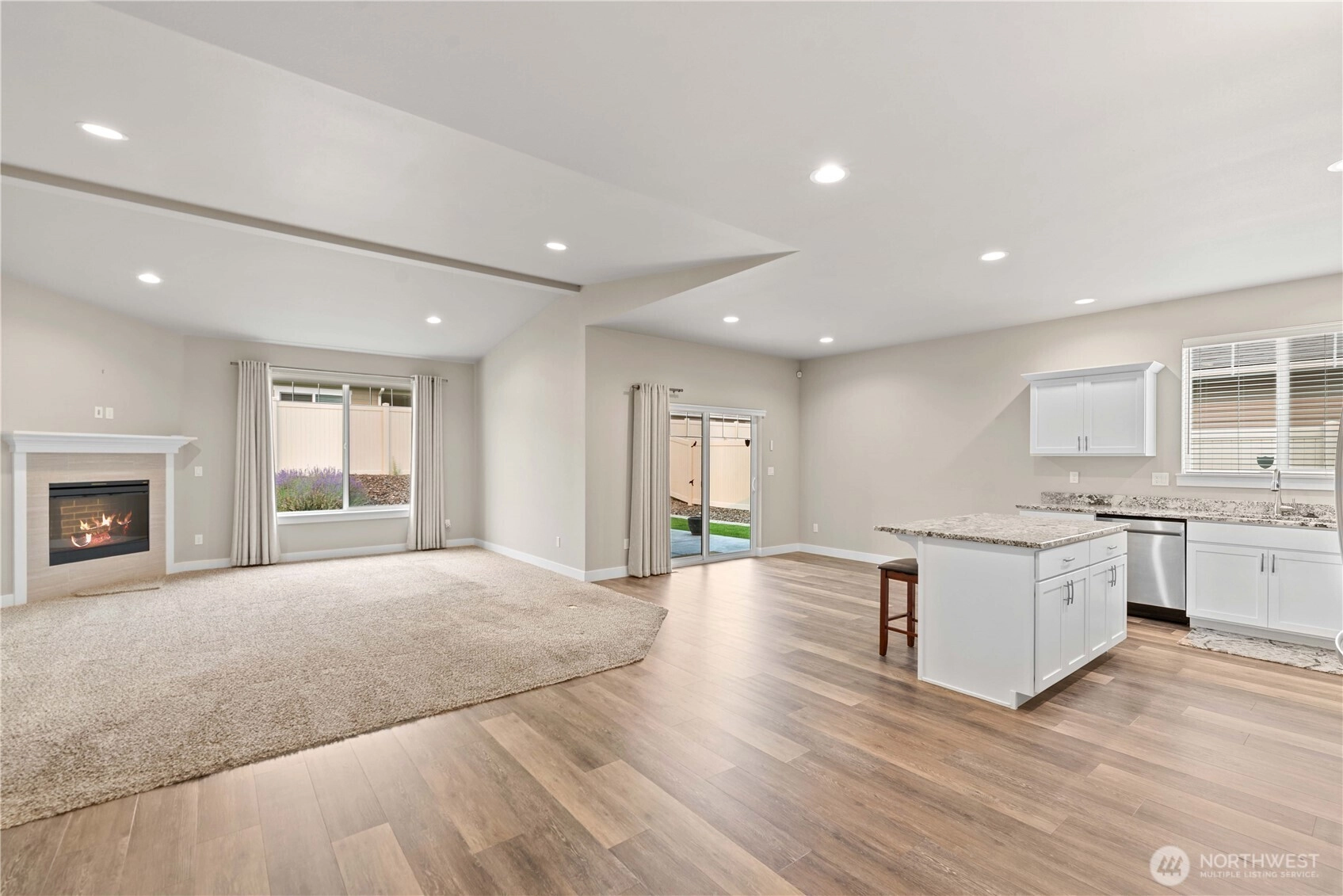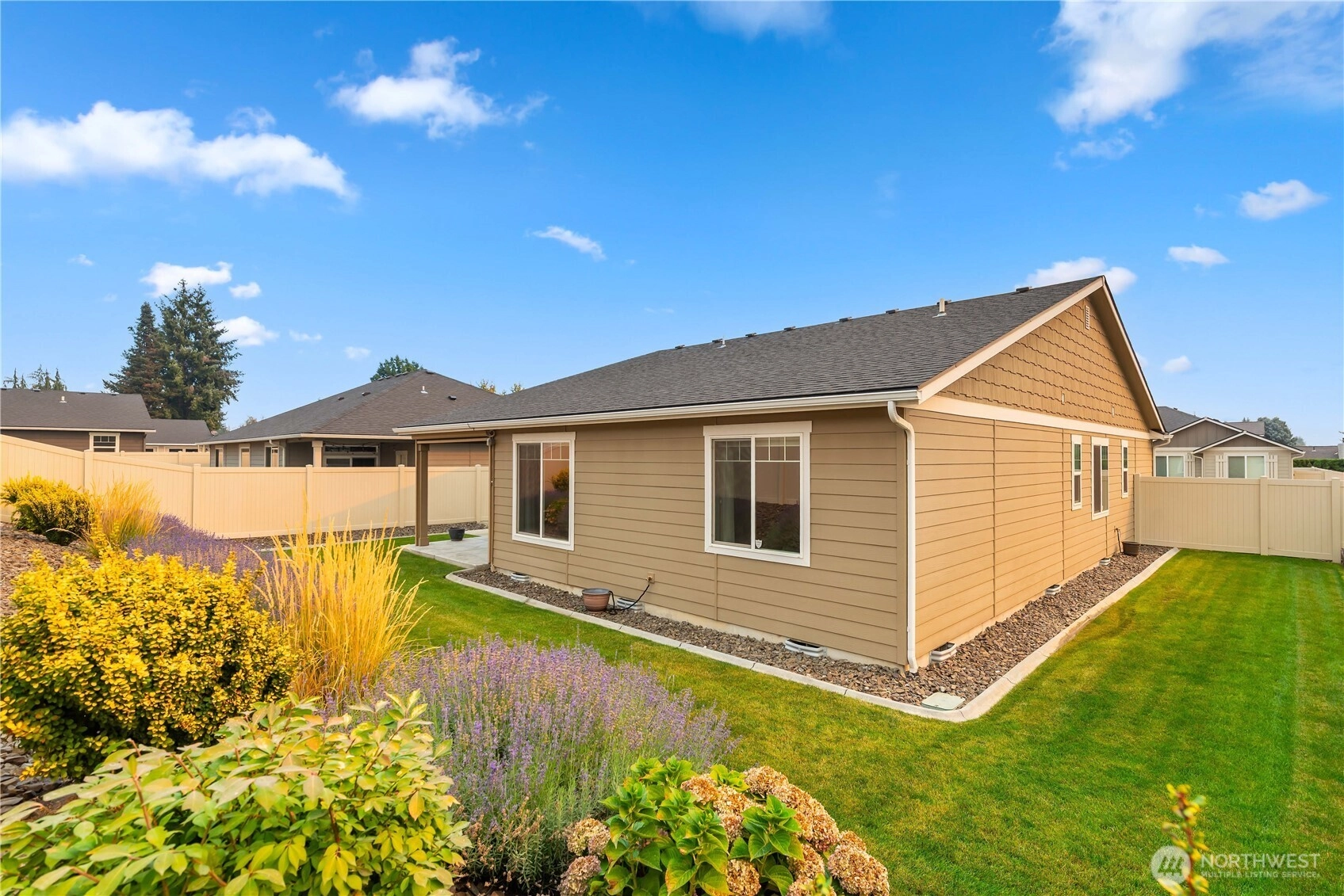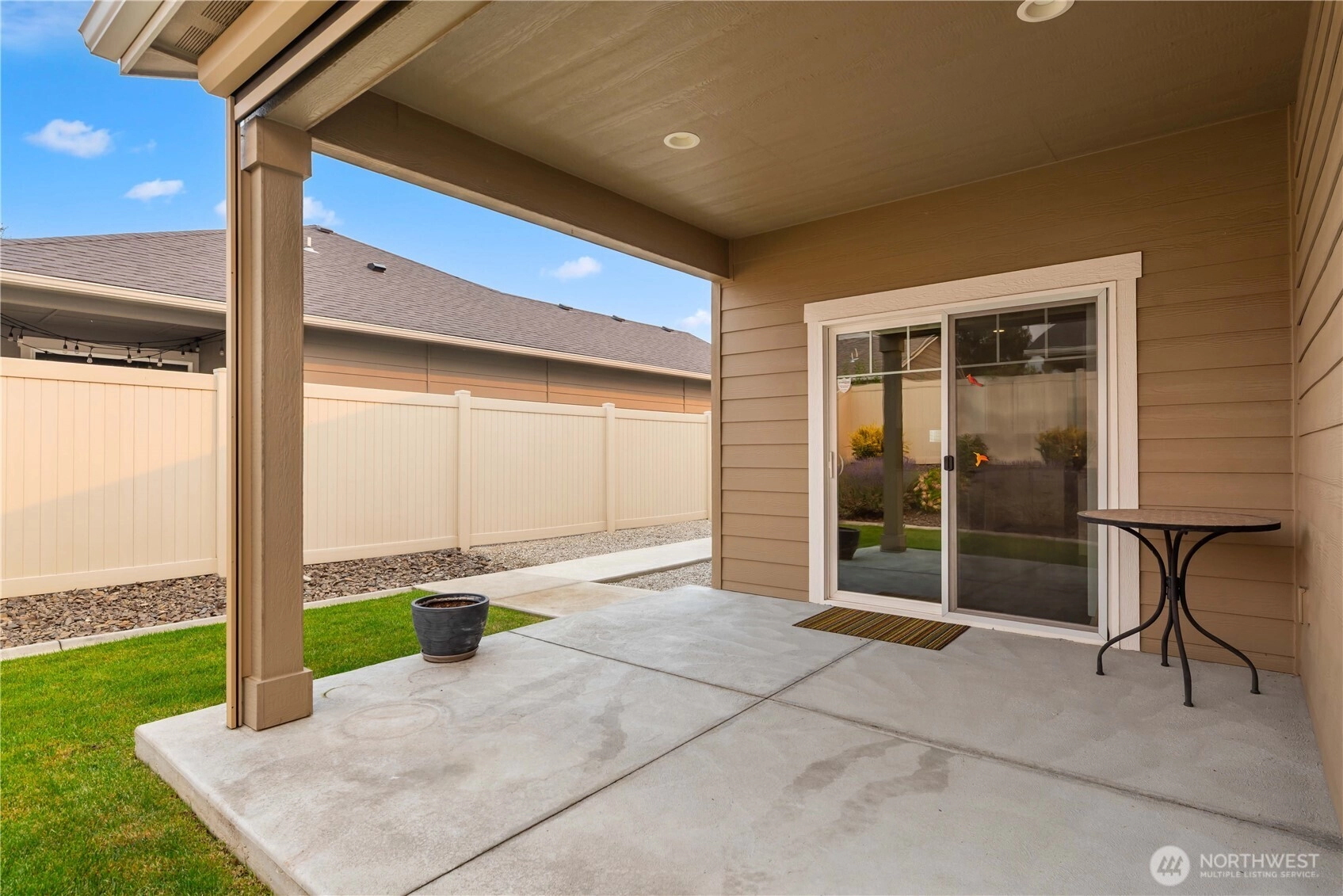 Welcome to one level living at it's finest! Enjoy high ceilings and bright and light living spaces throughout. This home features an open floor plan that you'll be sure to love! Kitchen offers stylish white cabinetry, large center island, solid surface counters & stainless steel appliances. Living room has a cozy electric fireplace and large picture window. Primary suite is spacious and offers a large primary bathroom that includes a walk-in shower, double sinks and large walk-in closet. Two additional bedrooms are separate from the primary bedroom and also offer nice space. Outside you'll love the private & fully fenced yard. Patio includes electric sun shade. This home also has a 2 car garage and includes all appliances.