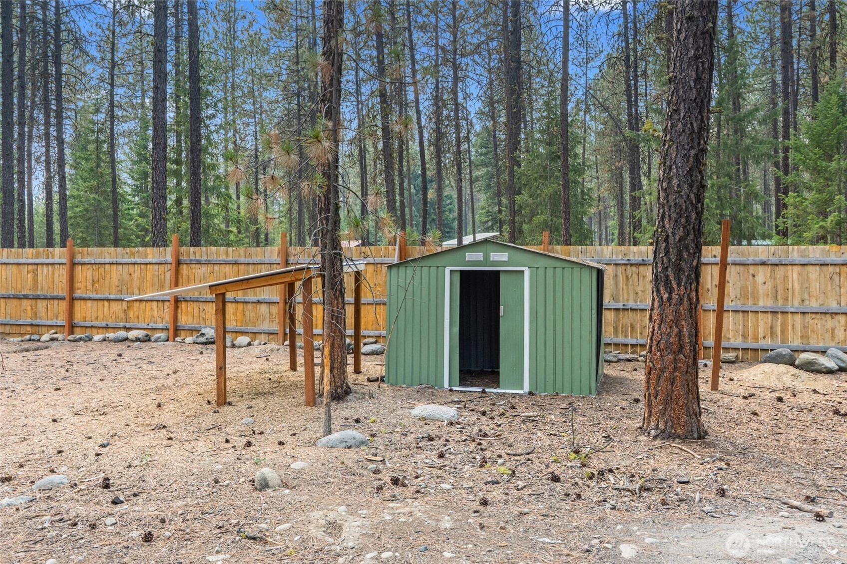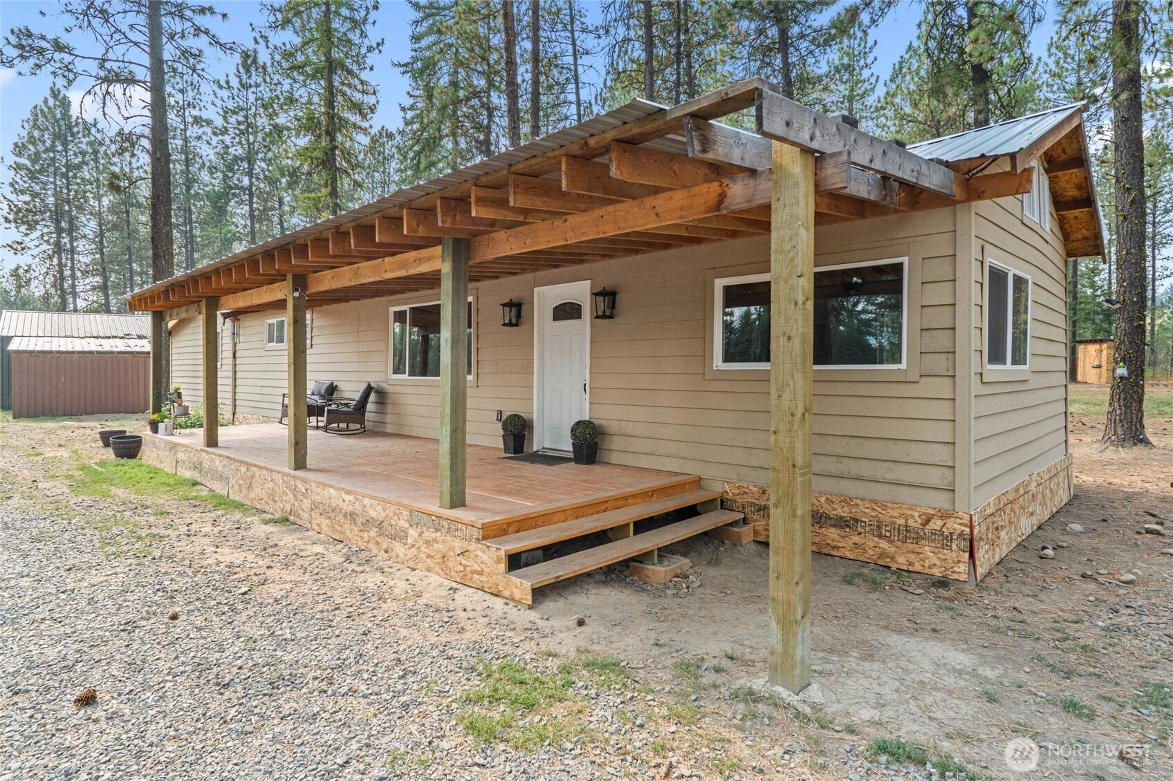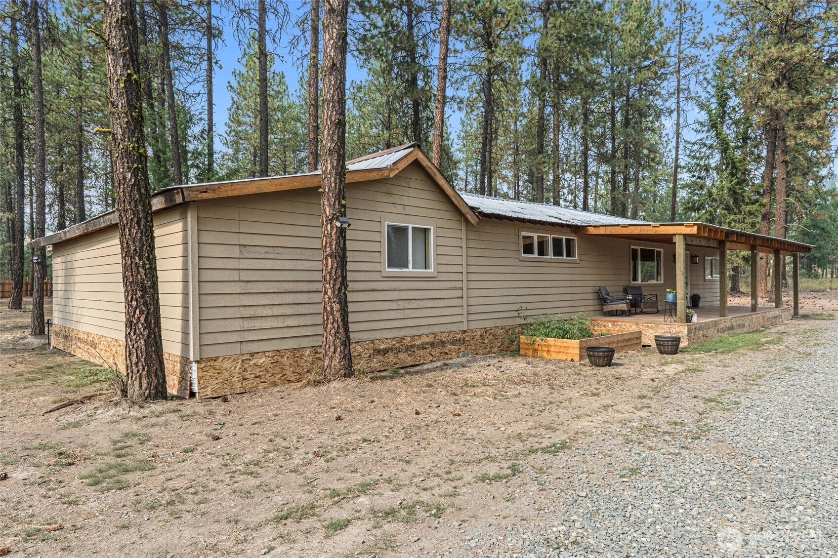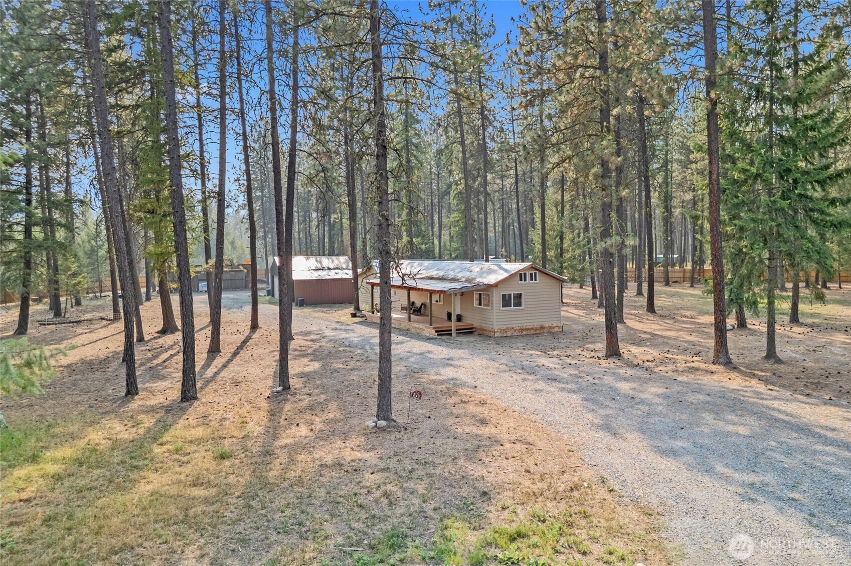 A hidden gem waiting for your finishing touches! Located just 20 minutes north of Colville, this charming 2BR/2BA home is nestled on 2.85 fully fenced acres & offers the perfect blend of comfort & potential. Enjoy the covered front porch, or step inside to appreciate the vaulted ceilings, vinyl windows, & spacious primary bedroom. With one-level living, this home is both accessible & inviting. Practical features include permitted 4BR septic system, drilled well, Avista power already in place, two mini-splits for efficient heating & cooling, and durable metal roof. Outside, you'll find a large 24' x 40' shop w/concrete floors, a detached carport, & plenty of room to expand or personalize. This property has the bones to be truly special.