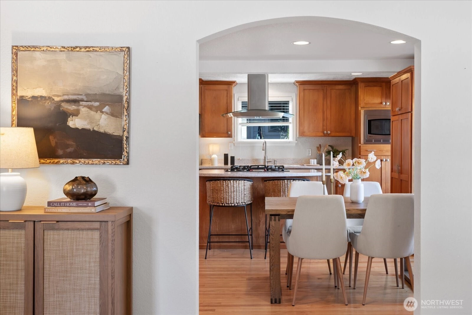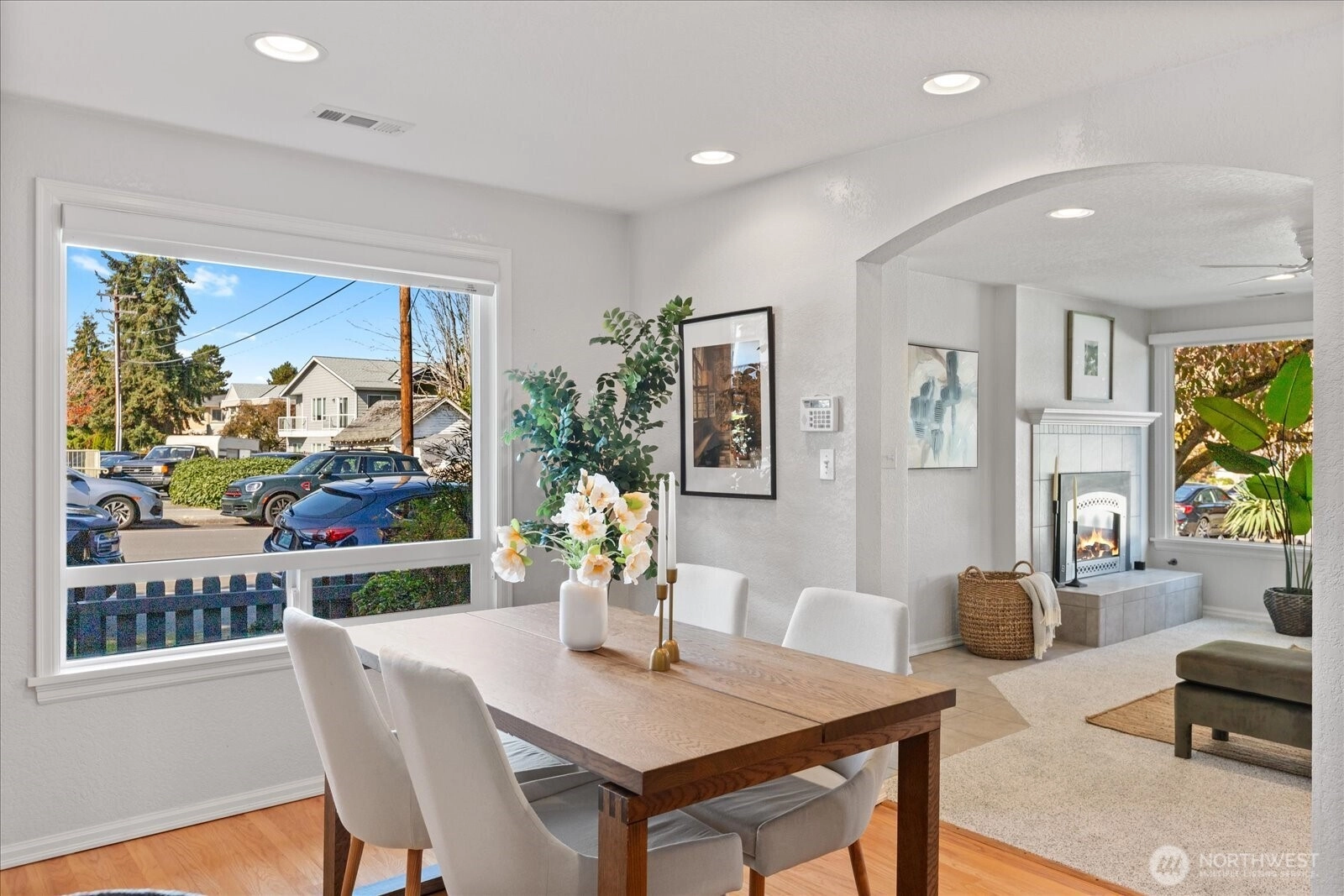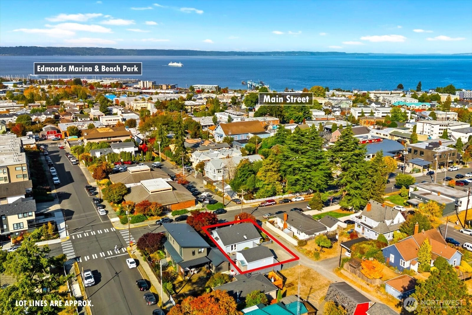 Downtown Edmonds bungalow in the heart of everything. This adorable and move in ready 2 bed home has been lovingly remodeled and maintained. Open kitchen with eat in island, adjoining dining, corian counters and many built ins. Large living area with picture windows and gas fireplace. Oversized primary suite with walk in and access to yard with turf. Remodeled bath connects to 2nd bed, perfect for guest room/office. Beautiful, easy maintenance landscape. Alley access to detached 2 car garage with work bench and overhead storage PLUS fenced RV parking. Newer roof and brand new gas furnace. Minutes to shops, restaurants, beaches, ferry, train and so much more.