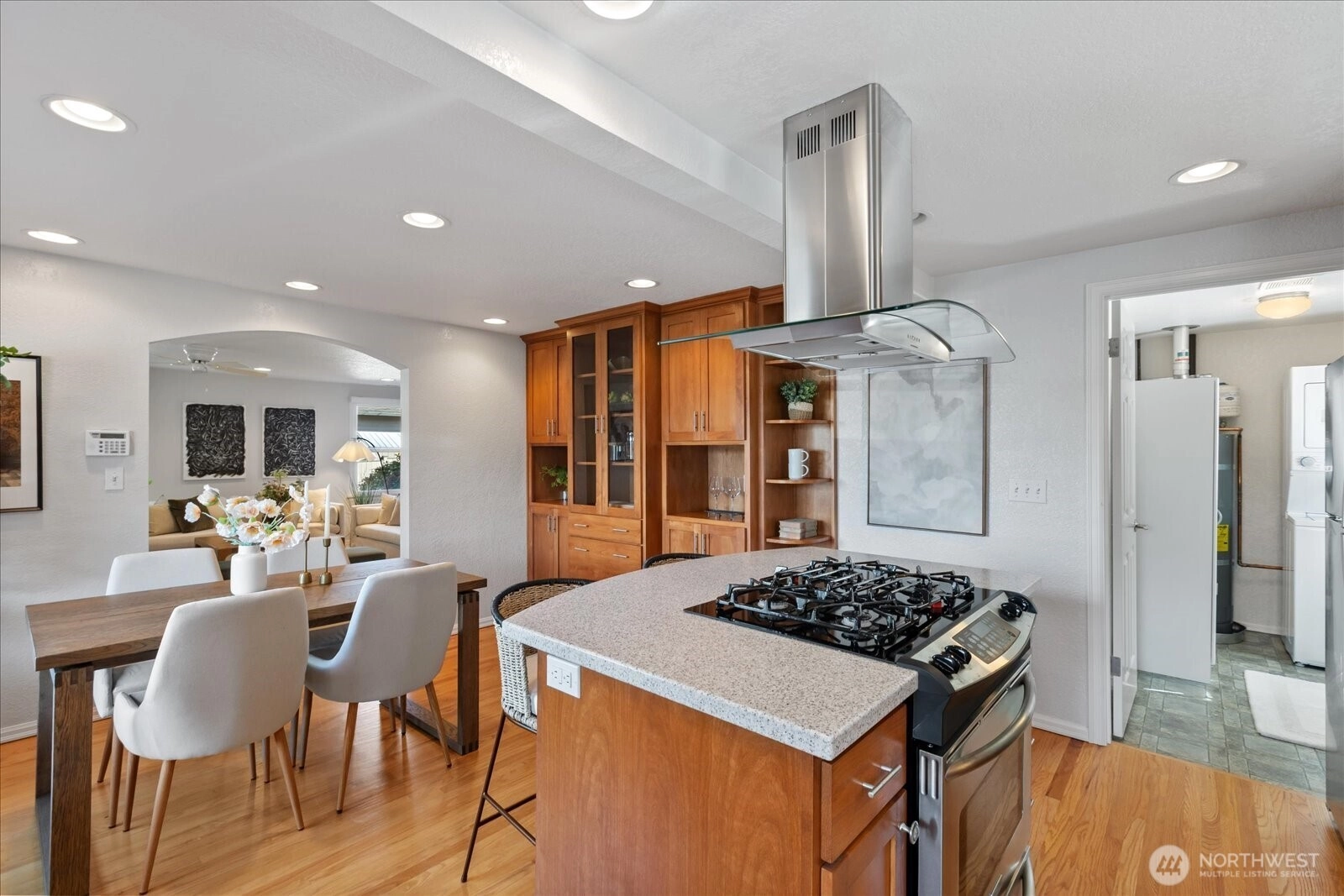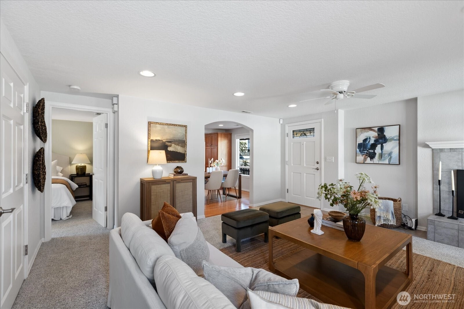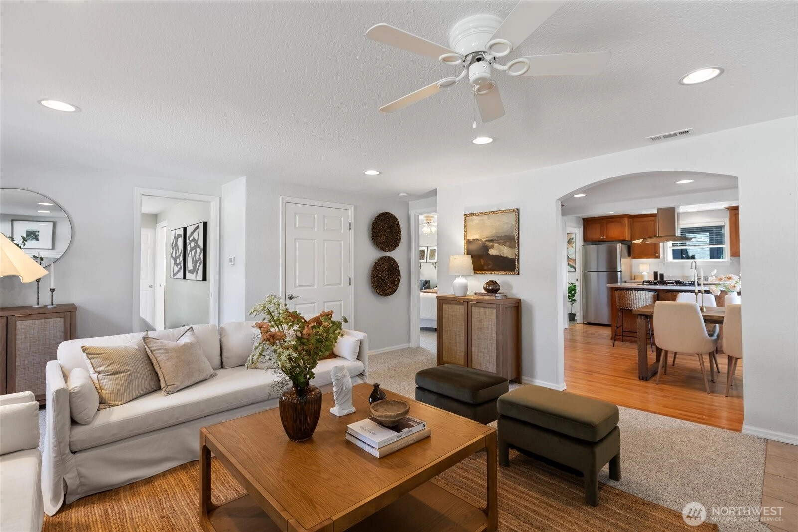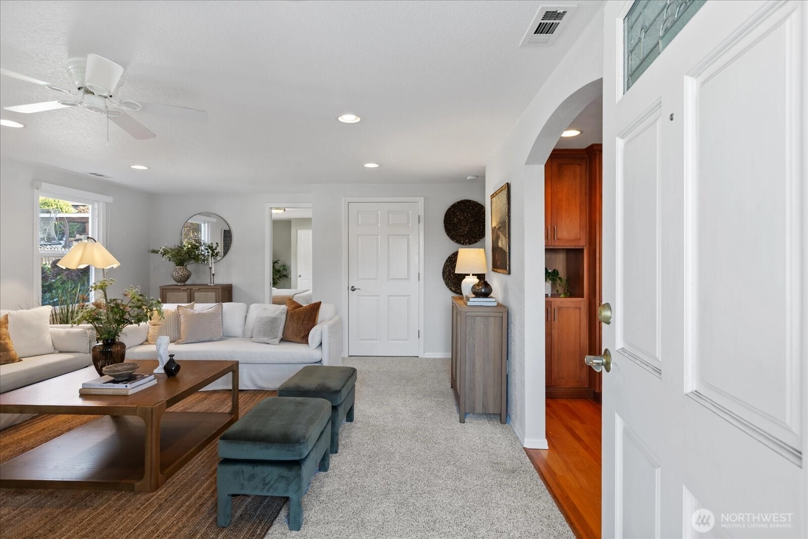 Downtown Edmonds bungalow in the heart of everything. This adorable and move in ready 2 bed home has been lovingly remodeled and maintained. Open kitchen with eat in island, adjoining dining, corian counters and many built ins. Large living area with picture windows and gas fireplace. Oversized primary suite with walk in and access to yard with turf. Remodeled bath connects to 2nd bed, perfect for guest room/office. Beautiful, easy maintenance landscape. Alley access to detached 2 car garage with work bench and overhead storage PLUS fenced RV parking. Newer roof and brand new gas furnace. Minutes to shops, restaurants, beaches, ferry, train and so much more.