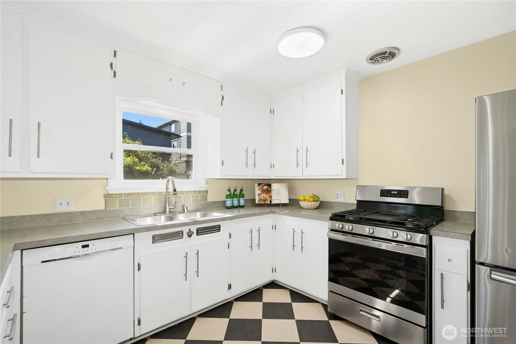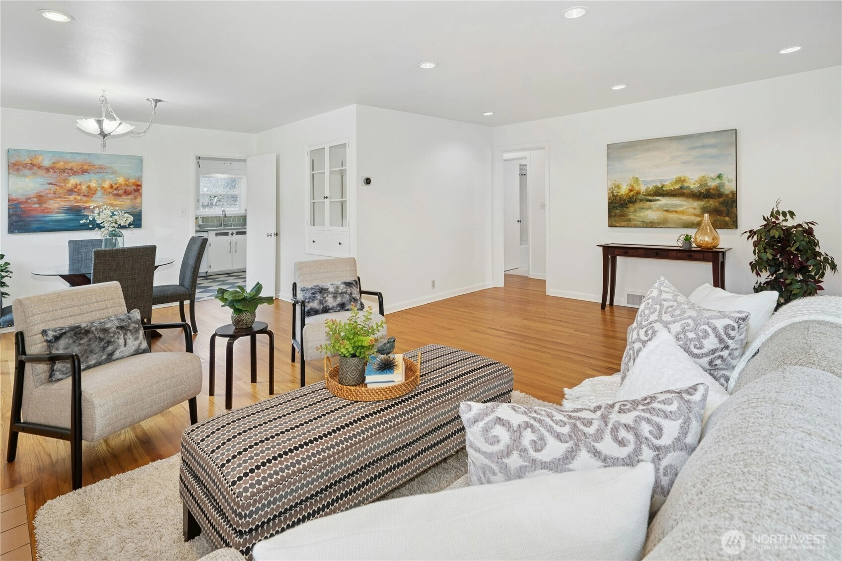 Charming mid-century craftsman in Seattle’s desirable Wedgwood neighborhood! This 5BR/2BA home blends classic details w/modern comfort oak hardwoods, built-ins and large windows. Enjoy a bright eat-in kitchen with a new stainless steel gas range/oven! Cozy gas FP on each level adds warmth year-round. Lower level offers huge flex space with a separate entrance—perfect for MIL, rental, or media/game rm. South-facing, fully fenced backyard is a peaceful retreat w/garden beds, patio, trellis & 1-car det. garage. freshly painted interior & LED lighting. Coveted location mins to UW, U Village, Lk WA, Matthews Beach, parks, top-rated schools, & transit. Located in a vibrant, well-loved community—move-in ready!
