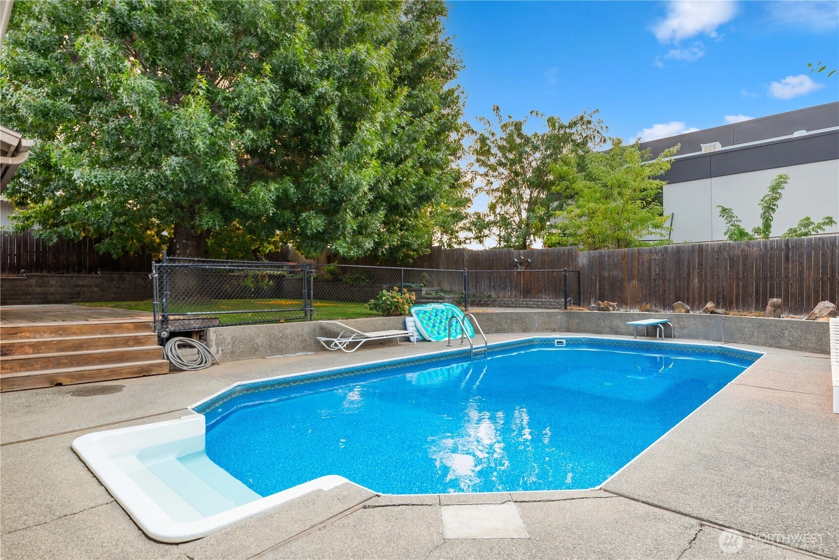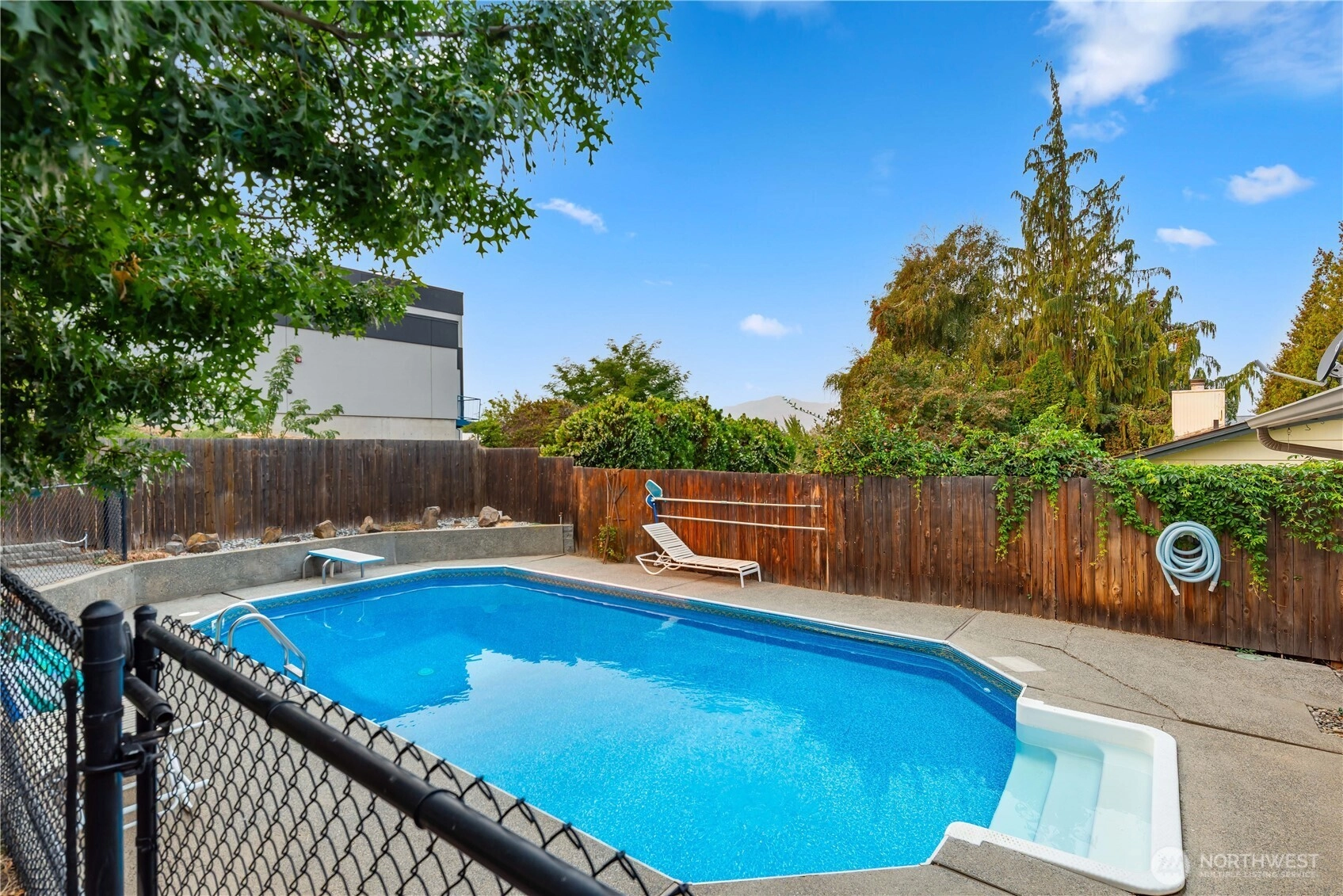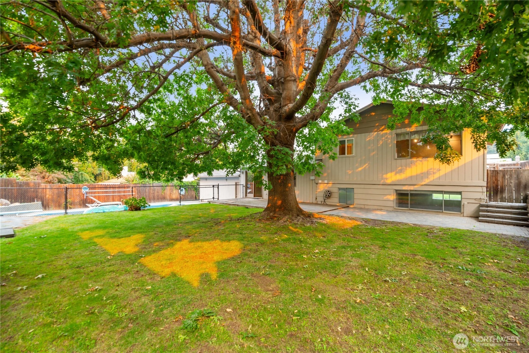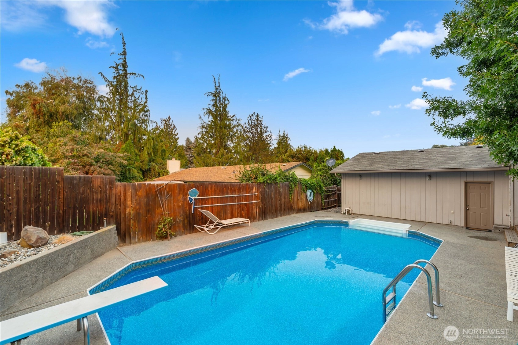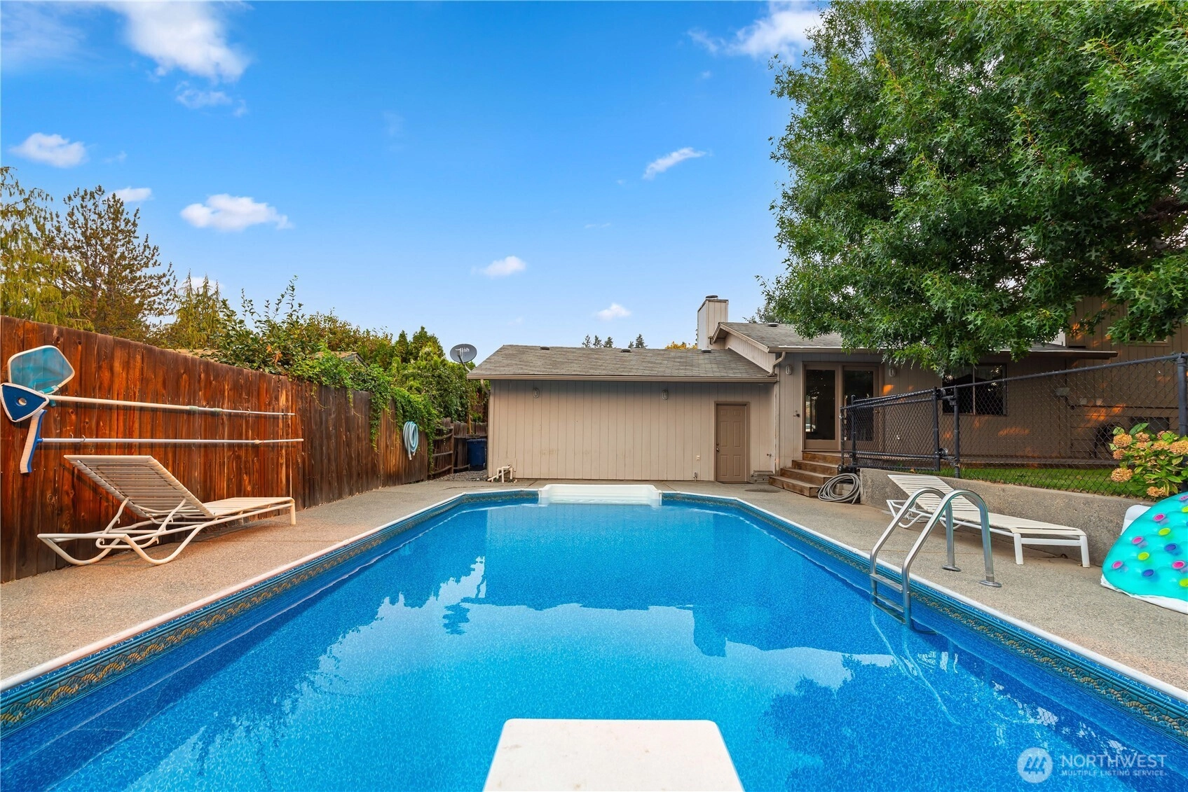 Sparkling inground pool to round out your summer fun in private backyard. Lots of space on three levels. Quiet street a short distance from Kenroy Elementary, Eastmont Junior High and Eastmont High Schools. Beautiful, mature shade trees grace the front and backyards. No residential neighbor to the south adds to backyard privacy. A great value with opportunities for equity growth. Home inspection with repairs available upon request! Seller will provide one year AHS Warranty for $700.