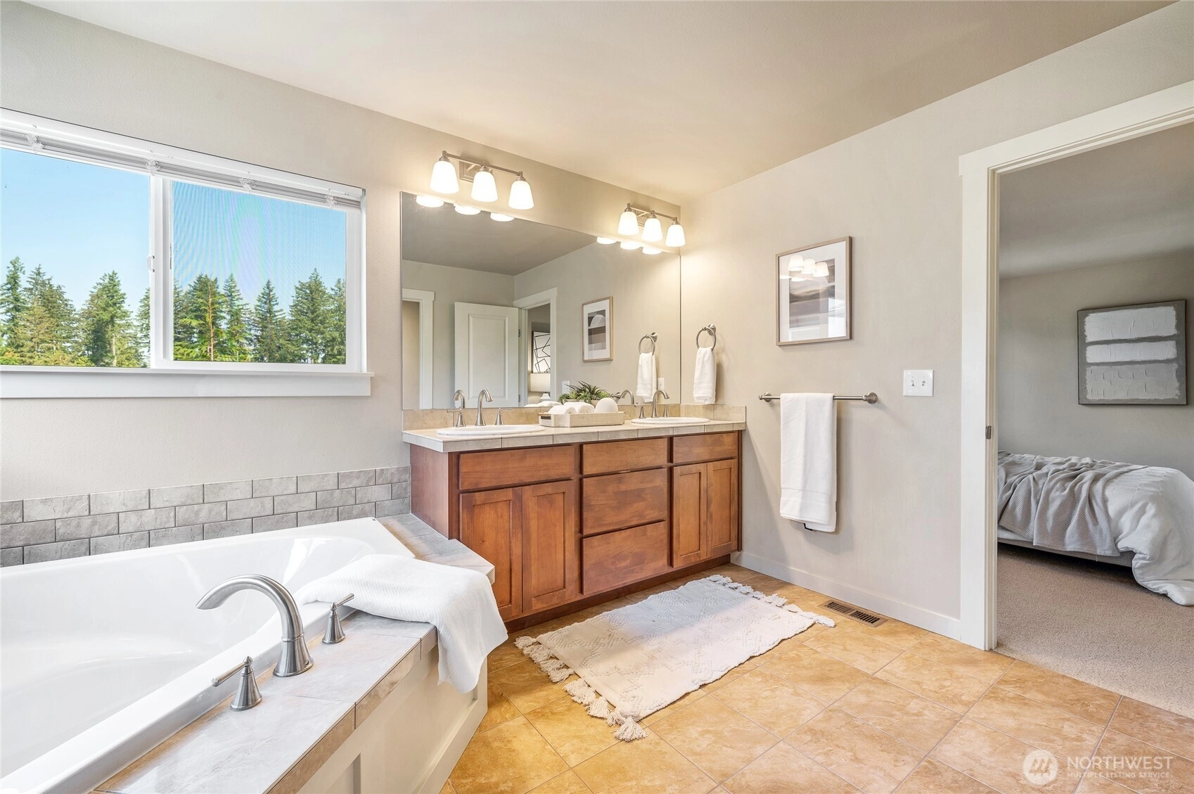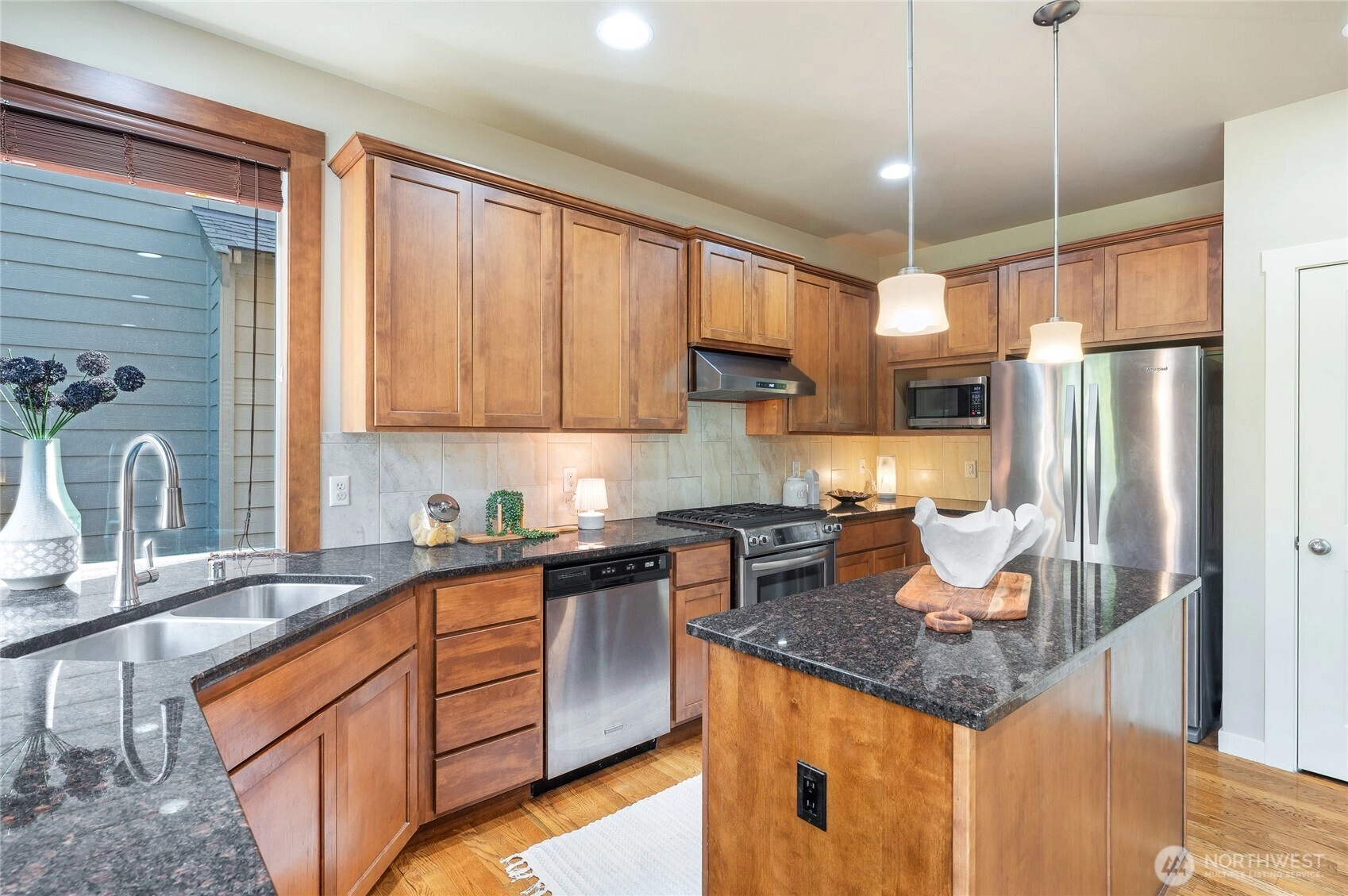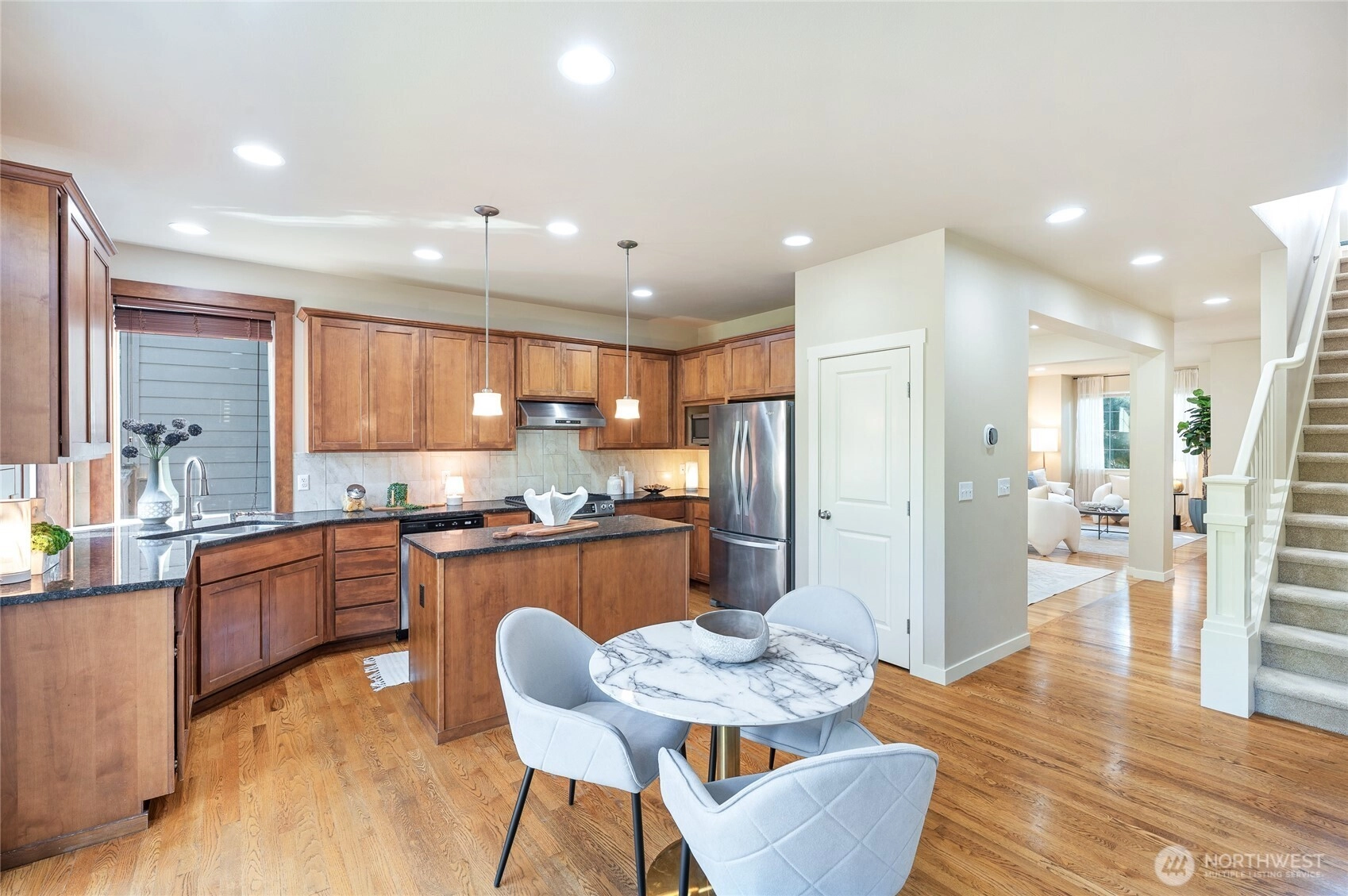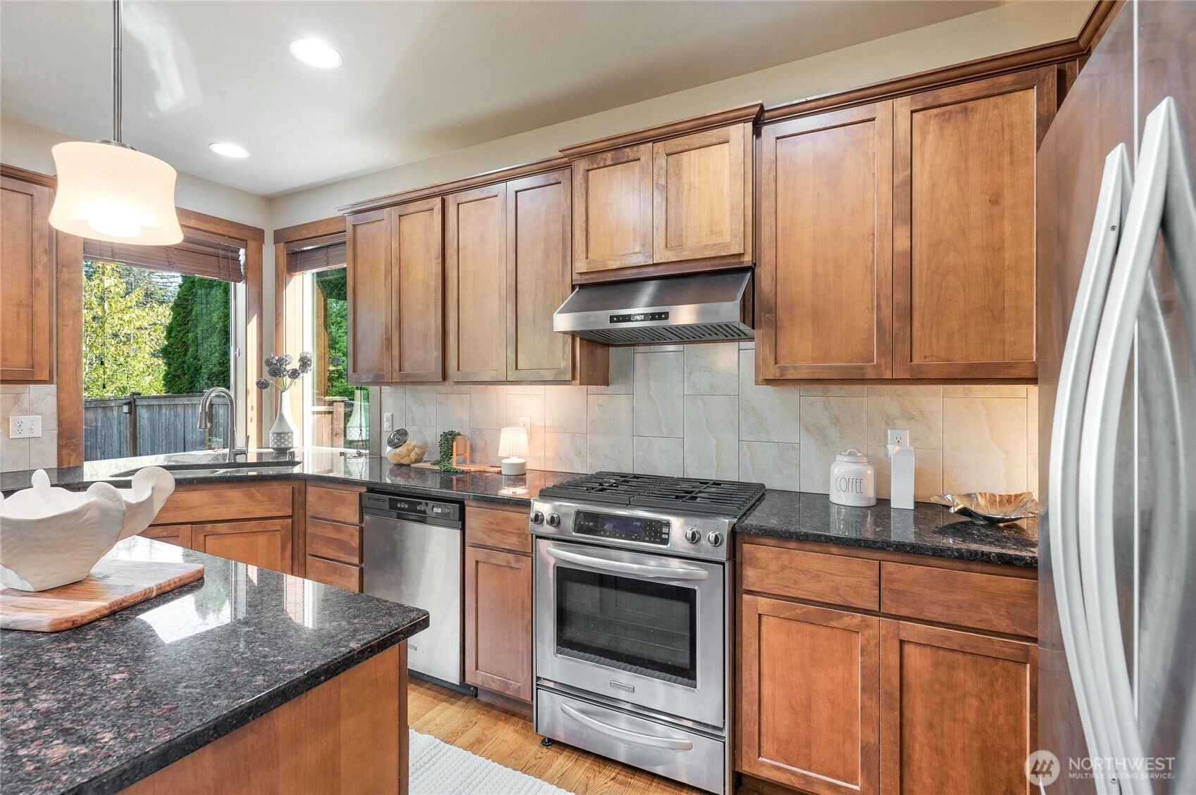 The best of both worlds - this exceptional Murray Franklyn home located in front of the park and backs to protected greenbelt. Versatile layout with guest bed and ¾ on main. Sunlit rooms and max privacy. Formal living/dining rooms feature hardwoods and wainscoting. Spacious family room with gas fireplace. Chef’s kitchen includes granite counters, rich cabinetry, tile backsplash, stainless appliances, and gas cooktop. Upstairs: large rec/media room, built-in bench landing, and luxurious primary suite with 5-piece bath and walk-in closet. Fully fenced large backyard. Sought after. Lake WA Schools. This gorgeous home has it all! Don’t wait.