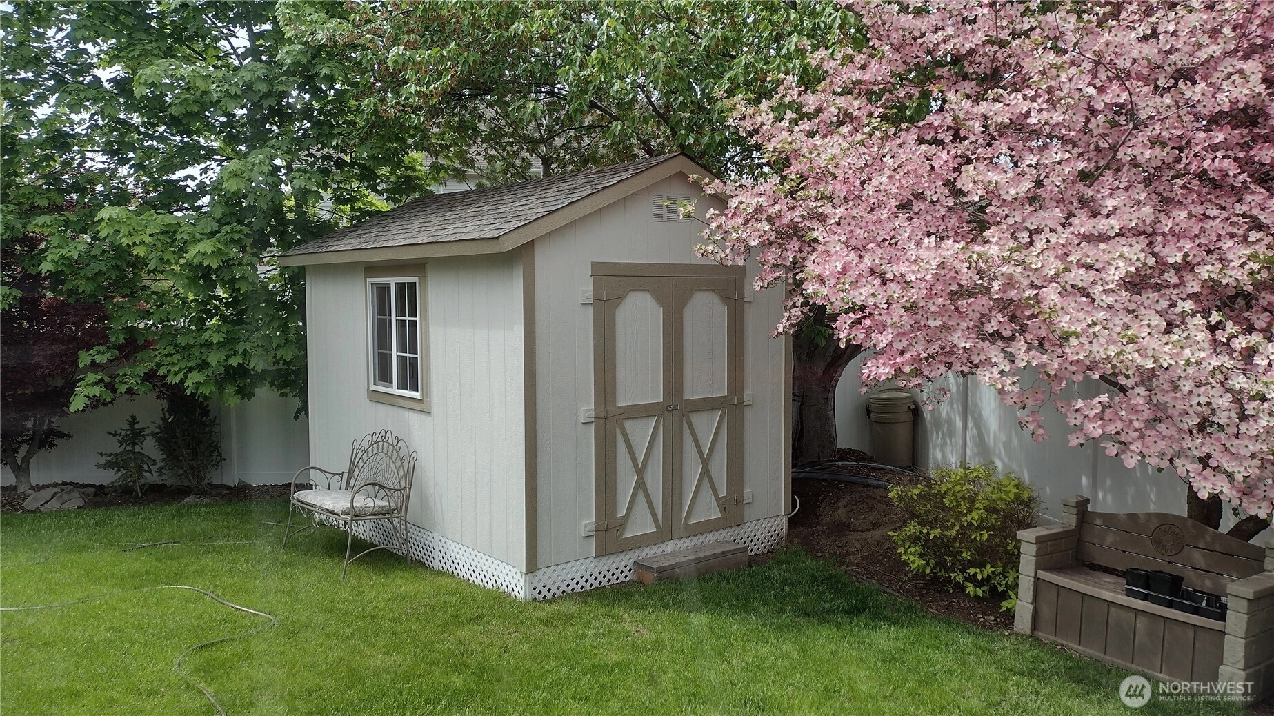 Exceptional home in the valued community of Liberty Lake, within blocks of 3 golf courses, shopping center, schools, & close to beautiful Pavilion Park. Exterior completely updated with new roof, new vinyl siding, newer windows, and new HVAC system with heat pump. One-level living at its finest, with large covered deck, fully-landscaped yard with water feature, private back yard with new vinyl fencing, storage shed, garden shed, & wired for hot tub. Well-maintained interior with vaulted ceilings, gas fireplace, 3 bedrooms (2 bedrooms plus office with French doors), living room, family room, kitchen/dining room, 2 full baths, laundry room with storage. Bonus room with built-in desk & storage. Master suite with soaking tub & separate shower.