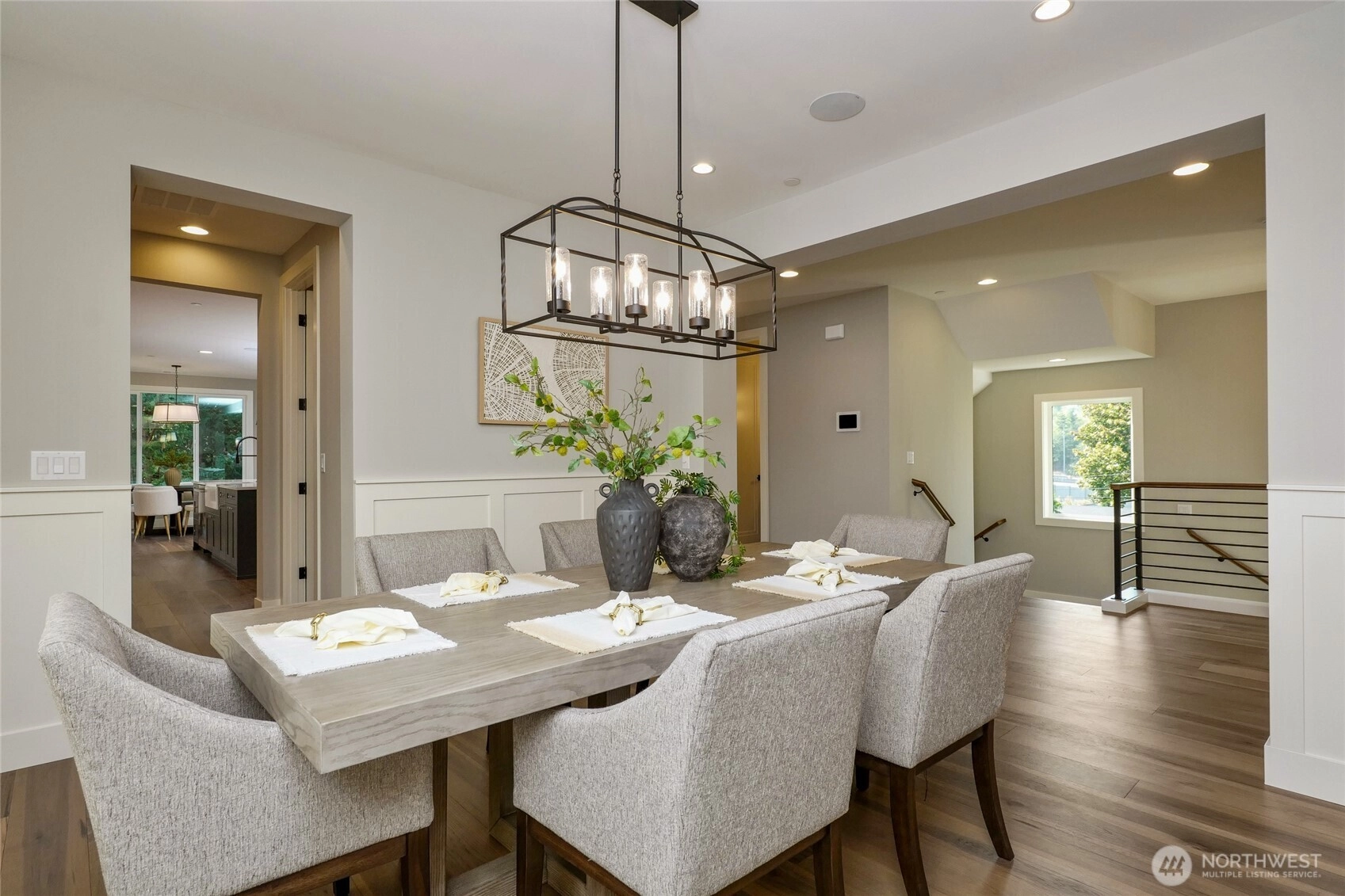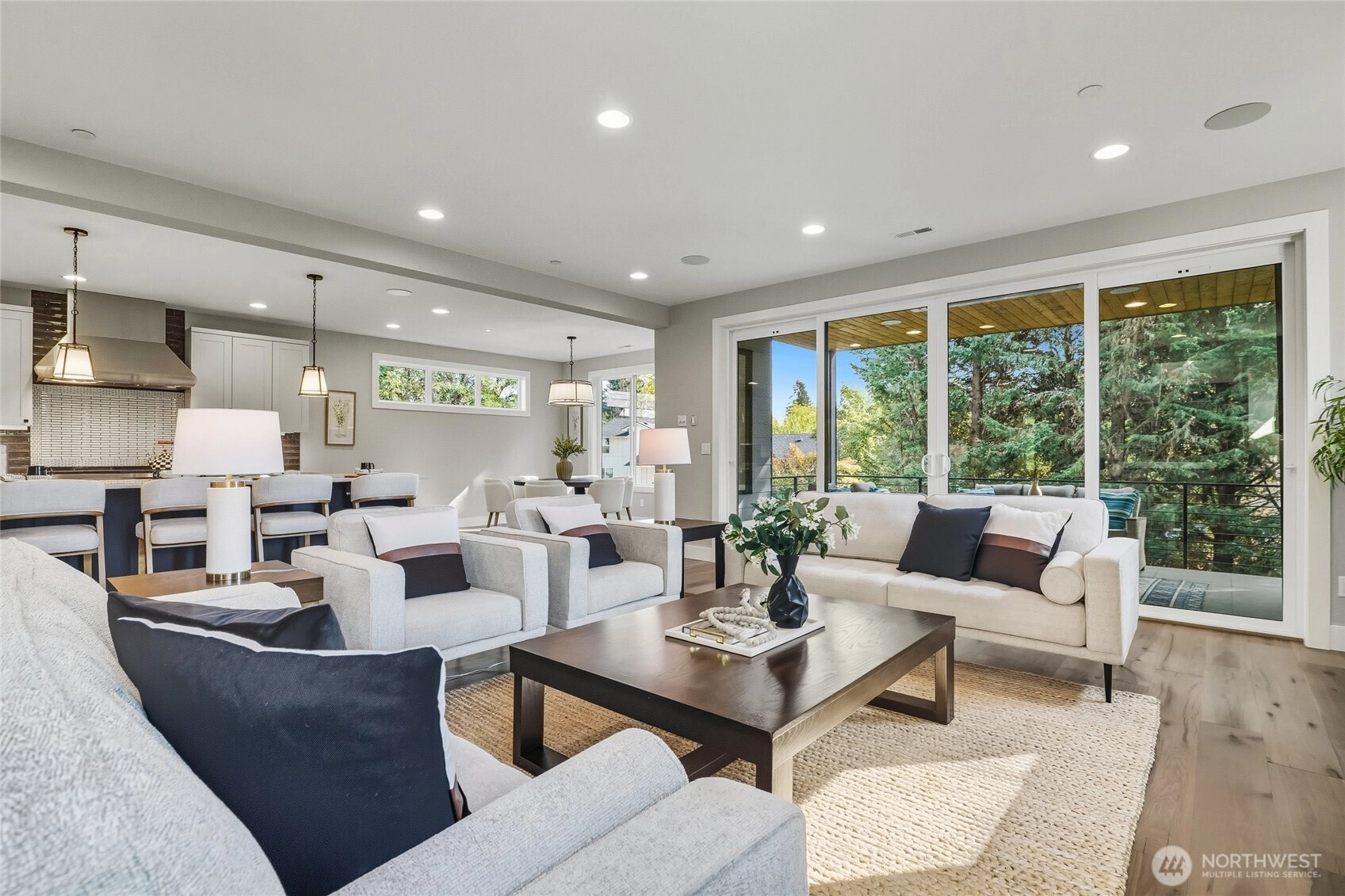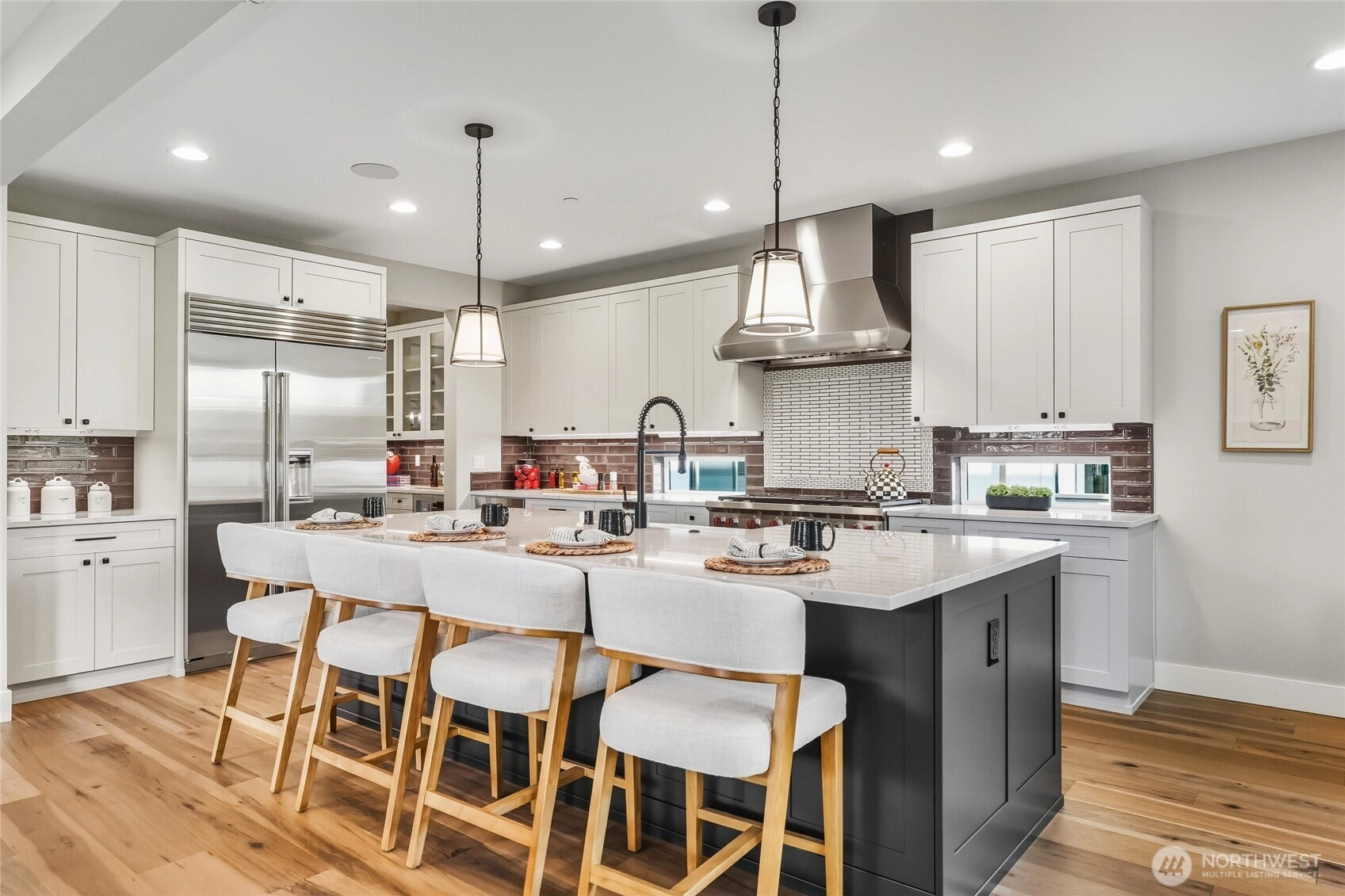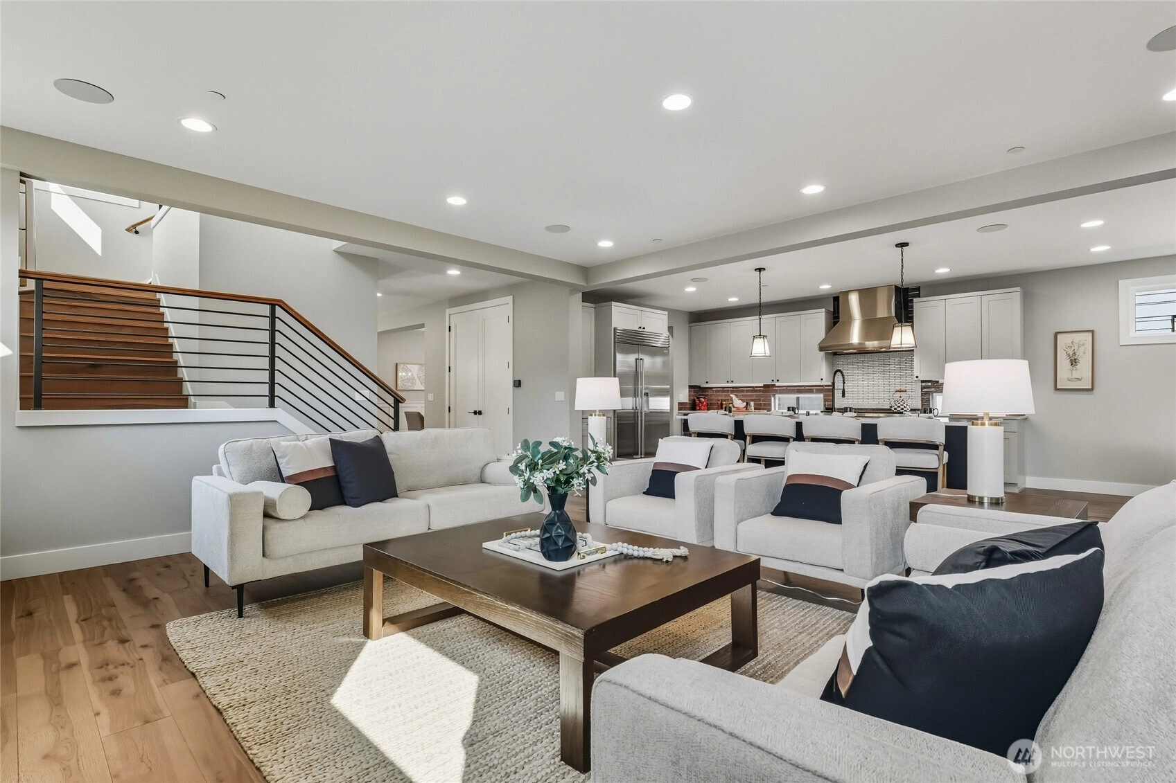 Luxurious new home featuring over 4,600sf of timeless elegance & contemporary flair. Stunning open floorplan, perfect for entertaining. The flowing Kitchen is equipped w/ quartz counters & island, 48” Sub-Zero fridge/freezer, Wolf 6-burner gas range w/ infrared griddle & pantry w/appliance counters. Formal Dining room & butler's pantry w/dual-temp wine cooler. Family Room leads to covered deck w/heaters + gas fp. Mainfloor Guest Suite w/ 3/4 bath. Exquisite Primary suite w/ spa bath, heated floors, multi-head shower. Built-in speakers, 220V EV charging, 8 Solar Panels, Smart wired. Lower level w/additional entry, Rec. Room, 6th BR, Bath & Office for many live/work possibilities. Location! Walk or ride to Microsoft campus & new Light Rail.