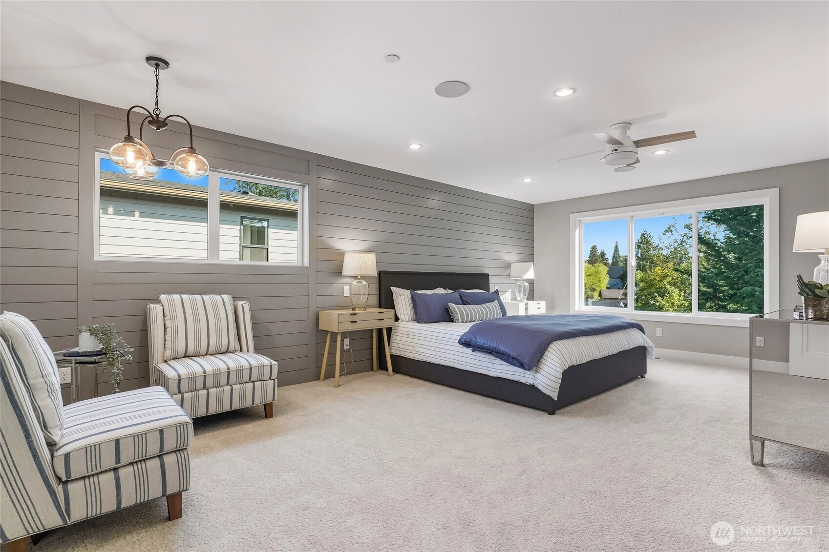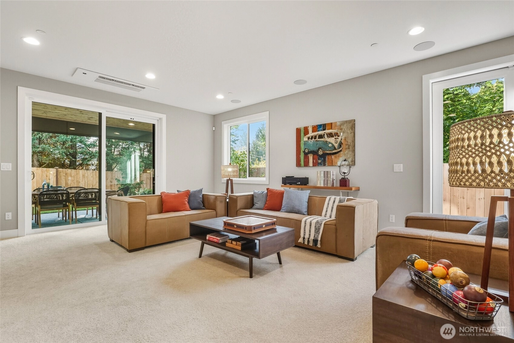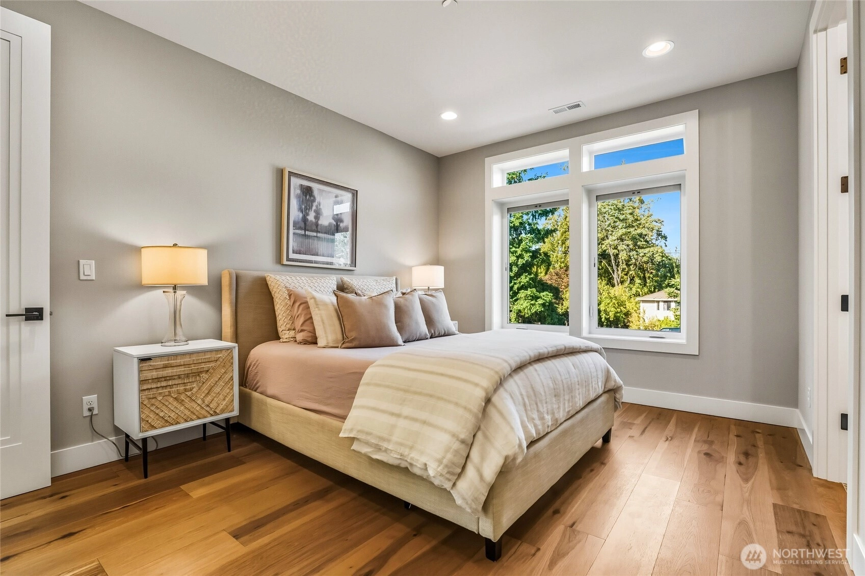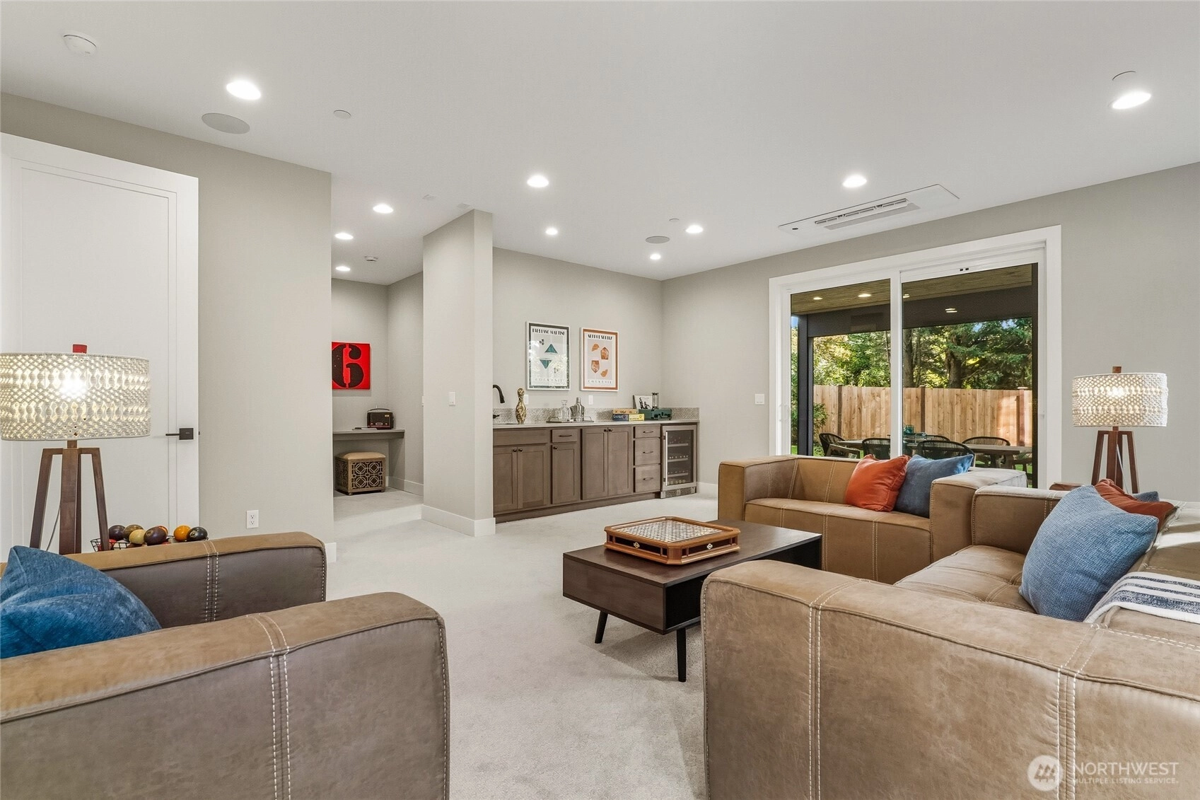 Luxurious new home featuring over 4,600sf of timeless elegance & contemporary flair. Stunning open floorplan, perfect for entertaining. The flowing Kitchen is equipped w/ quartz counters & island, 48” Sub-Zero fridge/freezer, Wolf 6-burner gas range w/ infrared griddle & pantry w/appliance counters. Formal Dining room & butler's pantry w/dual-temp wine cooler. Family Room leads to covered deck w/heaters + gas fp. Mainfloor Guest Suite w/ 3/4 bath. Exquisite Primary suite w/ spa bath, heated floors, multi-head shower. Built-in speakers, 220V EV charging, 8 Solar Panels, Smart wired. Lower level w/additional entry, Rec. Room, 6th BR, Bath & Office for many live/work possibilities. Location! Walk or ride to Microsoft campus & new Light Rail.
