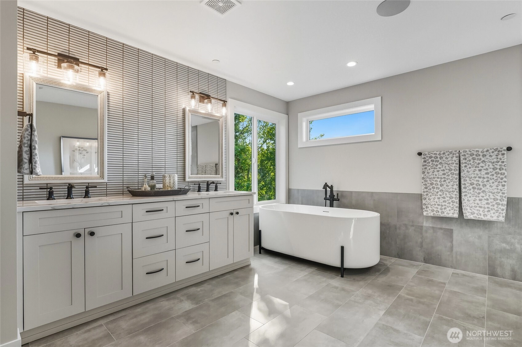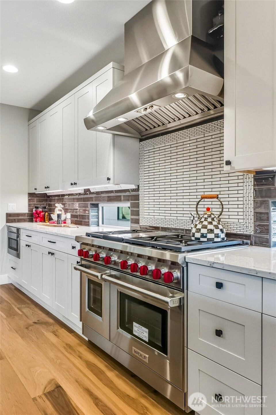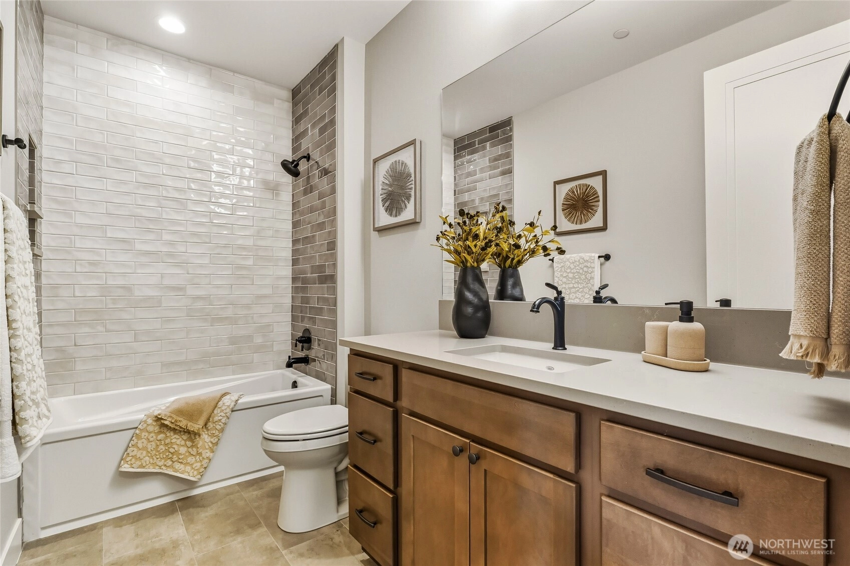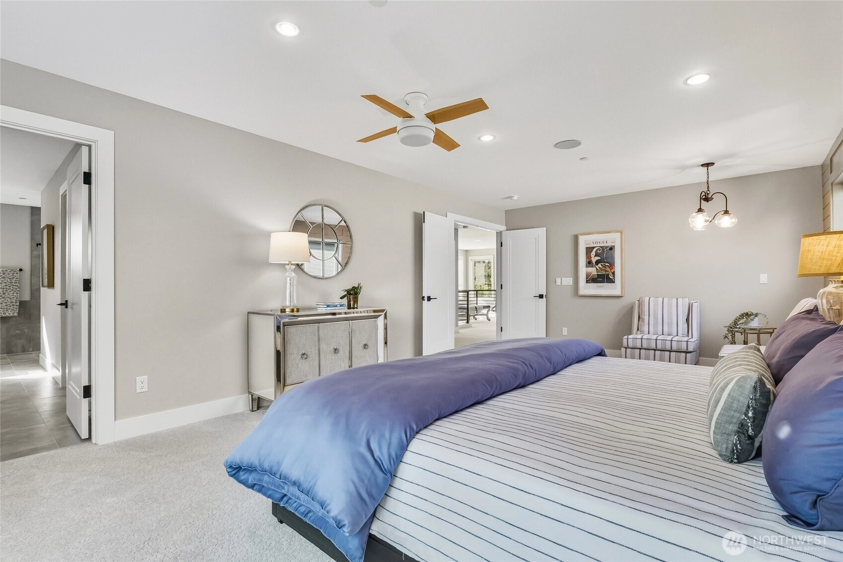 Luxurious new home featuring over 4,600sf of timeless elegance & contemporary flair. Stunning open floorplan, perfect for entertaining. The flowing Kitchen is equipped w/ quartz counters & island, 48” Sub-Zero fridge/freezer, Wolf 6-burner gas range w/ infrared griddle & pantry w/appliance counters. Formal Dining room & butler's pantry w/dual-temp wine cooler. Family Room leads to covered deck w/heaters + gas fp. Mainfloor Guest Suite w/ 3/4 bath. Exquisite Primary suite w/ spa bath, heated floors, multi-head shower. Built-in speakers, 220V EV charging, 8 Solar Panels, Smart wired. Lower level w/additional entry, Rec. Room, 6th BR, Bath & Office for many live/work possibilities. Location! Walk or ride to Microsoft campus & new Light Rail.