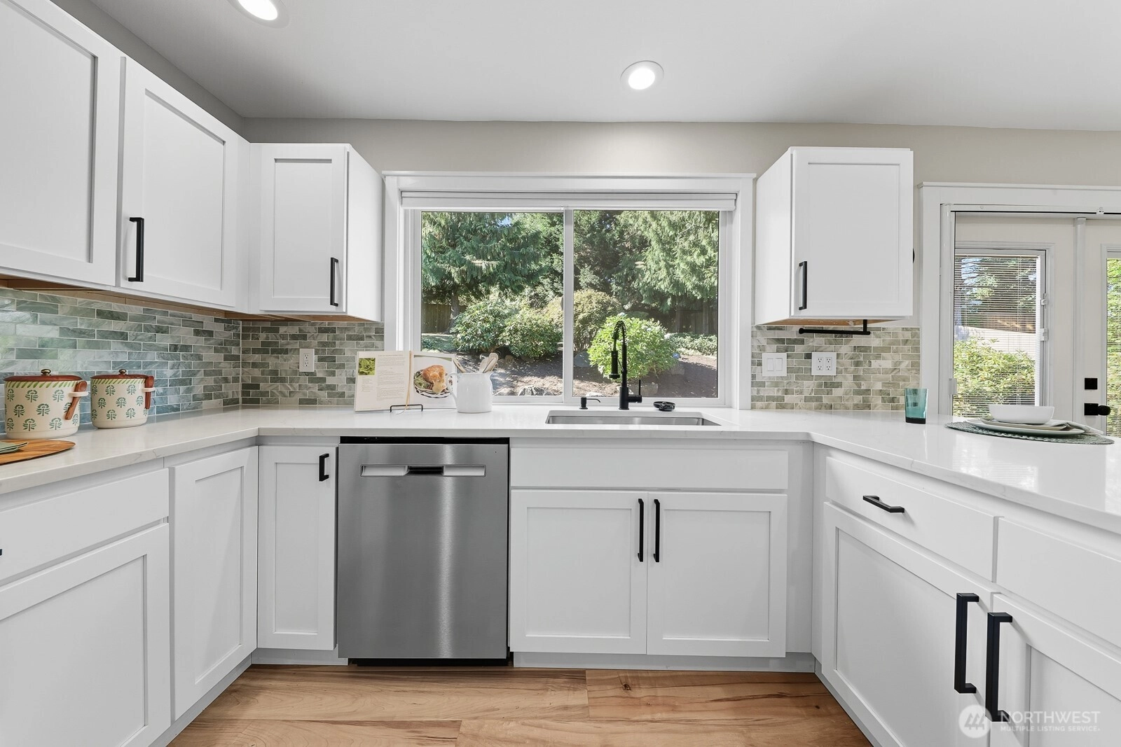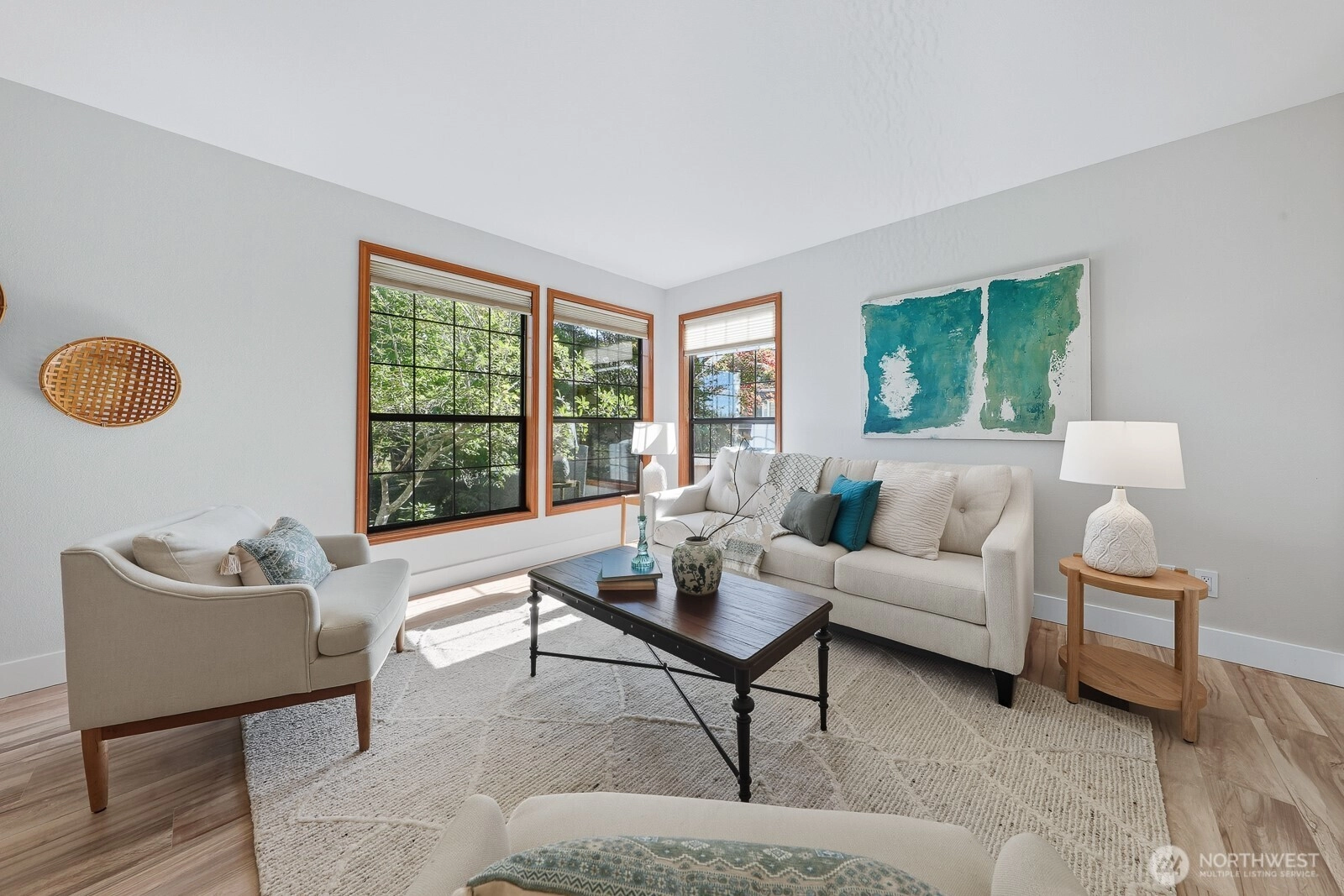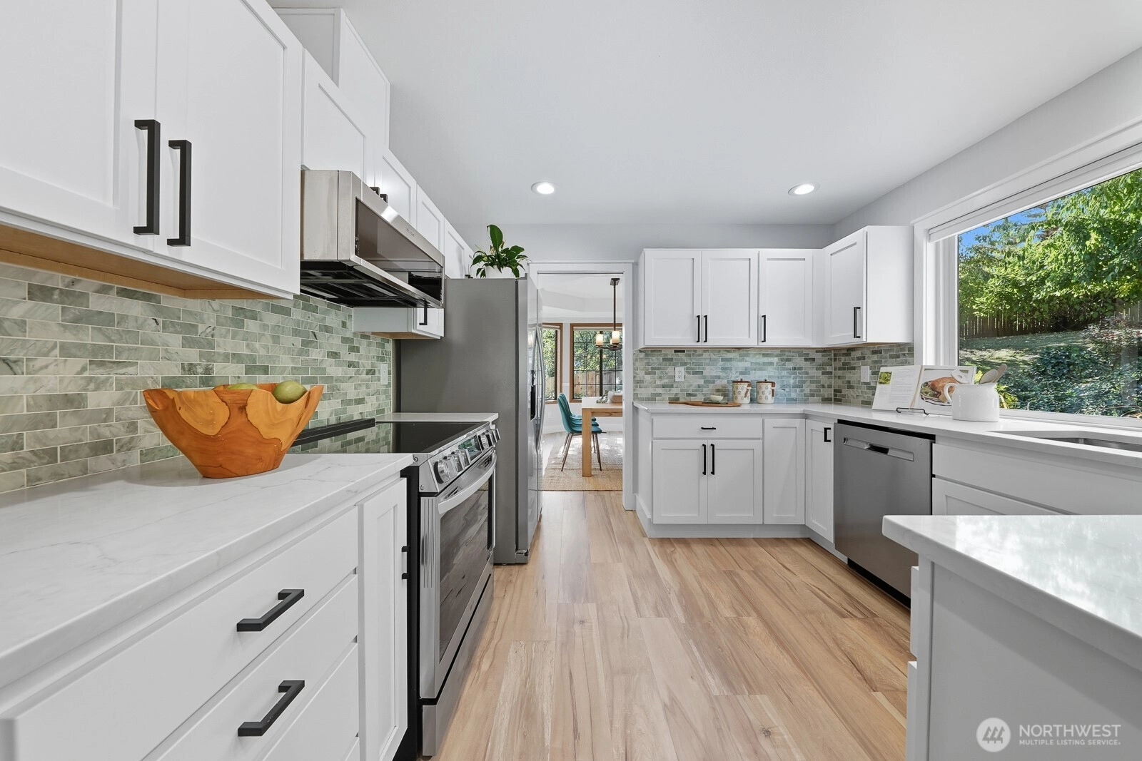 Thoughtful updates & a contemporary feel make this home move in ready and a true stand out. Formal entry leads to light filled living & dining rooms. The open kitchen featuring quartz countertops & stainless appliances flows seamlessly into the family room or onto the deck - perfect for entertaining or casual gatherings. Upstairs, you'll find three generous bedrooms plus a serene primary suite w/two walk-in closets & five-piece bath. A versatile rec-room w/vaulted ceilings offers the ideal setting for movies, hobbies, or second family room. Laundry/mud room leads to the two-car garage, w/great storage space. Large beautifully landscaped lot & fenced backyard. Located on a cul-de-sac across from Brierwood Park close to light rail & freeways.