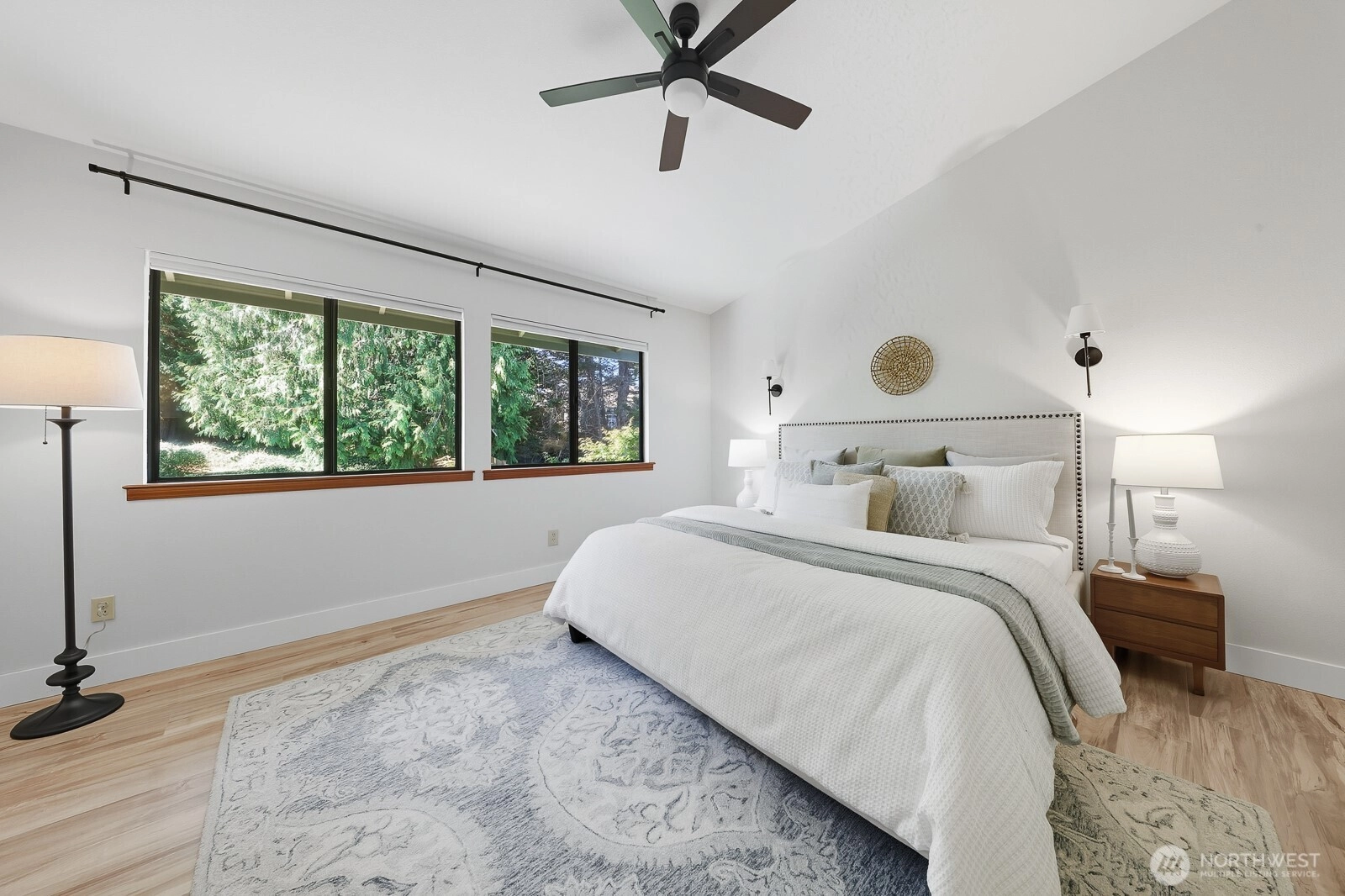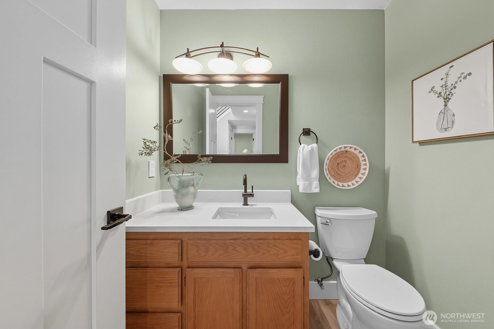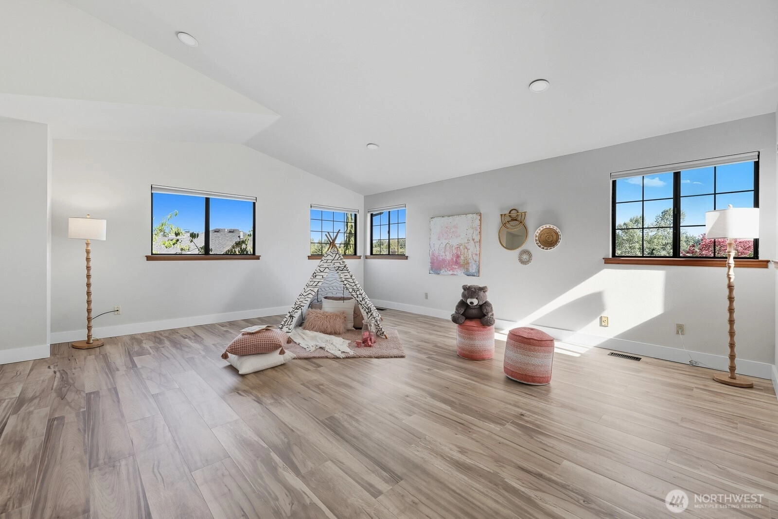 Thoughtful updates & a contemporary feel make this home move in ready and a true stand out. Formal entry leads to light filled living & dining rooms. The open kitchen featuring quartz countertops & stainless appliances flows seamlessly into the family room or onto the deck - perfect for entertaining or casual gatherings. Upstairs, you'll find three generous bedrooms plus a serene primary suite w/two walk-in closets & five-piece bath. A versatile rec-room w/vaulted ceilings offers the ideal setting for movies, hobbies, or second family room. Laundry/mud room leads to the two-car garage, w/great storage space. Large beautifully landscaped lot & fenced backyard. Located on a cul-de-sac across from Brierwood Park close to light rail & freeways.