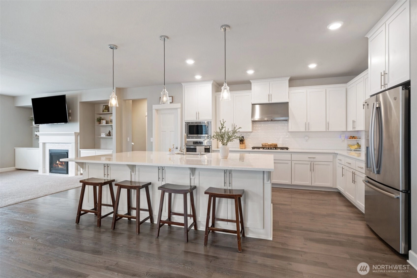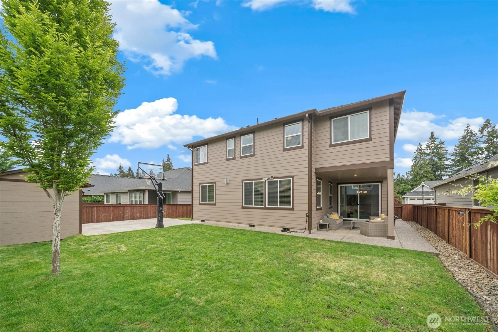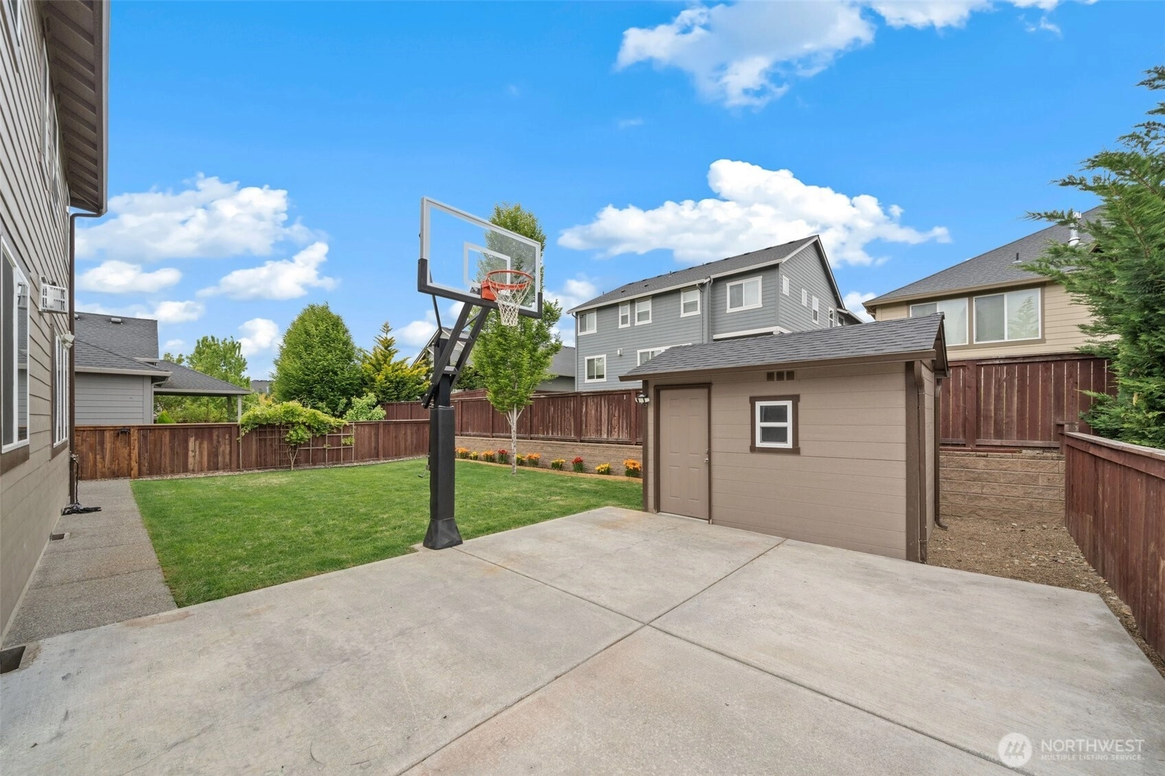 Beautiful 5 bedroom home, plus a large office, located in Seven Wells neighborhood. Spacious Kitchen with extra large quartz Island, white cabinets, walk in pantry, gas cooktop & stainless appliances. This home has an open dining, kitchen and living room area easy for entertaining & large gatherings. One bedroom on the main level with full bathroom. Primary bath has a generous walk in closet, soaker tub and tiled shower. Sizable upstairs bedrooms with large bathroom, a great bonus room, a fully fenced level backyard, with basketball hoop, garden shed and poured concrete sidewalks around perimeter of home. Location is perfect with walking/running trails but also close to shopping, freeways. Don't miss your chance to buy this lovely home.