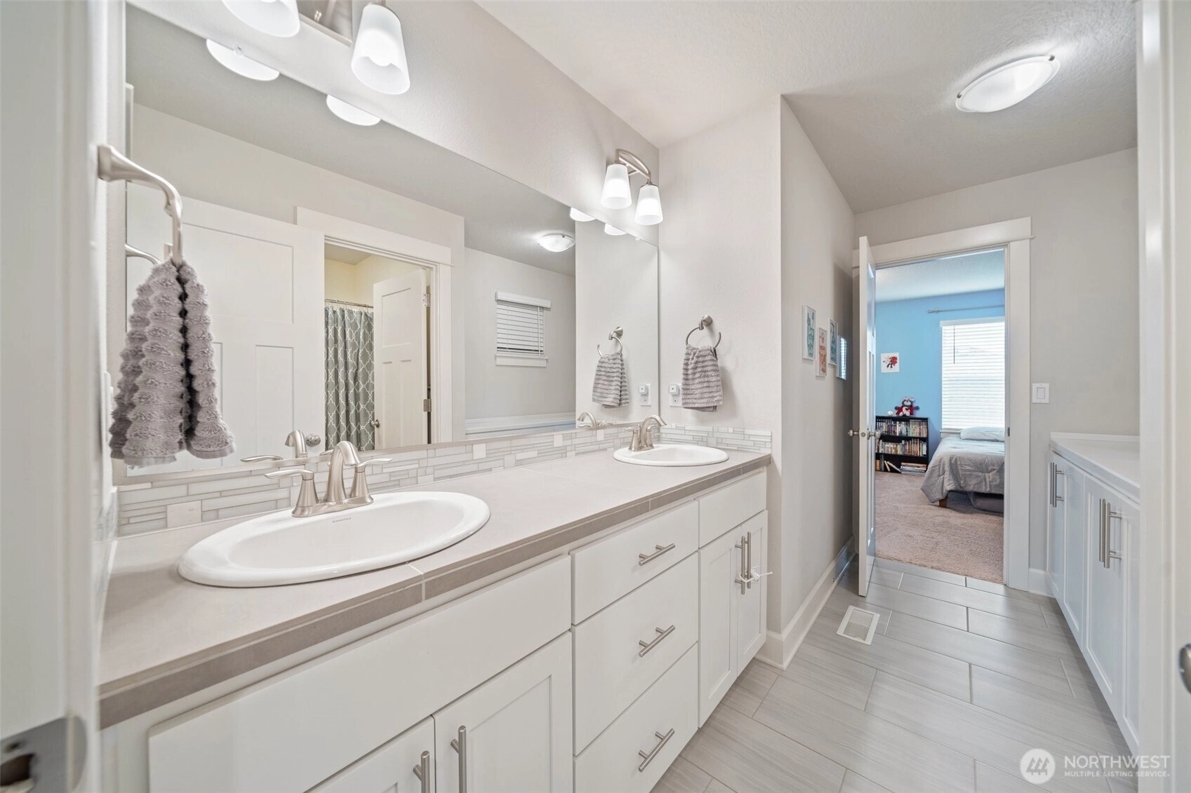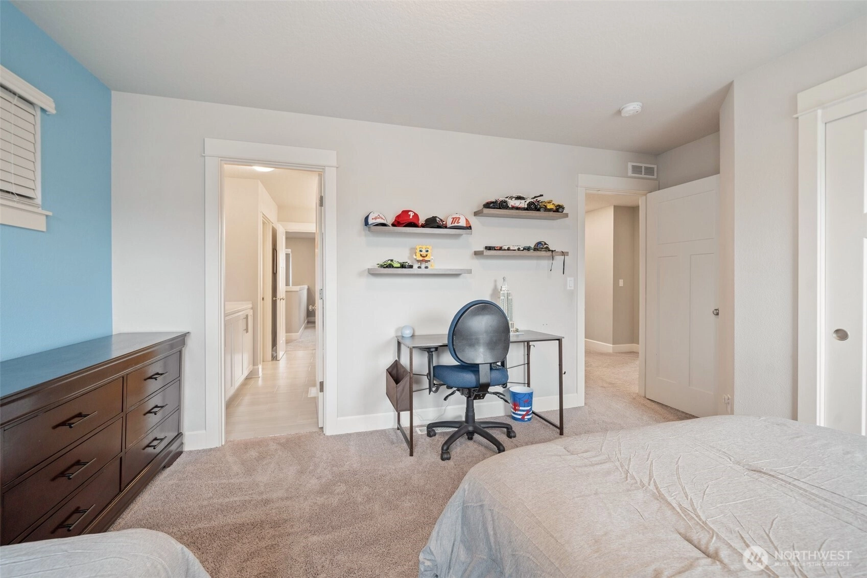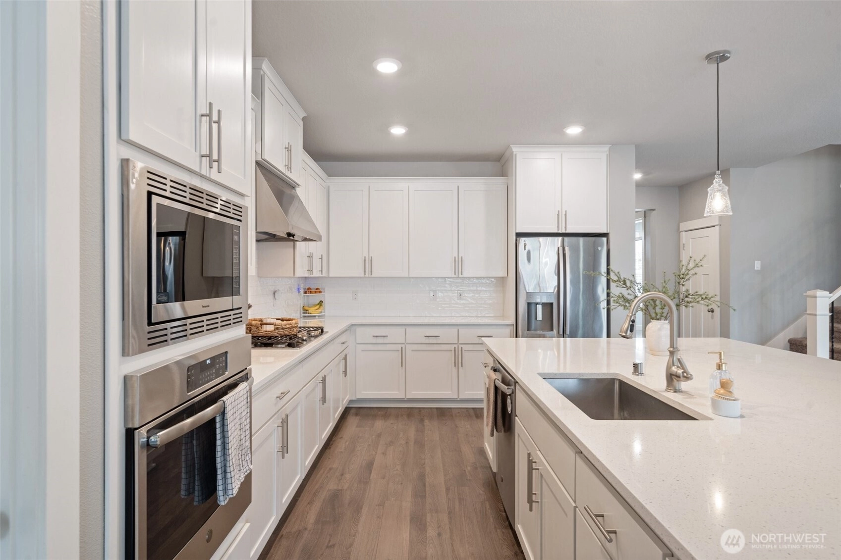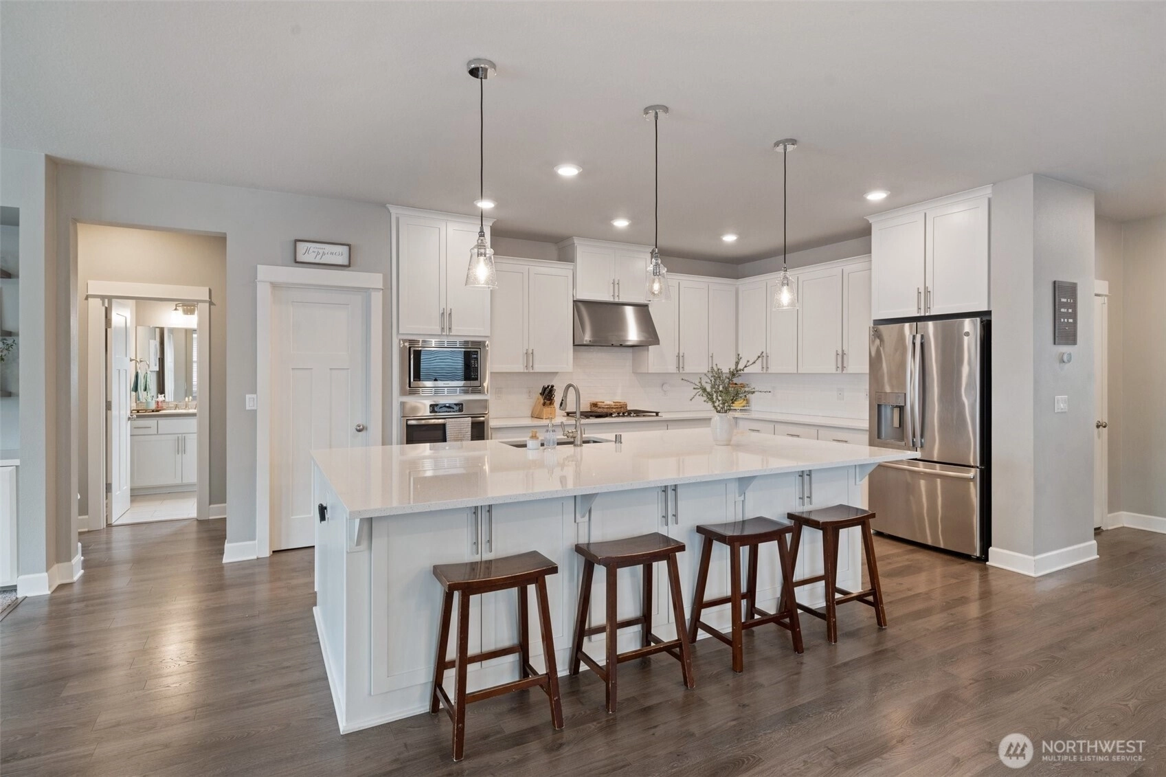Beautiful 5 bedroom home, plus a large office, located in Seven Wells neighborhood. Spacious Kitchen with extra large quartz Island, white cabinets, walk in pantry, gas cooktop & stainless appliances. This home has an open dining, kitchen and living room area easy for entertaining & large gatherings. One bedroom on the main level with full bathroom. Primary bath has a generous walk in closet, soaker tub and tiled shower. Sizable upstairs bedrooms with large bathroom, a great bonus room, a fully fenced level backyard, with basketball hoop, garden shed and poured concrete sidewalks around perimeter of home. Location is perfect with walking/running trails but also close to shopping, freeways. Don't miss your chance to buy this lovely home.