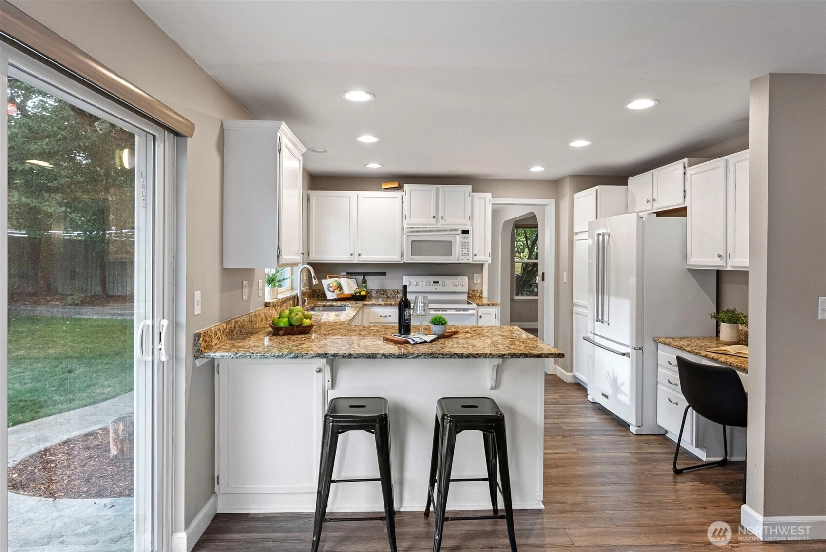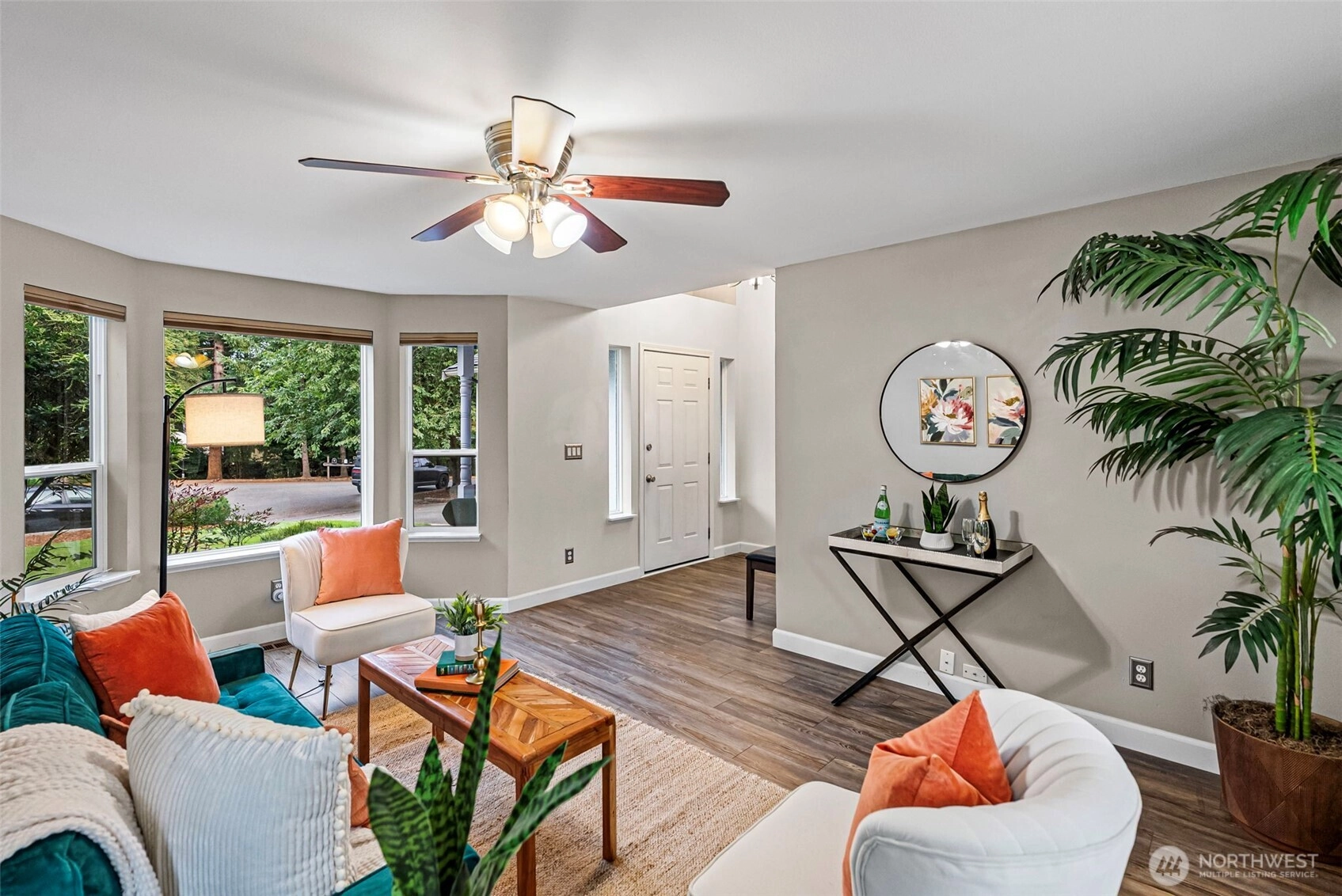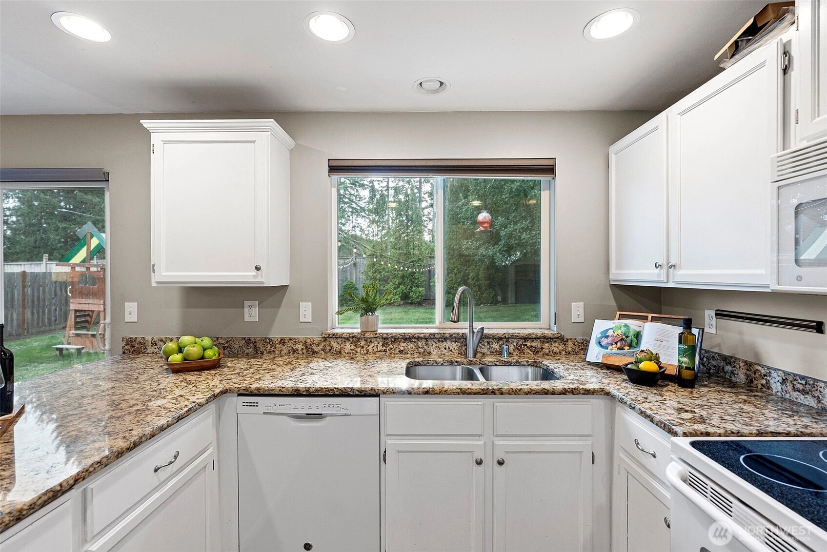 Welcome to this beautifully maintained, move-in ready 3-bedroom, 2.5-bath home nestled on a spacious 0.25-acre lot in a quiet cul-de-sac. Offering 1,899 sq ft of comfortable living space, this home features a cozy wood-burning fireplace in the living room, a primary suite with heated floors and a jetted soaking tub, and a well-appointed kitchen with granite countertops. Enjoy outdoor living in the fully fenced backyard, complete with a patio, two storage sheds, string lighting, and a sprinkler system. Stay cool in the summer with a heat pump. Located in the heart of Ridgetop with easy access to Silverdale’s shopping, dining, schools, and other amenities.