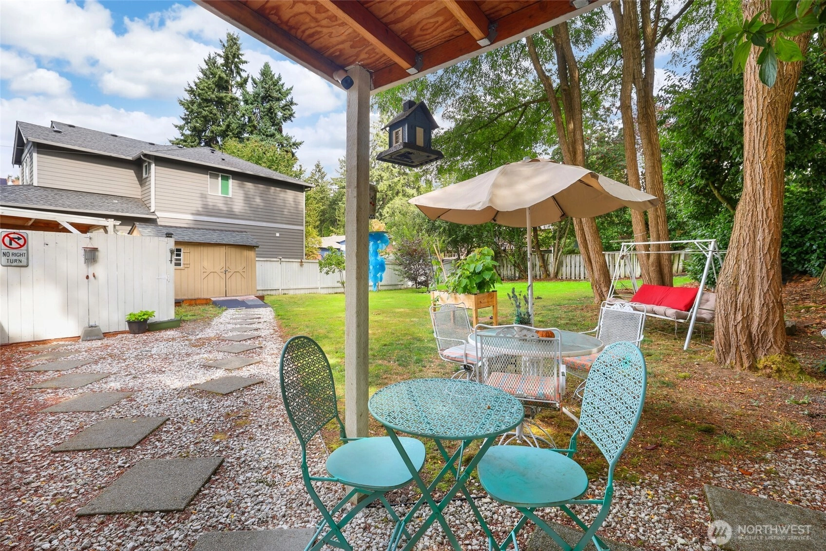 Step inside this charming University Place rambler! Move-in ready 2 bed, 1 bath home features a modern kitchen with stainless steel appliances and solar panels for energy savings. Stay cozy year-round with a ductless mini-split system. The beautifully landscaped front yard and private, spacious fenced backyard are perfect for entertaining, gardening, or enjoying a sunny afternoon under apple, pear, cherry, and plum trees. Additional perks include a 2-car carport and handy storage shed. Just minutes from shopping, dining, waterfront adventures, and Hwy 16, this home blends comfort, charm, and a lifestyle full of fun and convenience—your perfect slice of Pacific Northwest living awaits!