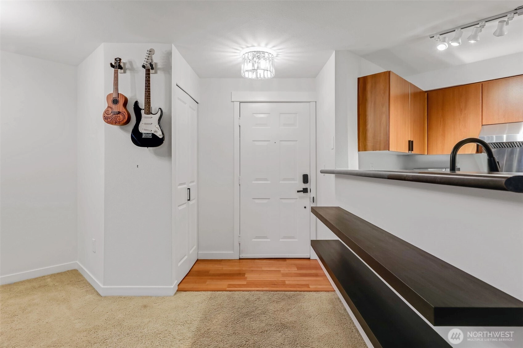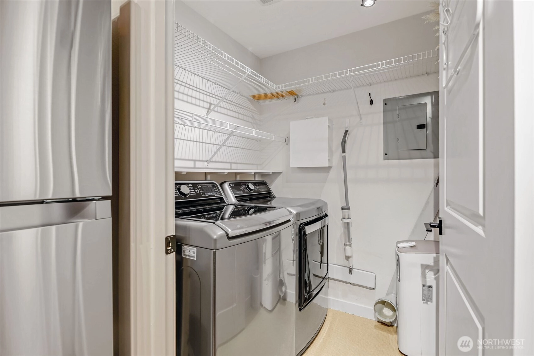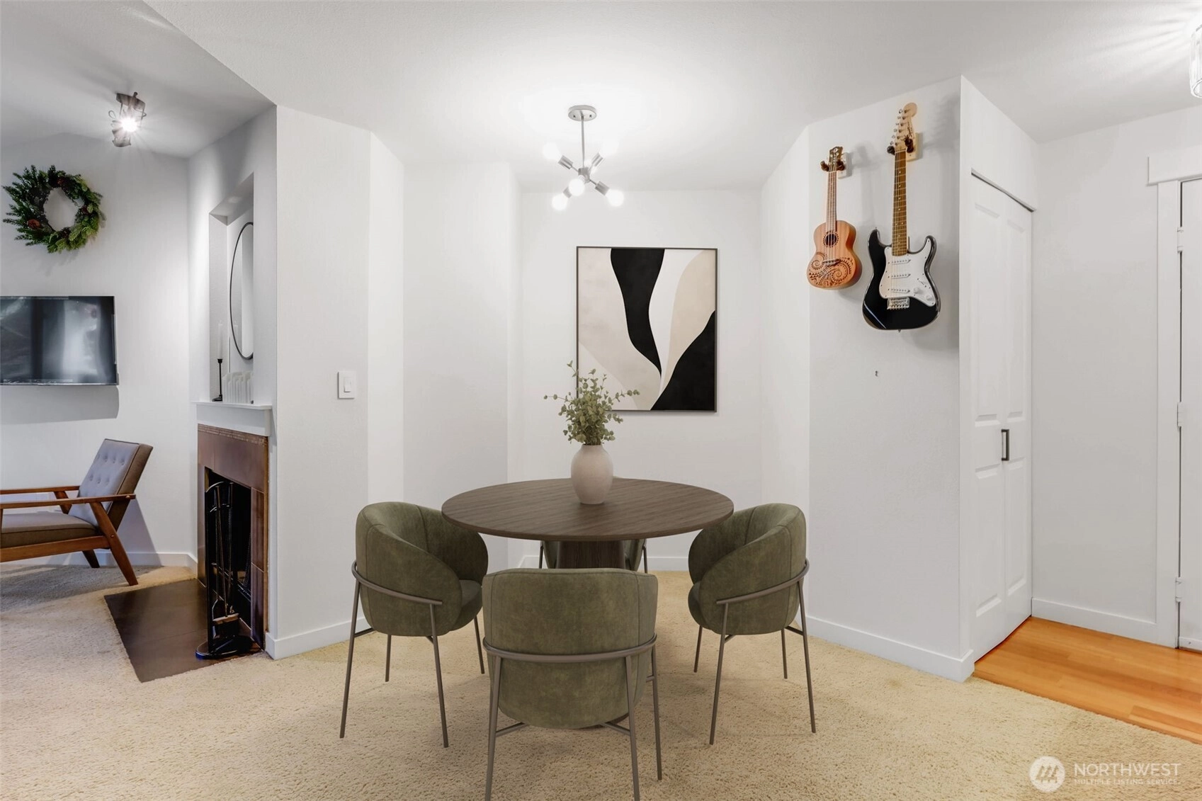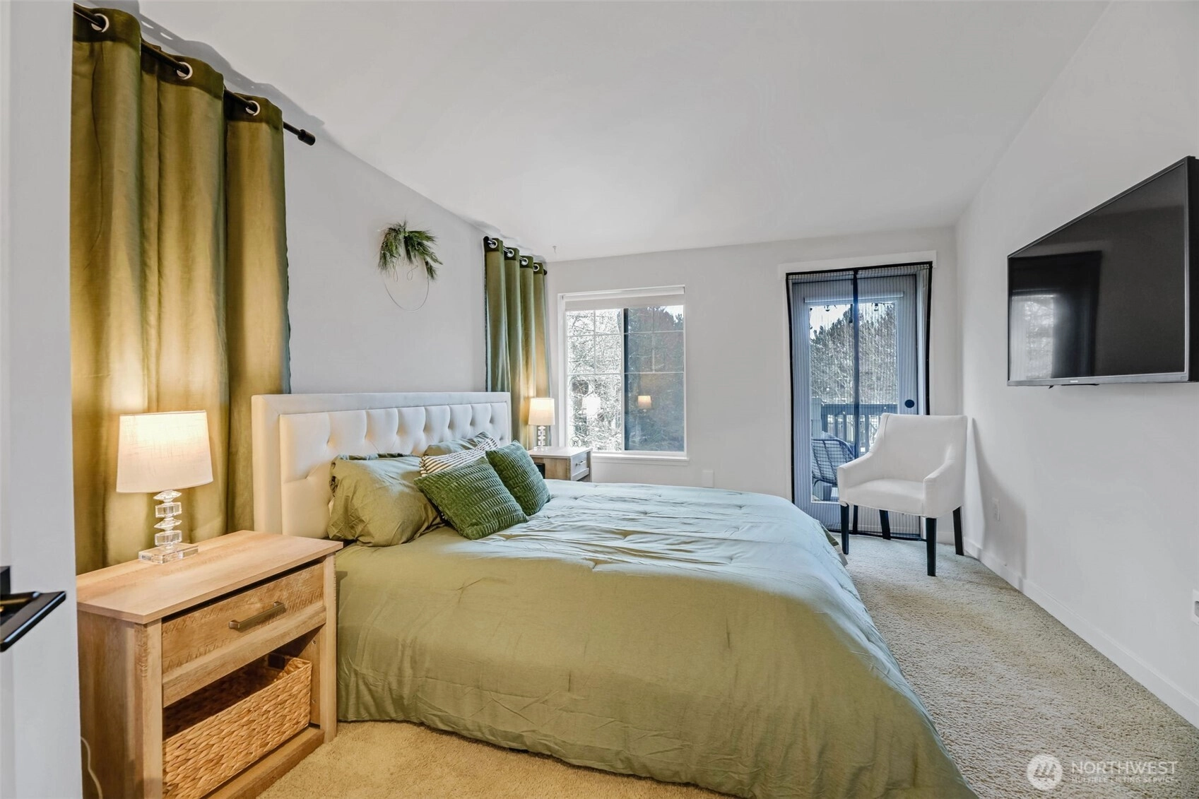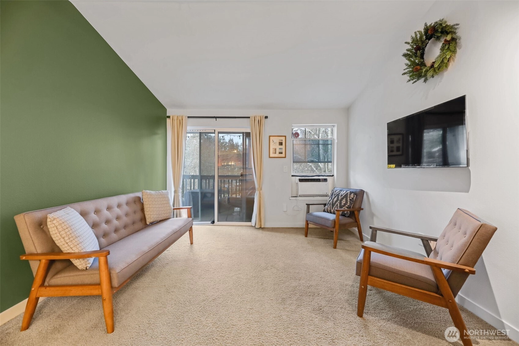 Discover comfort and convenience in this top-floor corner condo at Trail Walk! Vaulted ceilings and a cozy wood-burning fireplace create a warm, inviting living space, while the private deck offers a peaceful retreat. The updated kitchen features modern appliances, stylish finishes. The spacious bedroom fits a king bed, includes a walk-in closet, and provides direct deck access. Enjoy in-unit laundry, ample storage, and secure garage parking w/Elevator. Smart-home features add ease to everyday living. Just steps from parks, shopping, dining, and the Burke-Gilman Trail, plus access to a clubhouse with pool, year-round hot tub, and fitness center. A move-in ready home in a prime location—don’t miss this opportunity!