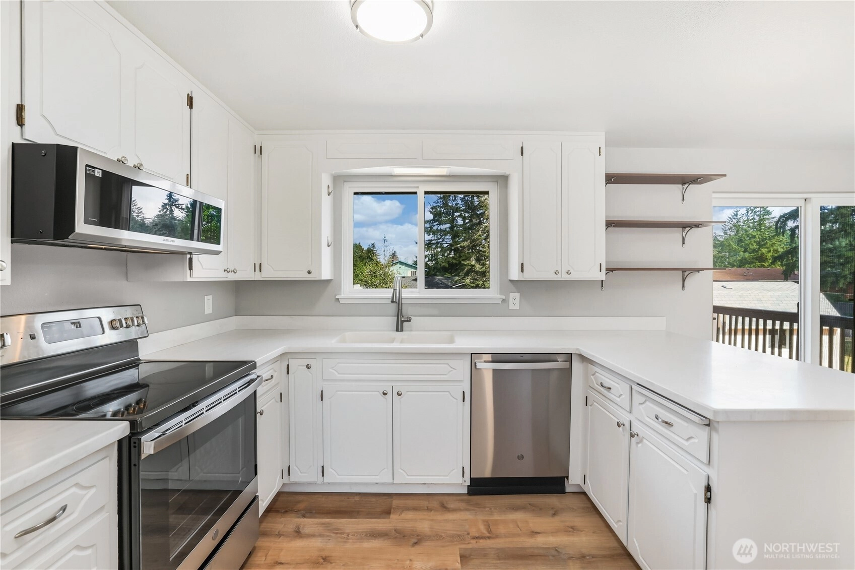Welcome home to this fully remodeled 3-bed, 3-bath wonderful Spanaway property! This home sits on a spacious .26-acre corner lot w/ RV parking. Thoughtfully updated throughout in 2022, enjoy a new HVAC, heat pump water heater, SS appliances, LVP flooring, fresh new gutters & whole house interior & exterior paint! A brand-new septic system installed September 2025 for worry-free living. The main upper level offers a bright living room, modern kitchen, 3 beds & full bath including a primary suite w/ 3/4 bath! Lower level features a large family room w/ 3/4 bath—perfect for entertaining or relaxing. Expansive yard provides endless possibilities for gardening, play & outdoor gatherings. Move-in ready & close to JBLM, amenities & schools!