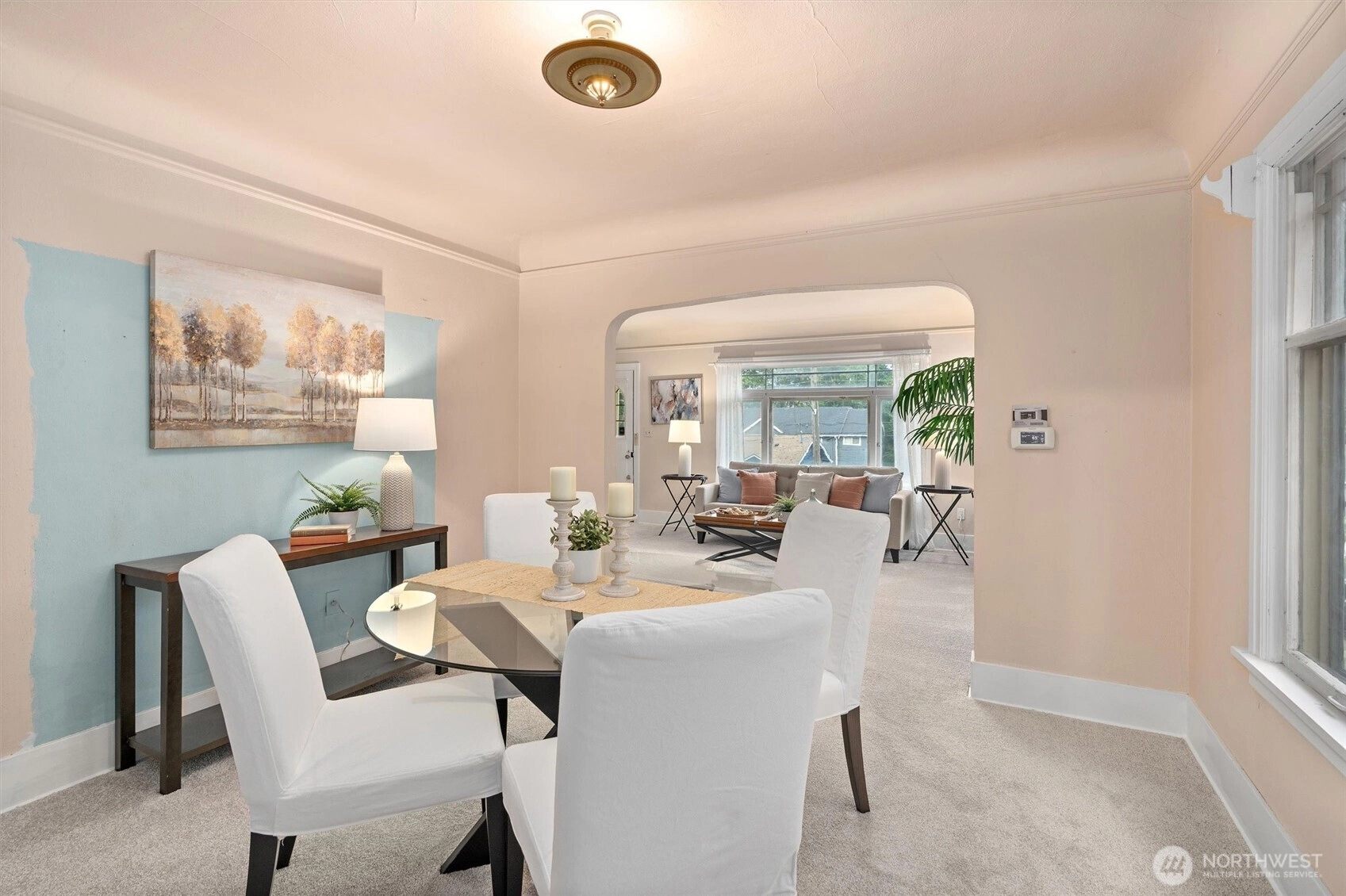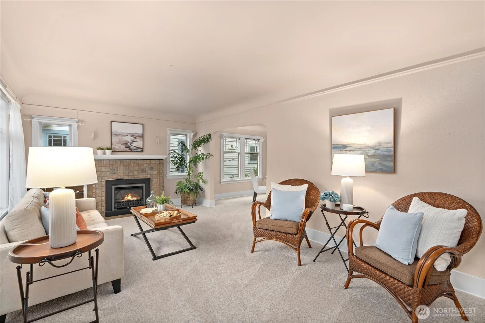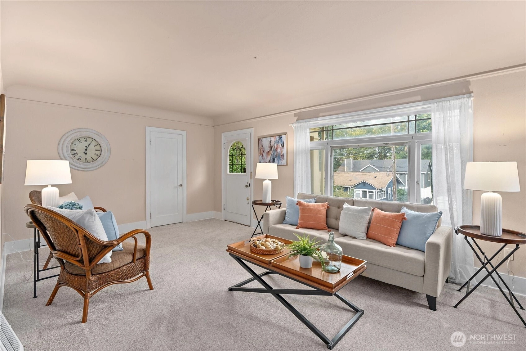 1st time on the market for this Craftsman Bungalow exuding charm and potential! The floor plan features a main floor living room with gas fireplace, dining room, kitchen with breakfast nook, bedroom and full bathroom, plus two spacious bedrooms upstairs. The 900sf unfinished basement has exterior access, ~7ft ft ceilings, and excellent ADU potential. Alley access with room to add a garage. NR3 Zoning. 6th Ave offers a community orchard. Ideal location – just a 10-minute stroll to Greenlake and its parks and trails, with high walk and bike scores, less than 1 mile from Tangletown, close to Wallingford, the University District, the Light Rail, restaurants, PCC & Whole Foods, cafes, shops, near I-5, and within easy reach of all Seattle offers.
