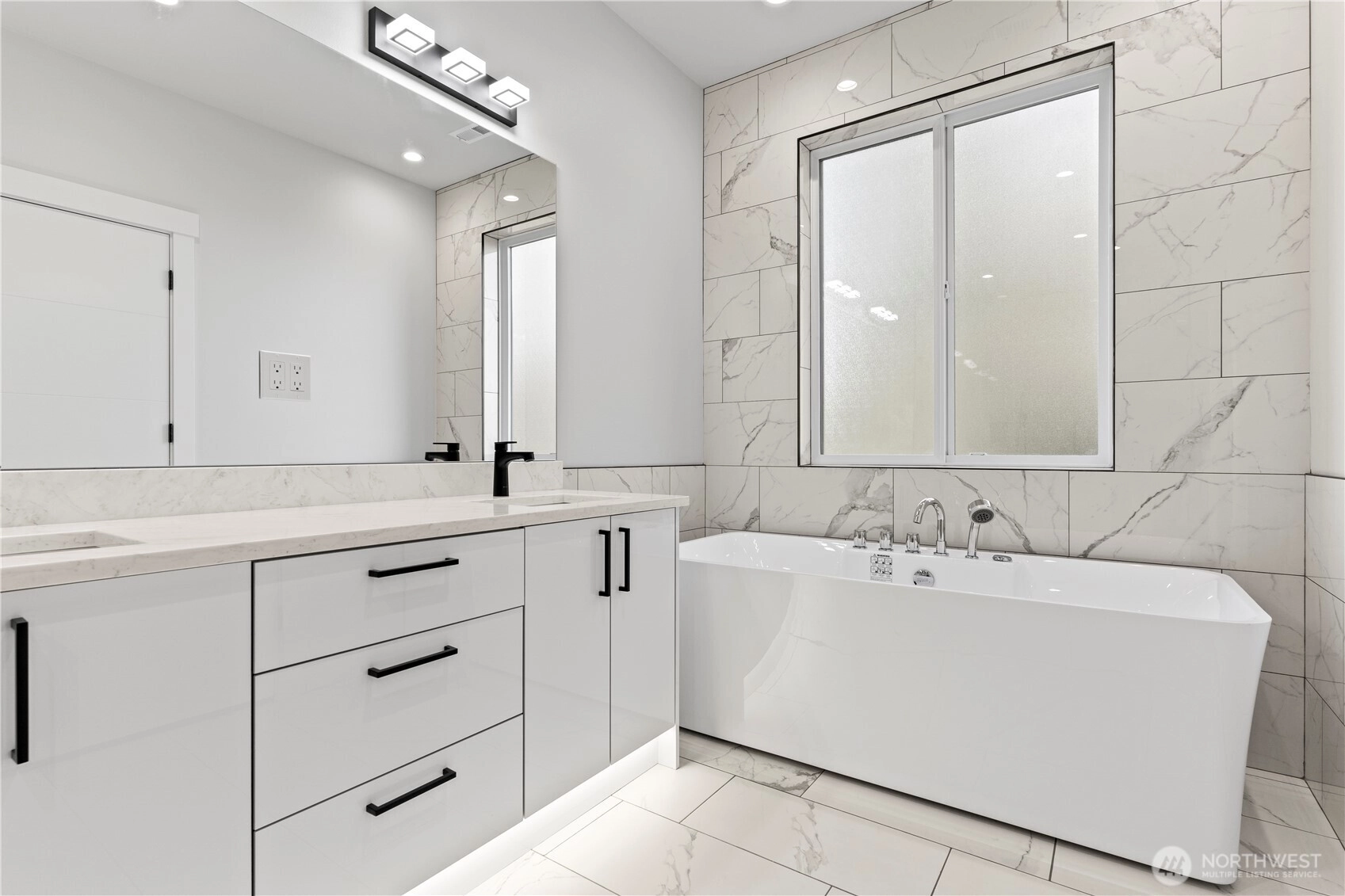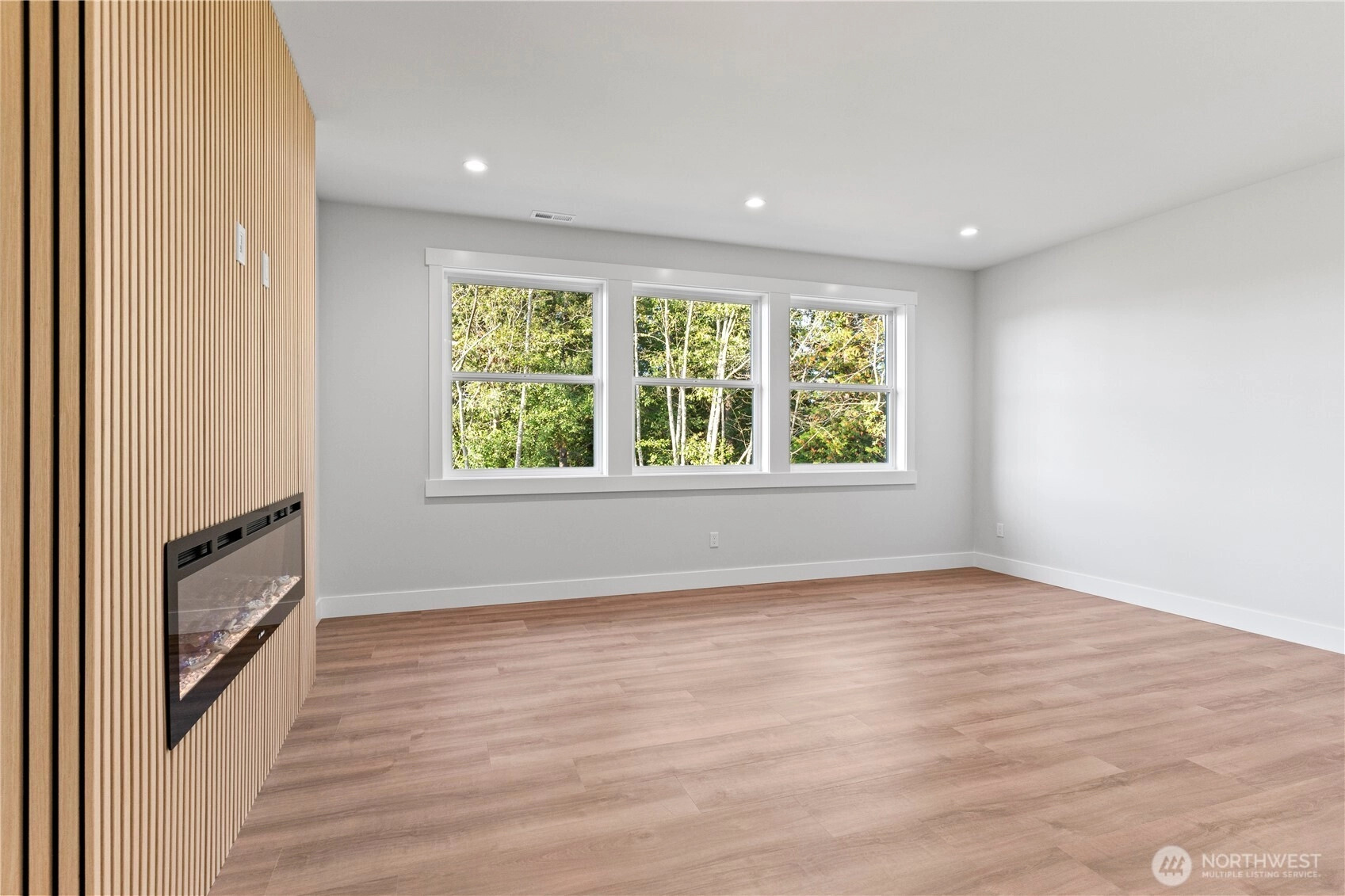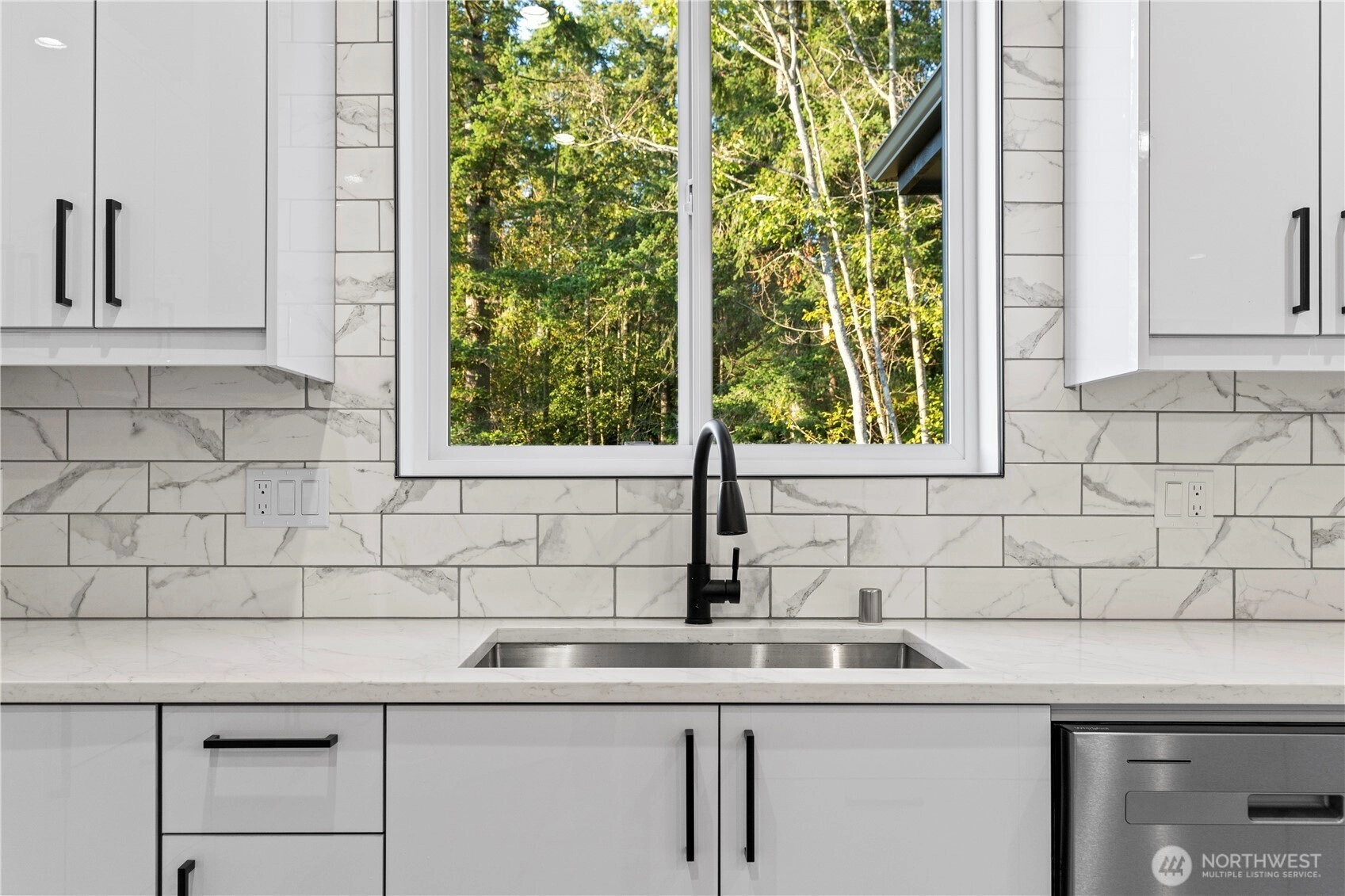 Discover this newly constructed 4-bedroom, 3-bath home just a 10-minute walk from Birch Bay, designed for both style and function. The kitchen highlights quartz countertops, premium Frigidaire appliances, and a dual-column refrigerator/freezer, while two living rooms provide versatile gathering spaces. The primary suite features a soaking tub and tiled shower, complemented by two additional full baths for convenience. An upstairs laundry room adds everyday ease. Outside, a covered patio and a private backyard are framed by nature, with no homes behind or to the east. Located in a golf-cart friendly community and equipped with an efficient heat pump and hybrid electric water heater, this home delivers comfort, privacy, and timeless design.