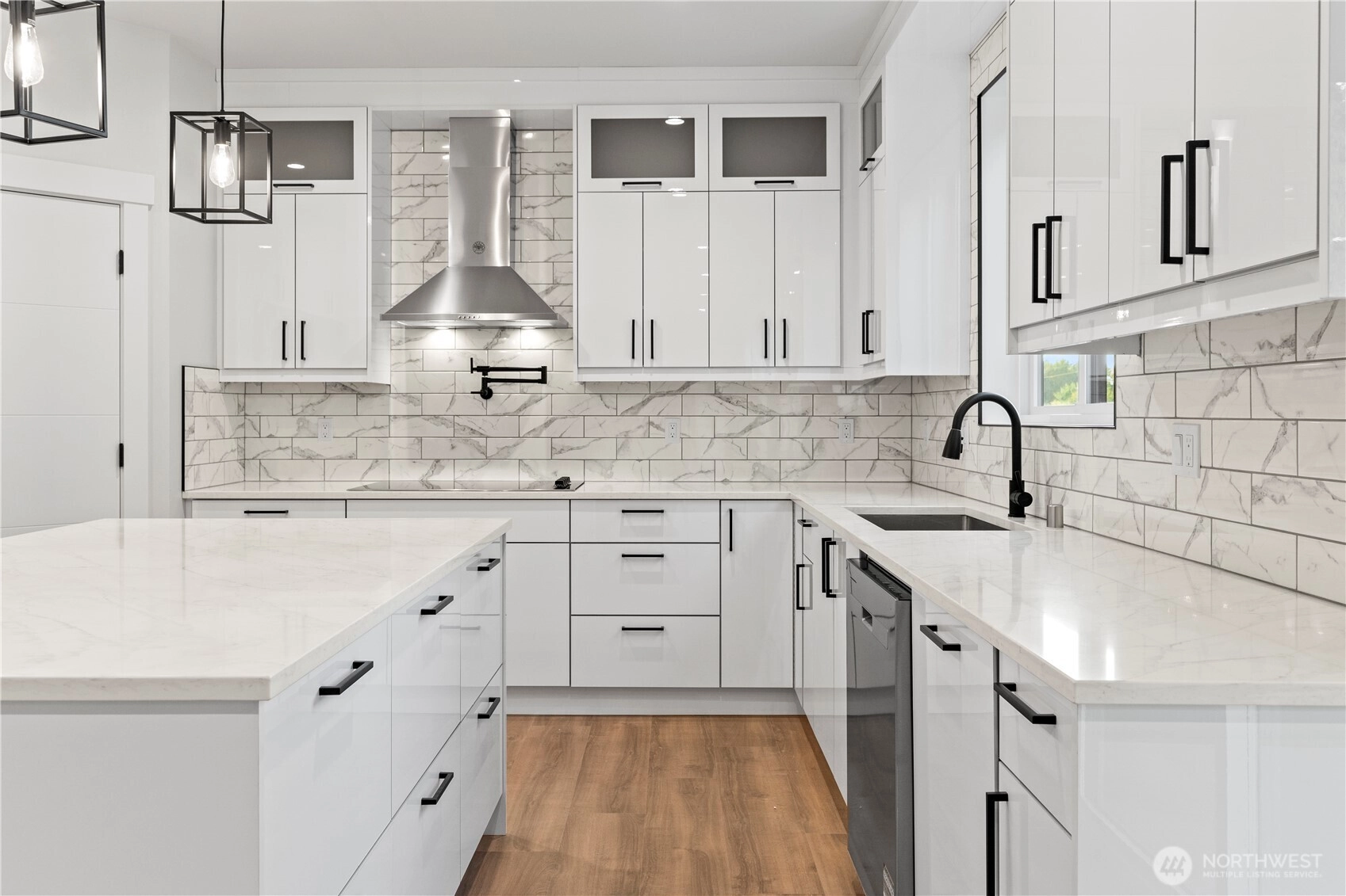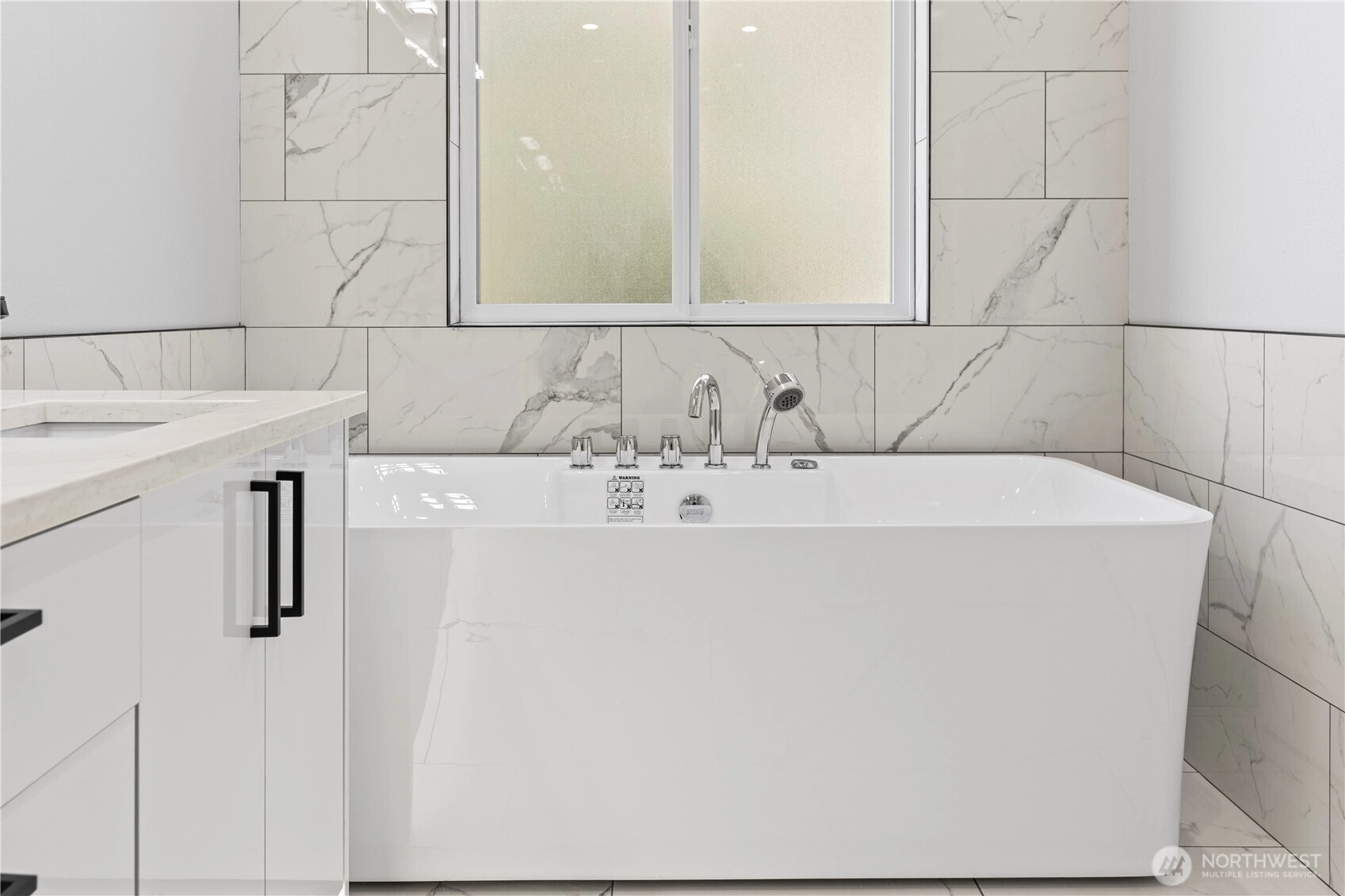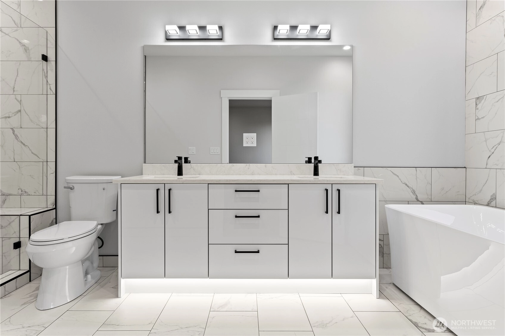 Discover this newly constructed 4-bedroom, 3-bath home just a 10-minute walk from Birch Bay, designed for both style and function. The kitchen highlights quartz countertops, premium Frigidaire appliances, and a dual-column refrigerator/freezer, while two living rooms provide versatile gathering spaces. The primary suite features a soaking tub and tiled shower, complemented by two additional full baths for convenience. An upstairs laundry room adds everyday ease. Outside, a covered patio and a private backyard are framed by nature, with no homes behind or to the east. Located in a golf-cart friendly community and equipped with an efficient heat pump and hybrid electric water heater, this home delivers comfort, privacy, and timeless design.