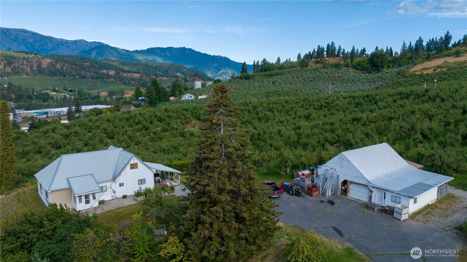 10.18-acre investment opportunity with stunning views of the Upper Wenatchee Valley and Cascade Mountains. Currently planted in pears with irrigation water shares, plus a mix of apples, cherries, peaches, and plums near the farmhouse. Features an older home and shop with potential for remodel or new construction. Explore options to subdivide or sell off lots to help fund improvements while preserving incredible valley views. Located in Peshastin—just 4 miles from Leavenworth and 19 miles from Wenatchee. Endless residential and agricultural possibilities!