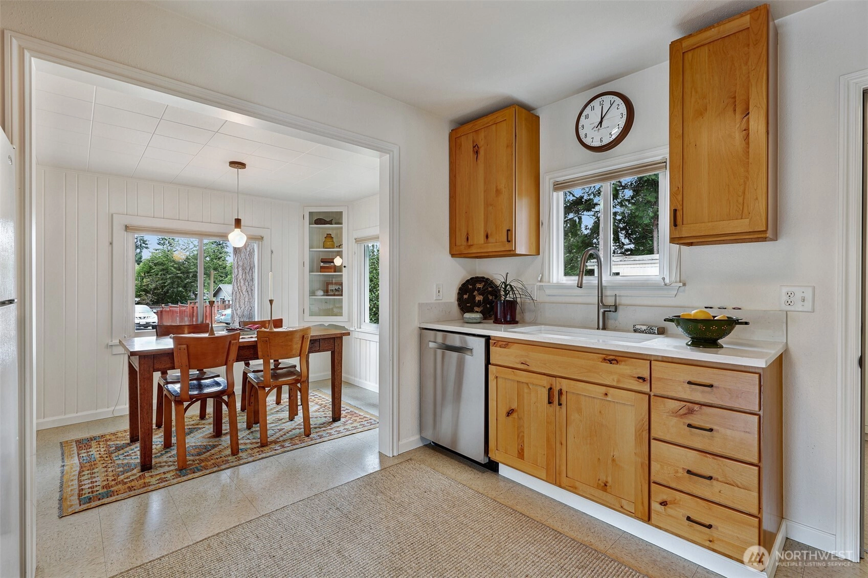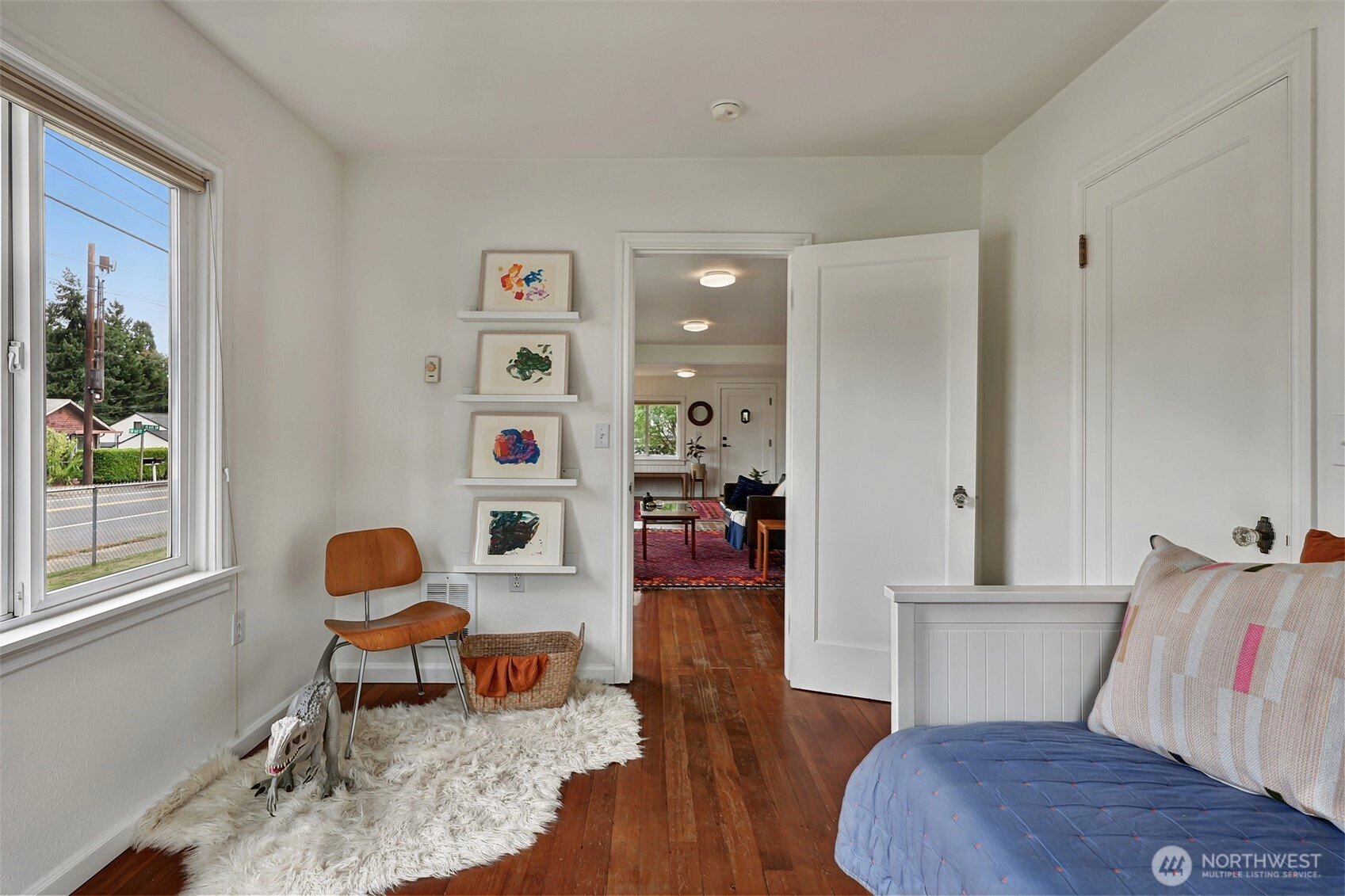 Full of heart and history, this 1937 Craftsman bungalow welcomes you with light, warmth, & character. Original fir floors, built-in buffet, & glass-front cabinets add personality - while the large kitchen & bright living spaces invite connection. Upon entry, the open space is flexible & bright while the two bedrooms, den, updated bath, A/C & mudroom offer everyday ease. You will appreciate the many places you can store your belongings. Outside, enjoy the large fenced corner lot, covered patio for entertaining, & 2-car garage with shop or DADU potential. Over $15k of recent work including new roof, clean sewer & more. This cheerful Gregory Heights gem is close to shops, restaurants, parks, schools, hospital, and freeway. Pre-inspected.