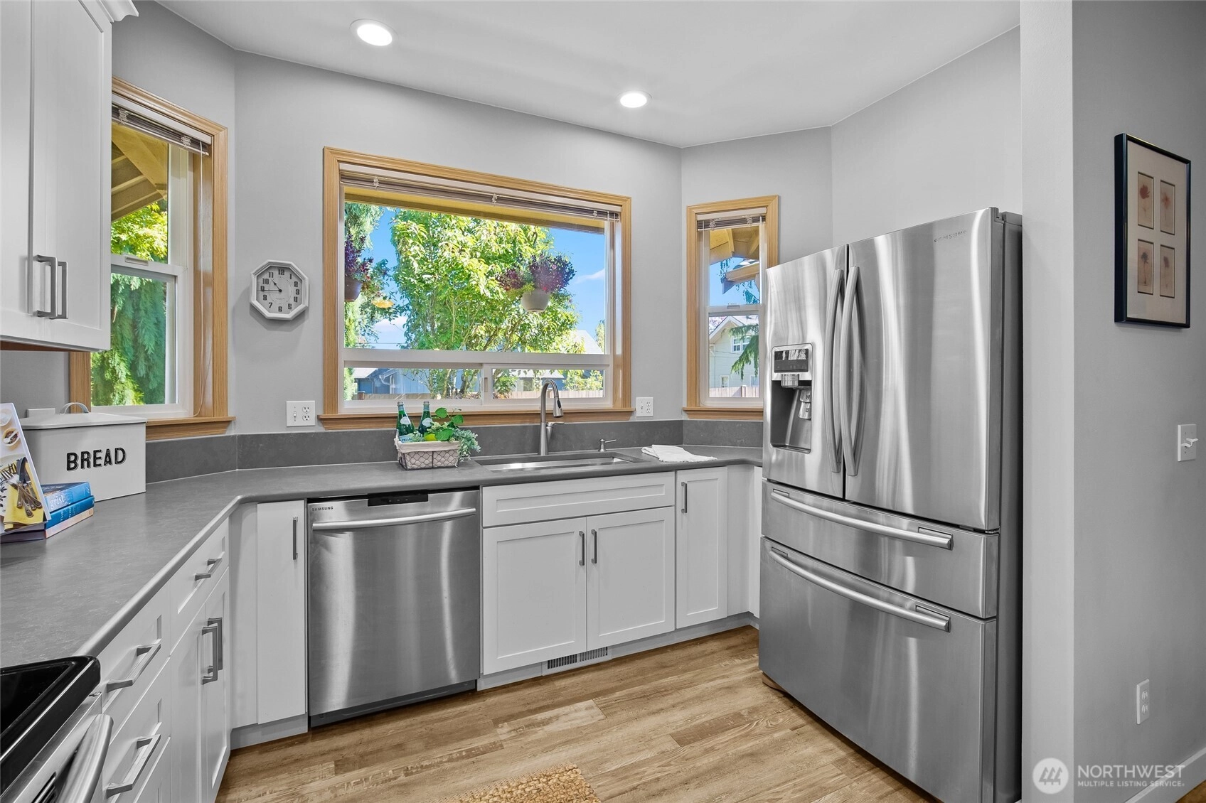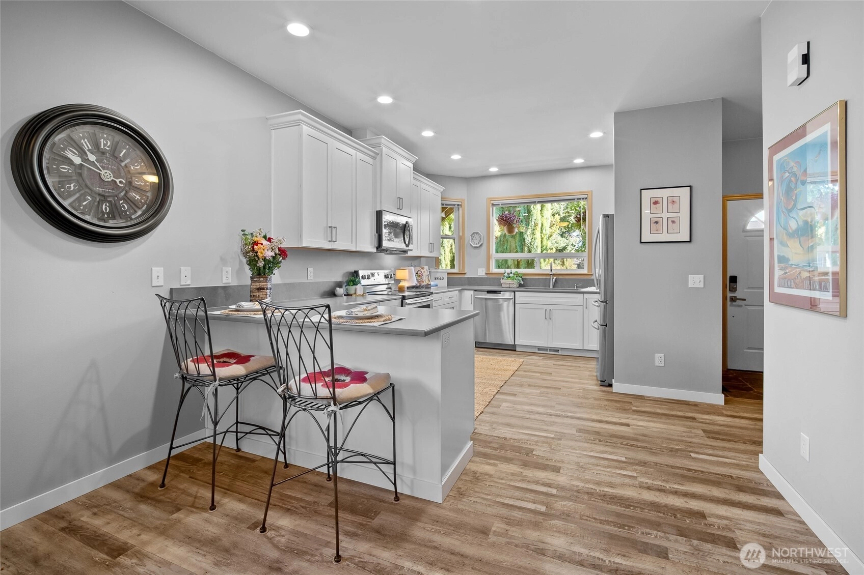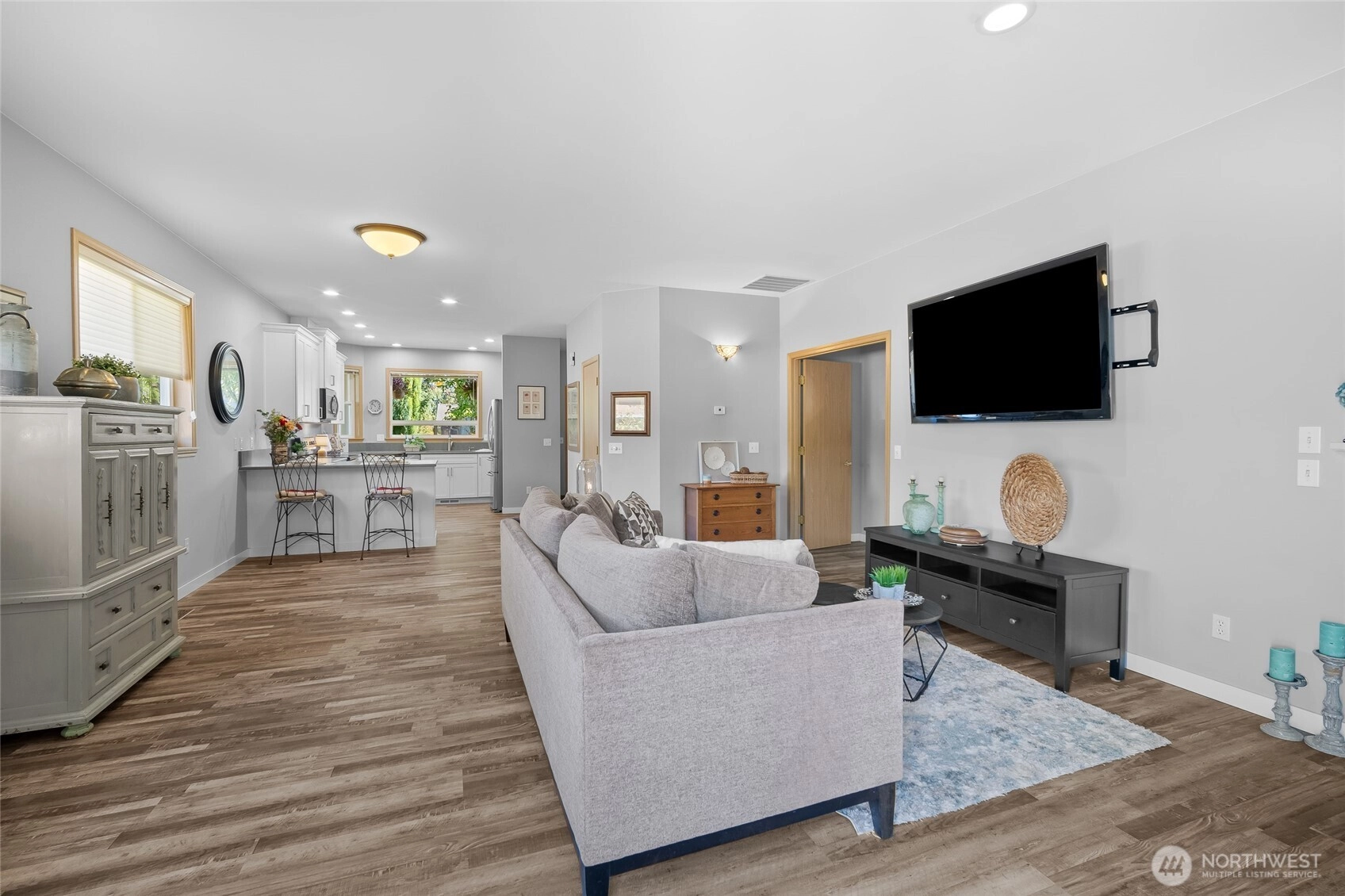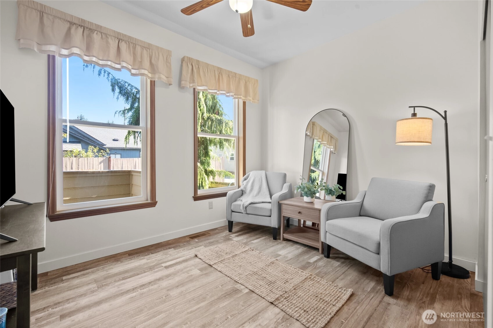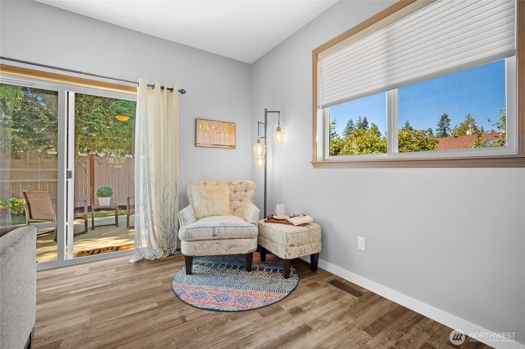 Step into this fully updated home that blends comfort, style, and privacy. Inside, the open floor plan creates a spacious feel, while the primary suite offers a relaxing retreat and the second bedroom doubles as an office or den. The kitchen shines with modern finishes. The upgraded flooring flows throughout the home for a fresh, cohesive look. A remodeled bath with walk-in shower adds spa-like ease. Outside, enjoy the large, fully fenced lot with mature landscaping, covered front porch, and back deck for entertaining. The one-car garage is extra deep with an attached storage room. An additional shed provides ample space for hobbies and tools. Conveniently close to shopping, schools, Boeing, Amazon, and freeway access. Welcome home!