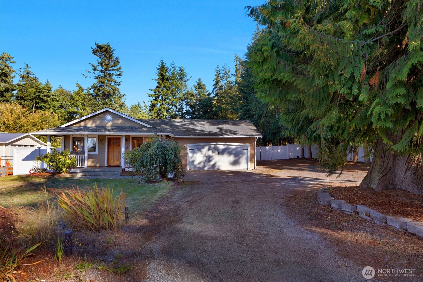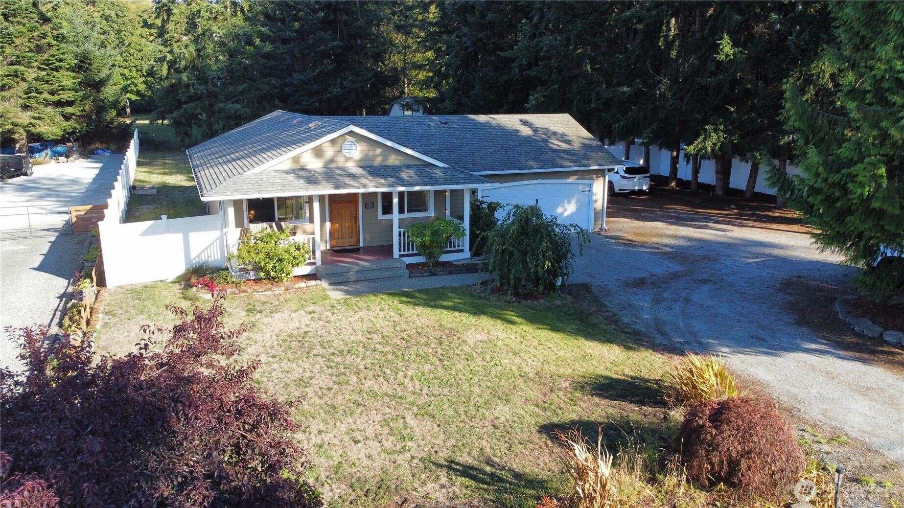 Adorable north-end Camano rambler blending comfort and style! A covered front porch entry leads to the open living, kitchen, and dining space with vaulted ceilings, a corner window filling the room with light, and thoughtful upgrades including a solid wood front door, new appliance package, and water heater. The entire home was beautifully remodeled in 2020, with a spectacular kitchen overhaul. Three bedrooms are tucked away for privacy, paired with two beautifully remodeled baths. The backyard is ready for gatherings with full vinyl fencing, a cozy firepit, and storage shed. All this in a peaceful community near beaches, shopping, and sweeping island views—an exceptional place to call home.