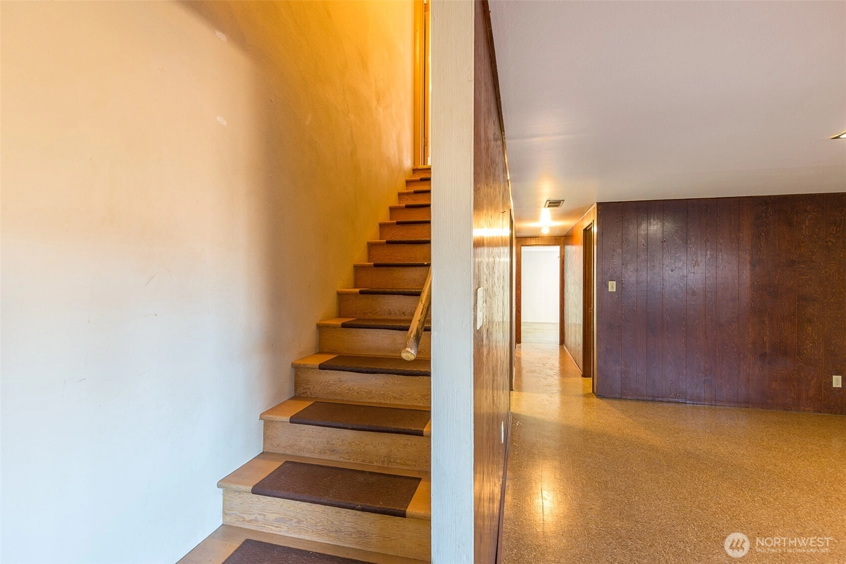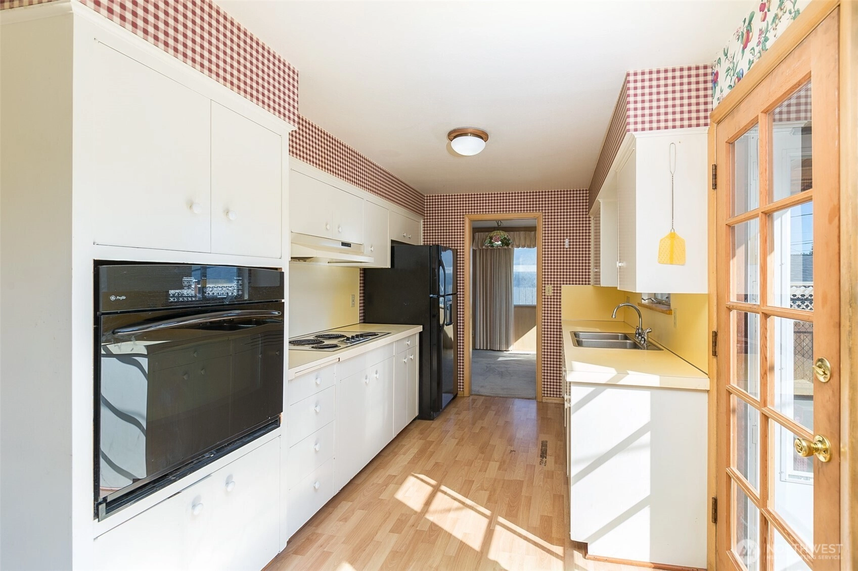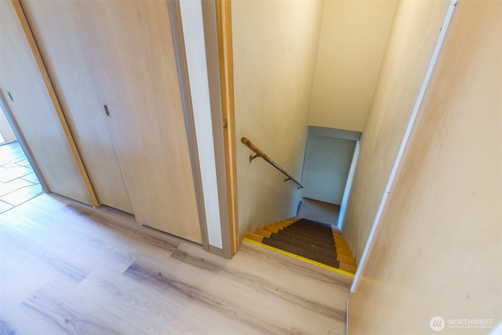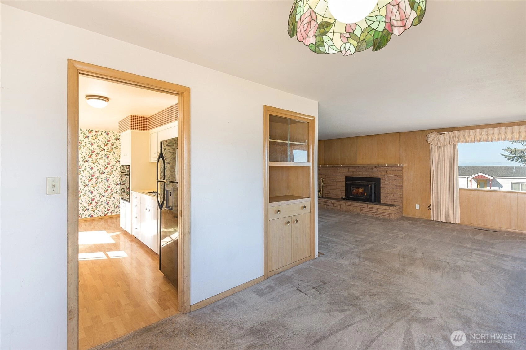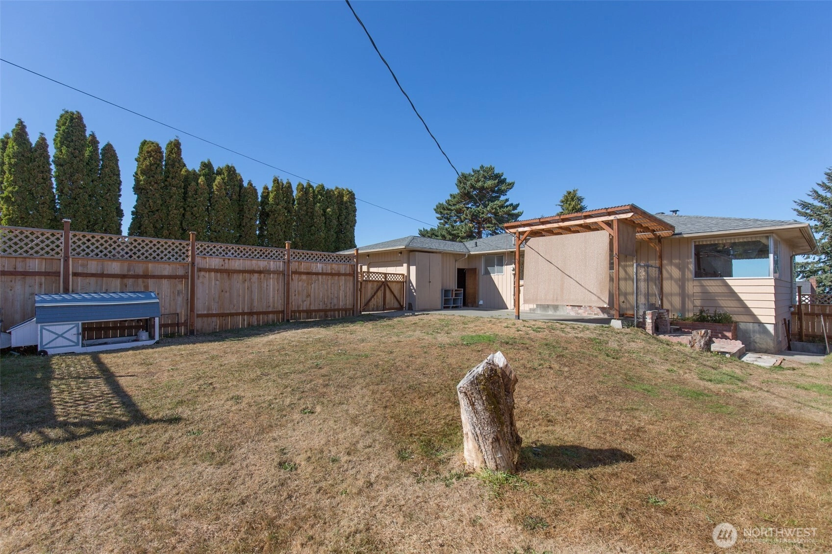 This spacious 1959 home is located in the desirable Lauridsen neighborhood and offers sweeping views of the Strait of Juan de Fuca to the north and the majestic Olympic Mountains to the south. Brand new 30-year roof installed. The main level features a functional layout including a kitchen, dining area, primary bedroom, a full bath, and a guest bedroom. A convenient laundry chute from the primary bath leads directly to the large utility room downstairs. The lower level includes a bedroom, a large living room, two additional rooms perfect for an office or hobby space, and a ¾ bath. Wood stoves on both levels provide cozy warmth throughout the seasons. Outside, a gazebo offers a shaded retreat where you can relax and enjoy the mountain views.