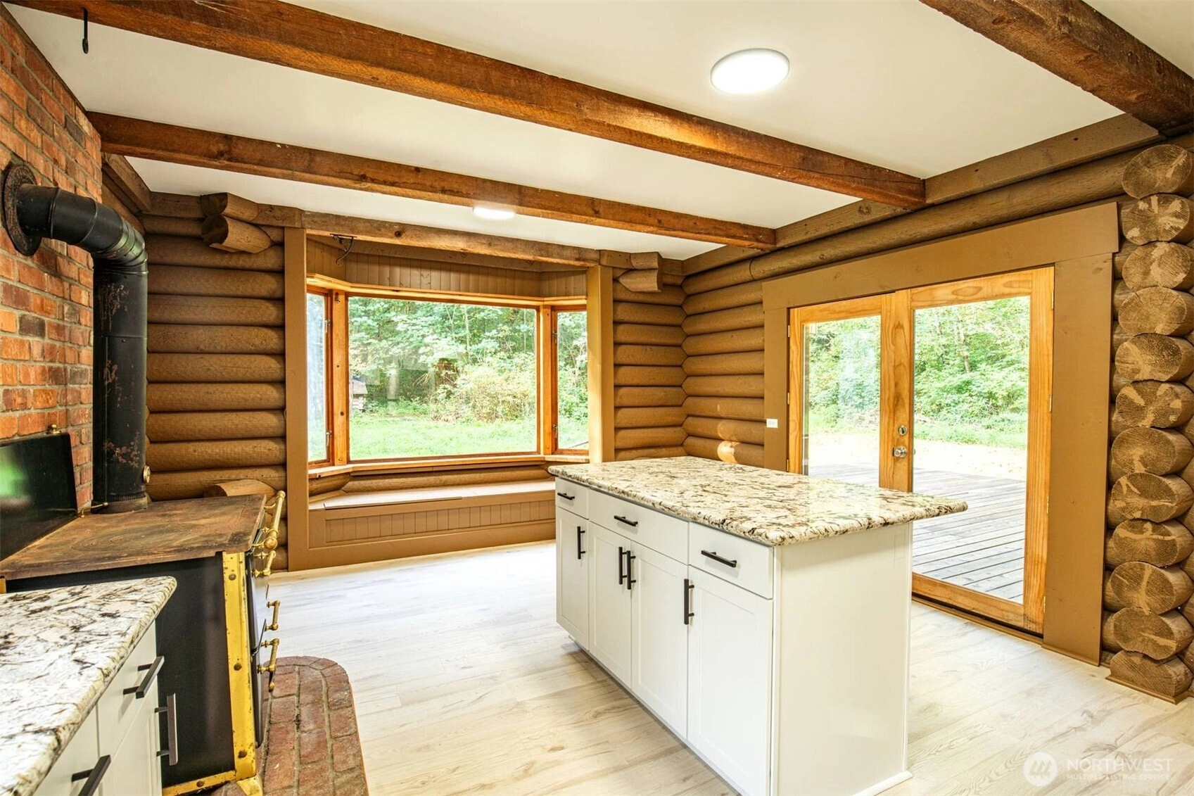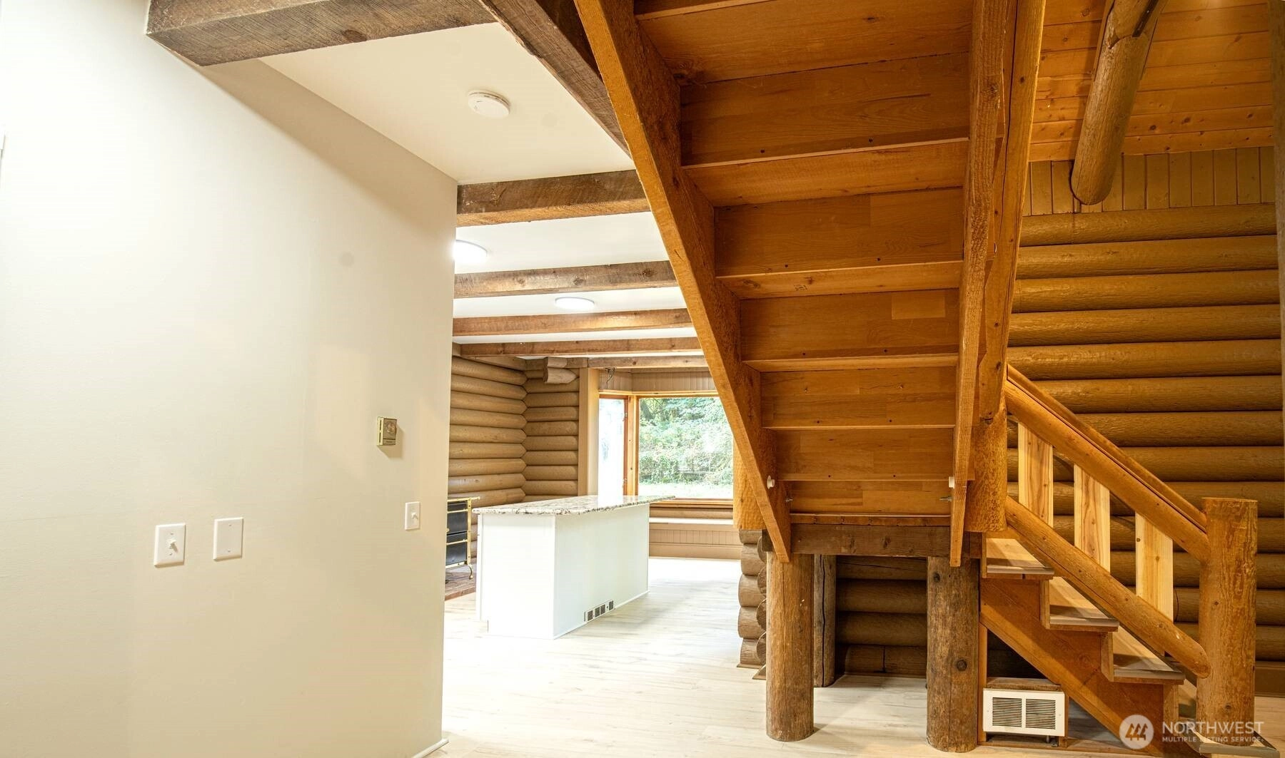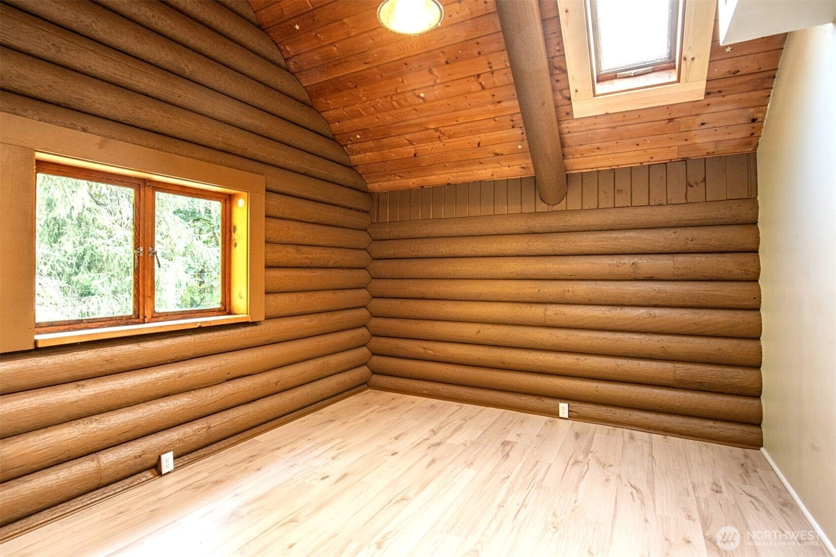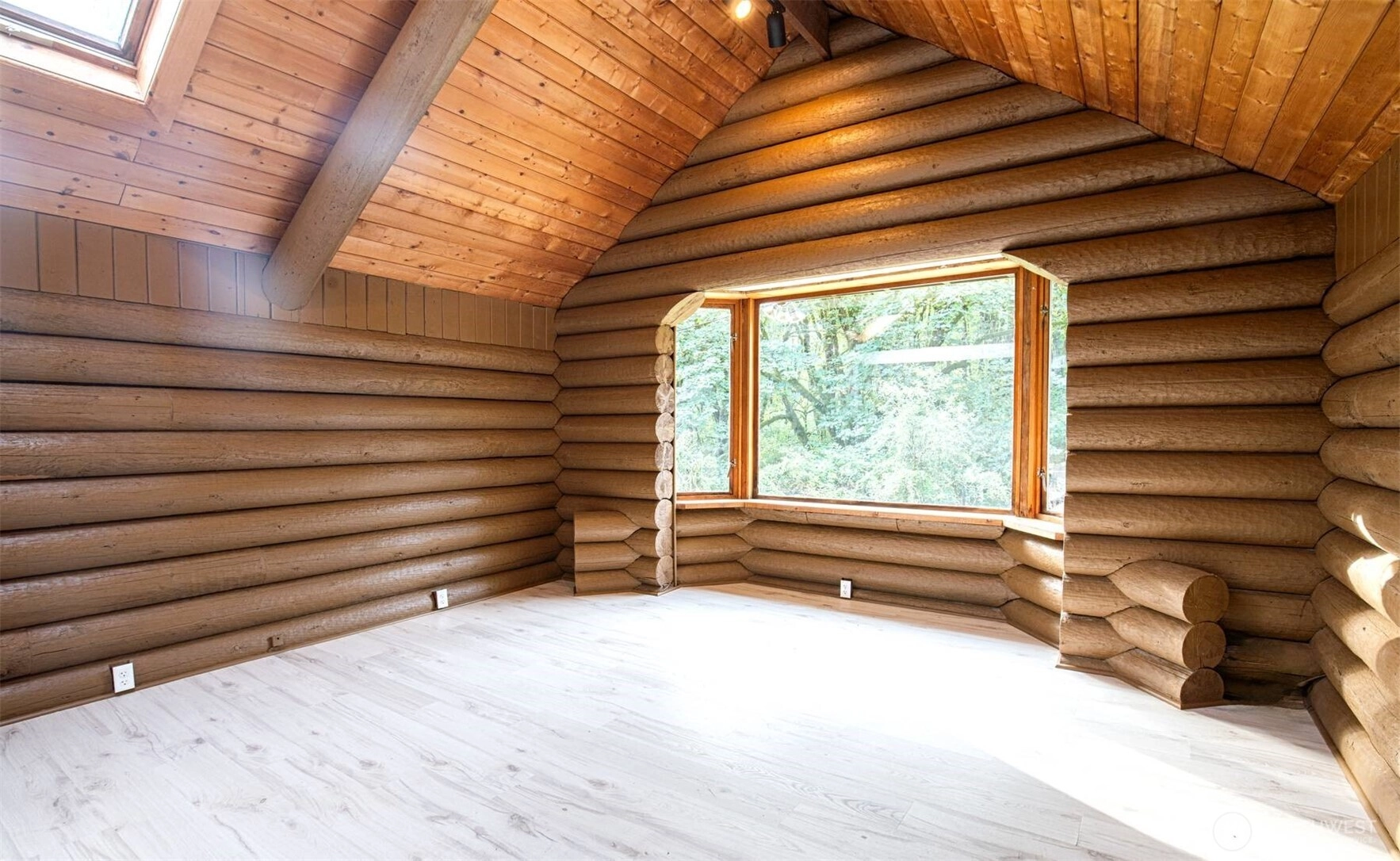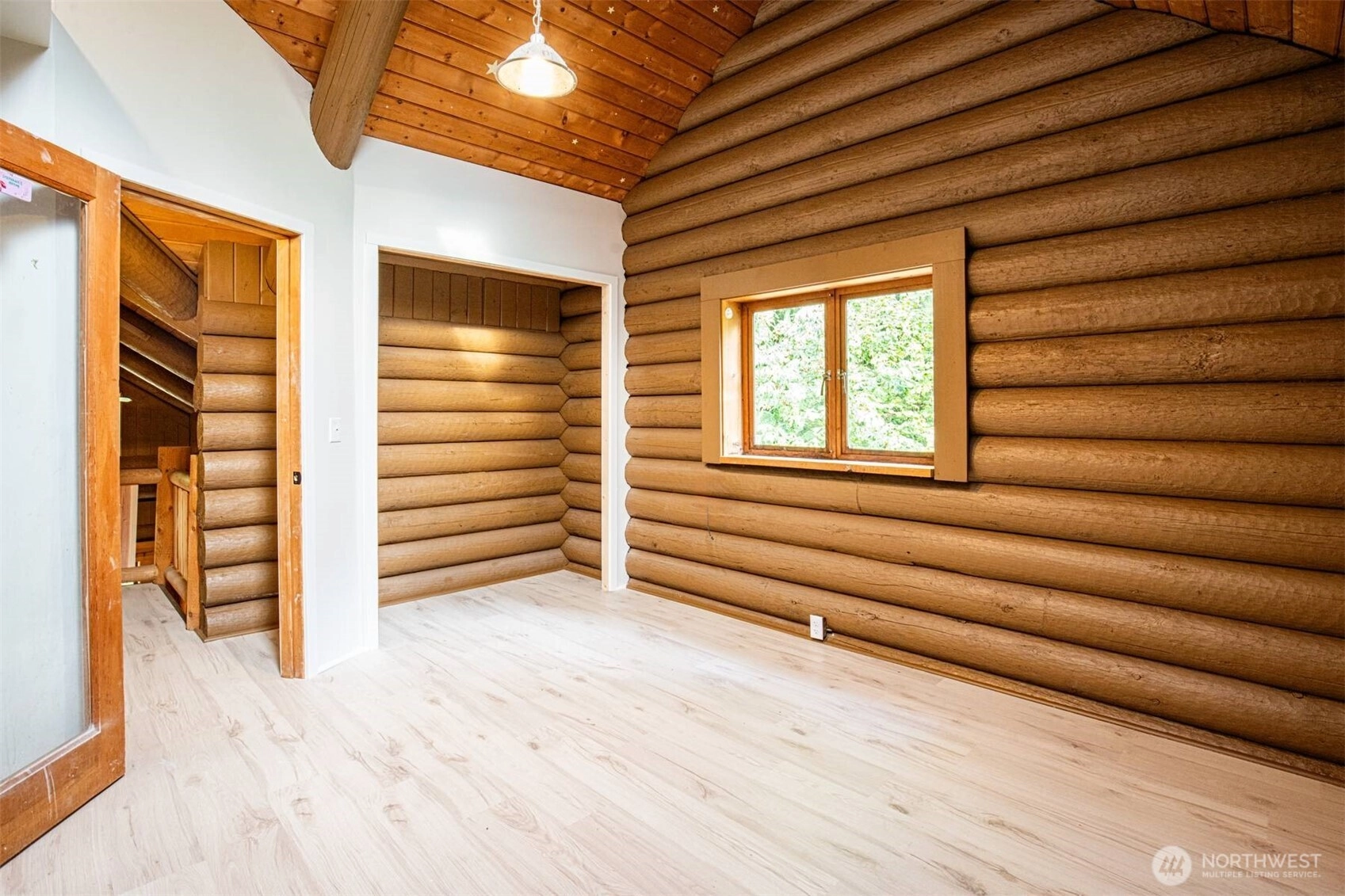 Discover this move-in ready 2-bed, 2-bath log cabin on 3.8 private acres, a dream for outdoor enthusiasts! Surrounded by nature, it features a detached two-car garage with space for all your gear. Inside, enjoy an updated kitchen with granite countertops, a large island, and durable LVP flooring. The living room offers a warm fireplace and abundant natural light. Step out from the dining room onto a private deck, perfect for relaxing or entertaining. The main level includes a walk-in shower and spacious utility room for convenience. Upstairs, two bedrooms offer peaceful, wooded views. A perfect blend of comfort and nature, ready for your next adventure.