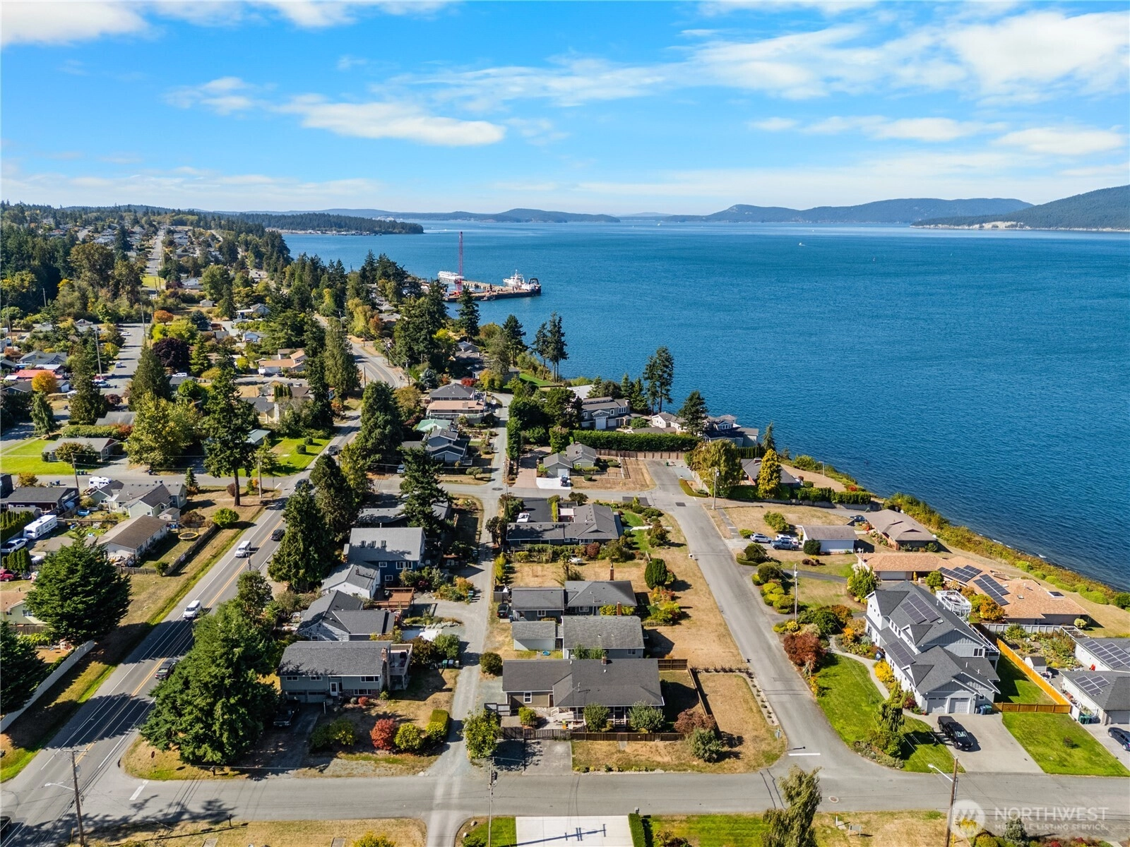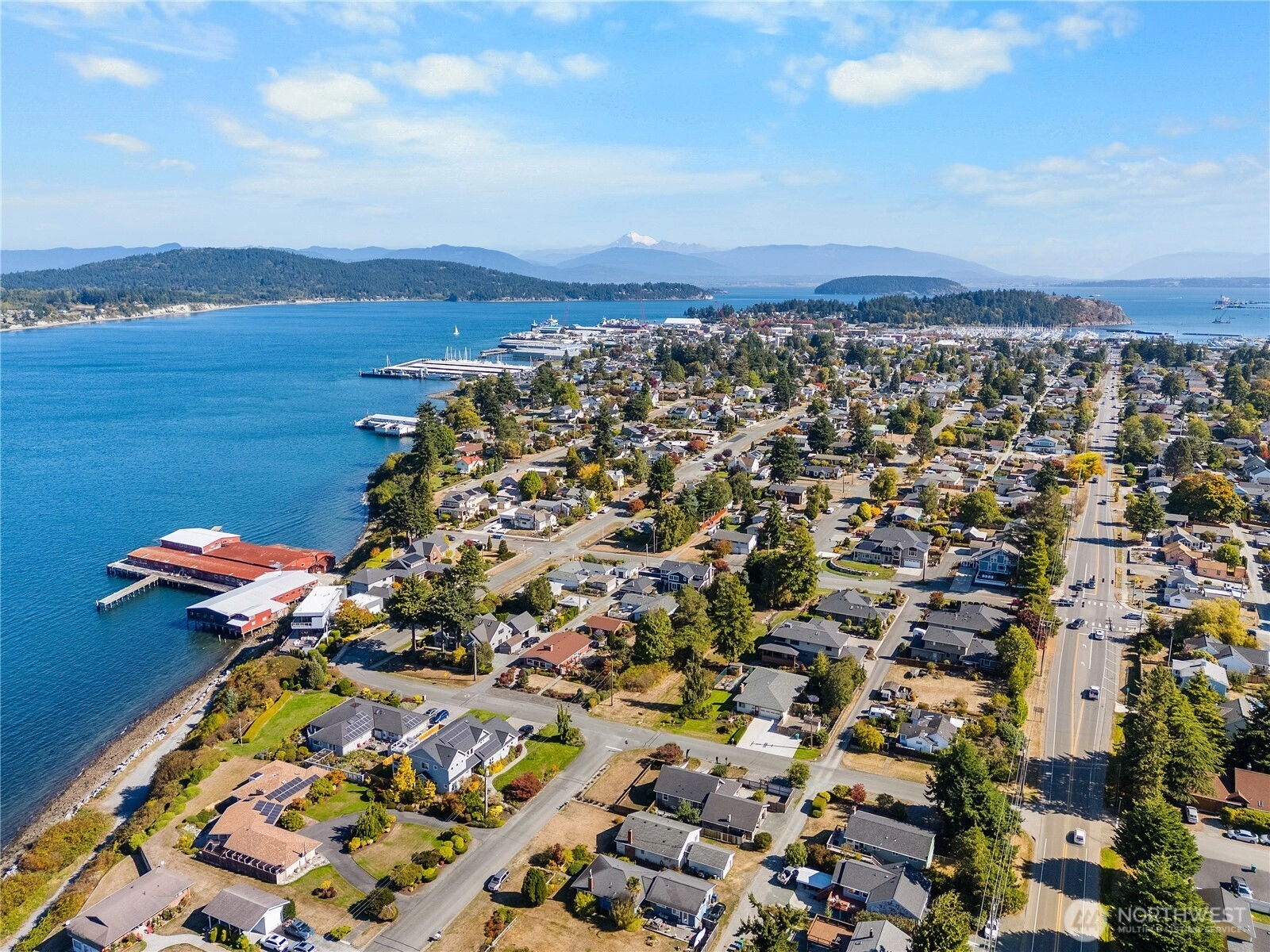 Enjoy incredible water views from this 3 bed & 2.5 bath Old Town home set on a spacious corner lot with room for an ADU. The main floor offers a bright living area with built-in seating and a work nook, plus a stylish kitchen with stainless appliances, granite counters, and island dining. The primary suite with walk-in closet and full bath is conveniently on the main level, while two bedrooms sit upstairs. A finished basement adds versatility with a full bath, laundry, storage, and space for a gym, office, or media room. Outdoor patios and deck space provide multiple spots to relax and take in the views. Two-car garage, mudroom entry, and off-street parking add comfort and convenience.