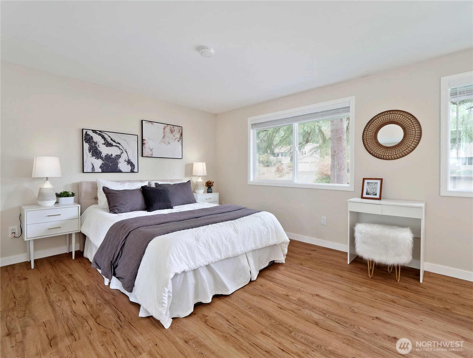 Newly priced for today’s market! Discover this beautifully maintained, pre-inspected, turn-key home tucked at the end of a quiet cul-de-sac in Bellevue’s coveted Woodridge neighborhood. Sophisticated updates include new windows, stylish LVP flooring, and a sleek modern kitchen with all-new appliances. Light-filled interiors offer 3 bedrooms, 2.5 baths, a den, and both living and family rooms with fireplaces. Enjoy a serene, fully fenced backyard with mature trees and a 2-car garage. Highly rated Bellevue schools, parks, pools, and trails nearby, with easy access to I-90, I-405, Factoria, and downtown Bellevue for shopping and dining.