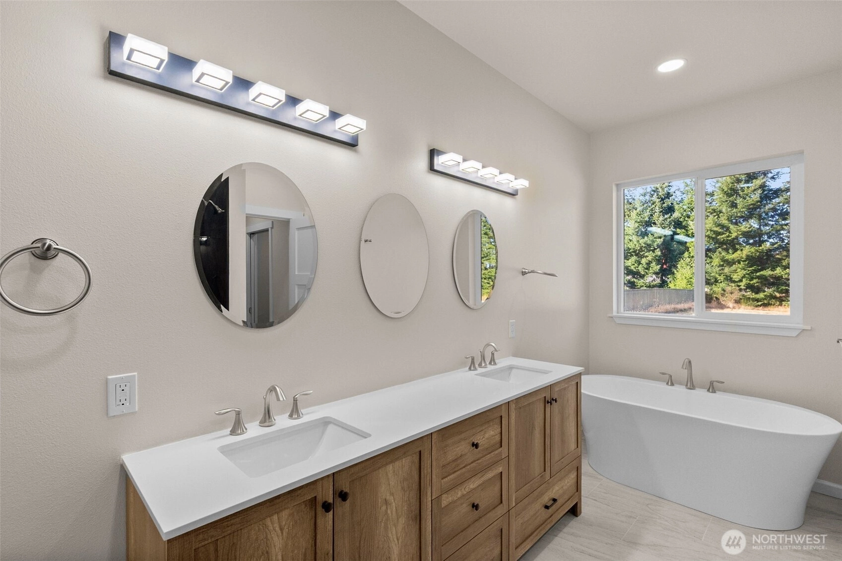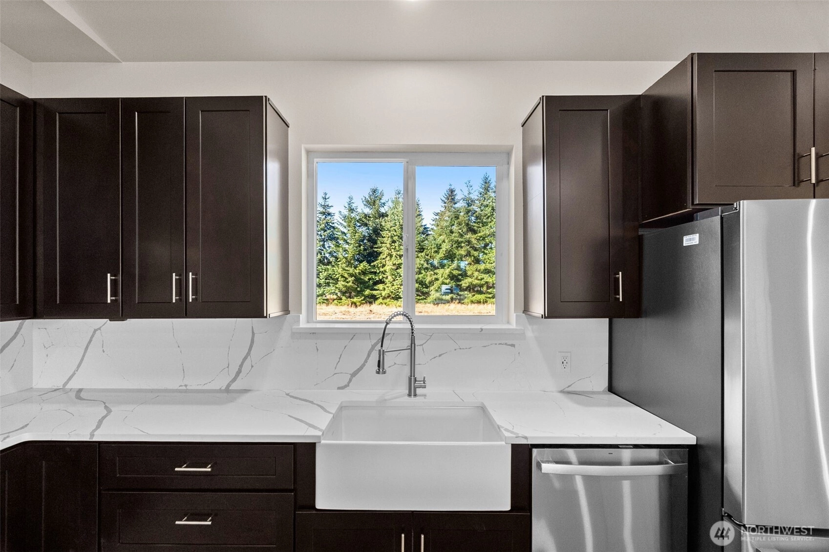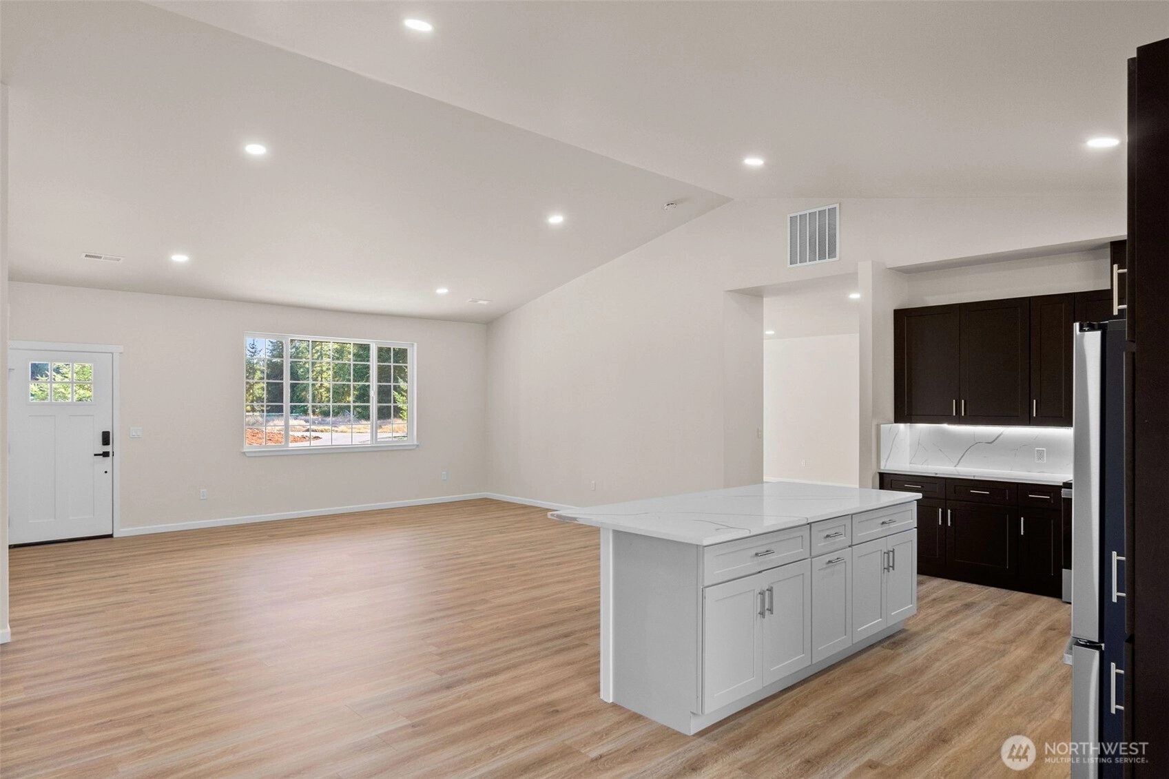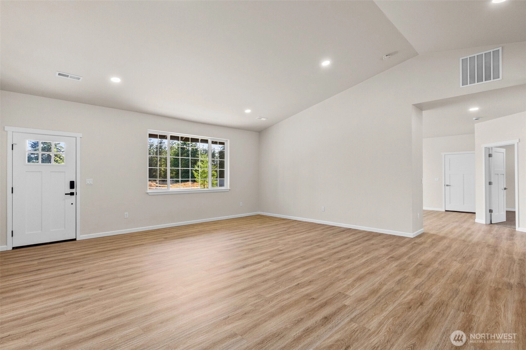 New construction in Grand Mound, move-in ready! Over an acre, loads of Privacy, and no HOA! Less than 5 min from I-5, this property includes RV-parking, and room for a 4,000Sqft detached shop! This split floorplan is thoughtfully laid out, with loads of features you've been looking for: A/C, large garage, craftsman millwork, to name a few. The kitchen boasts quartz countertops, under cabinet lighting, and kitchen island with room for barstools. Vaulted ceilings and plenty of natural light make this home open and spacious, while the pocket doors, dimmer switches, and locally made soft-close cabinetry are just a few examples of what make daily life a breeze in this home. Ask how this home qualifies for a 1% lender credit!