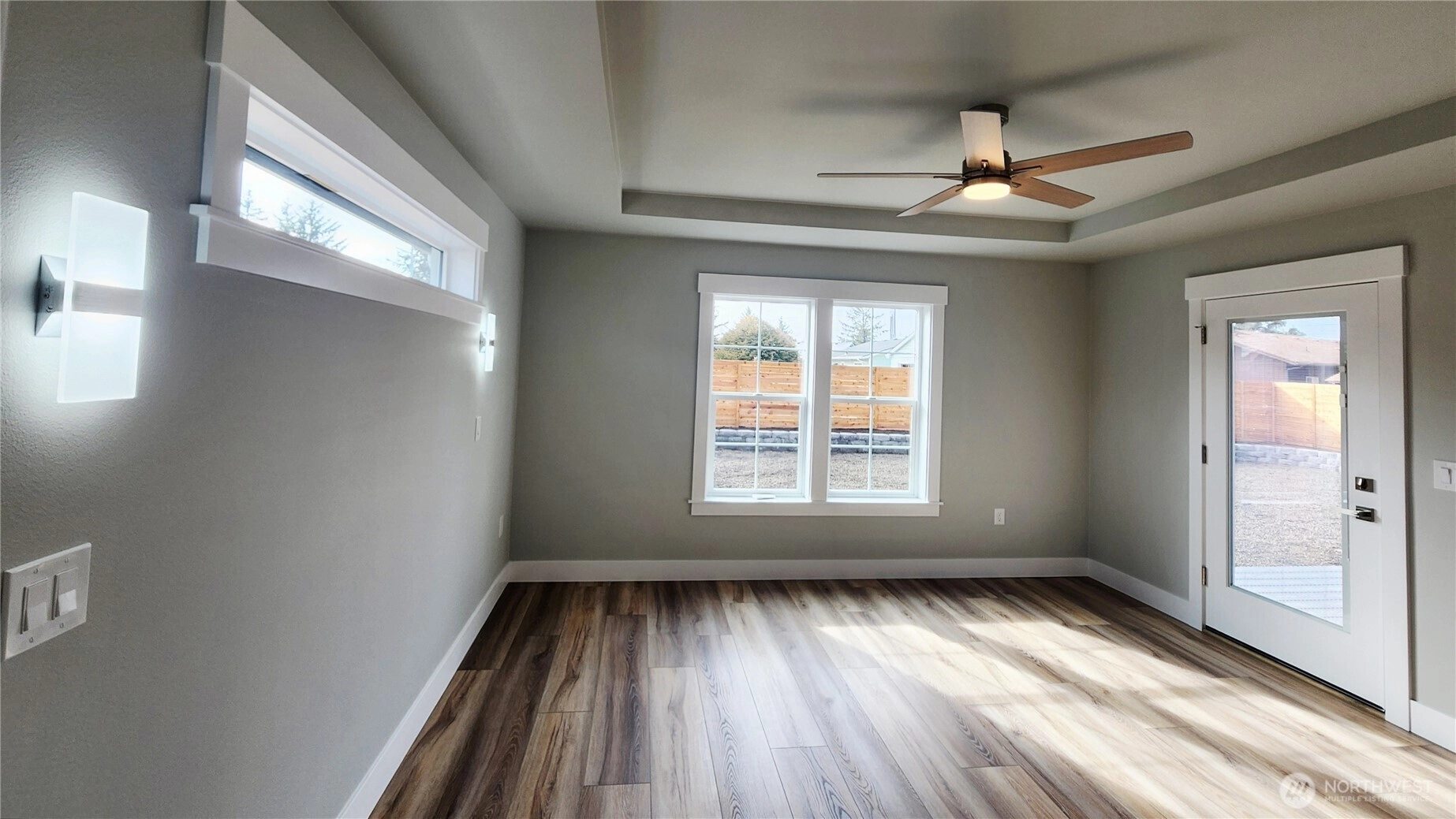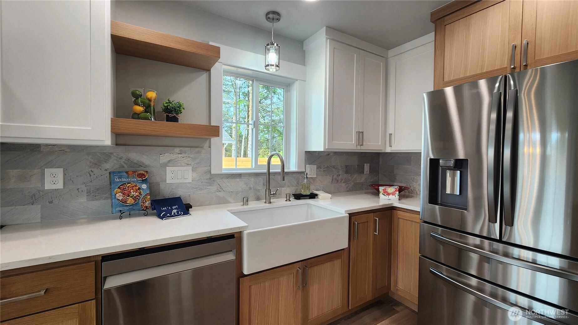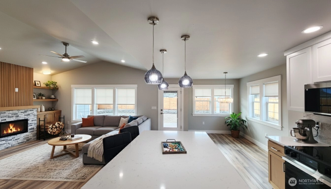 Step into style and comfort with this 1,365 sq ft coastal gem. Soaring 9' ceilings and a custom lighting package set the tone, while the chef’s kitchen dazzles with quartz slab counters, Samsung appliance package, tile backsplash, and a wine rack built into the island. The spacious primary suite offers a walk-in closet, walk-in shower, bidet-ready outlet, and private access to a covered back deck. Enjoy easy access to the Weatherwax trail and nearby disc golf course—perfect for nature lovers and outdoor enthusiasts. Some photos are virtually stage for design ideas!