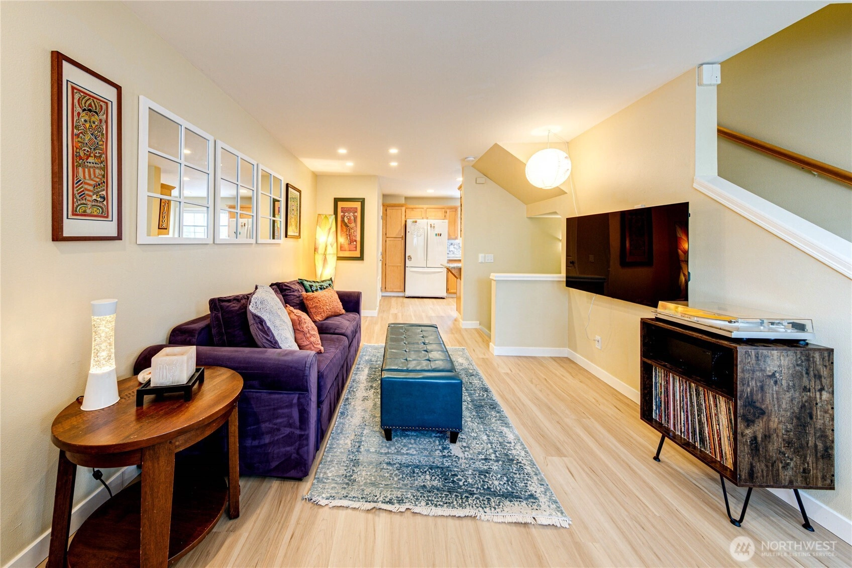 Welcome to this modern Seattle townhome in the heart of Greenwood! This light-filled 2-bed, 1.5-bath home features vaulted ceilings, skylights, a cozy fireplace, and an updated kitchen with granite counters. Enjoy morning coffee on your private balcony or explore nearby parks and the Burke-Gilman Trail. The remodeled kitchen and bath offer fresh, modern touches throughout. No HOA and a low-maintenance lot make this the perfect home for first-time buyers or anyone seeking city living with comfort and style. Easy commute to downtown and close to shops, restaurants, and transit. Don’t miss this move-in ready gem in a prime location!