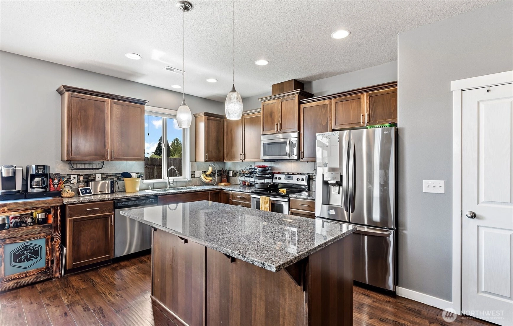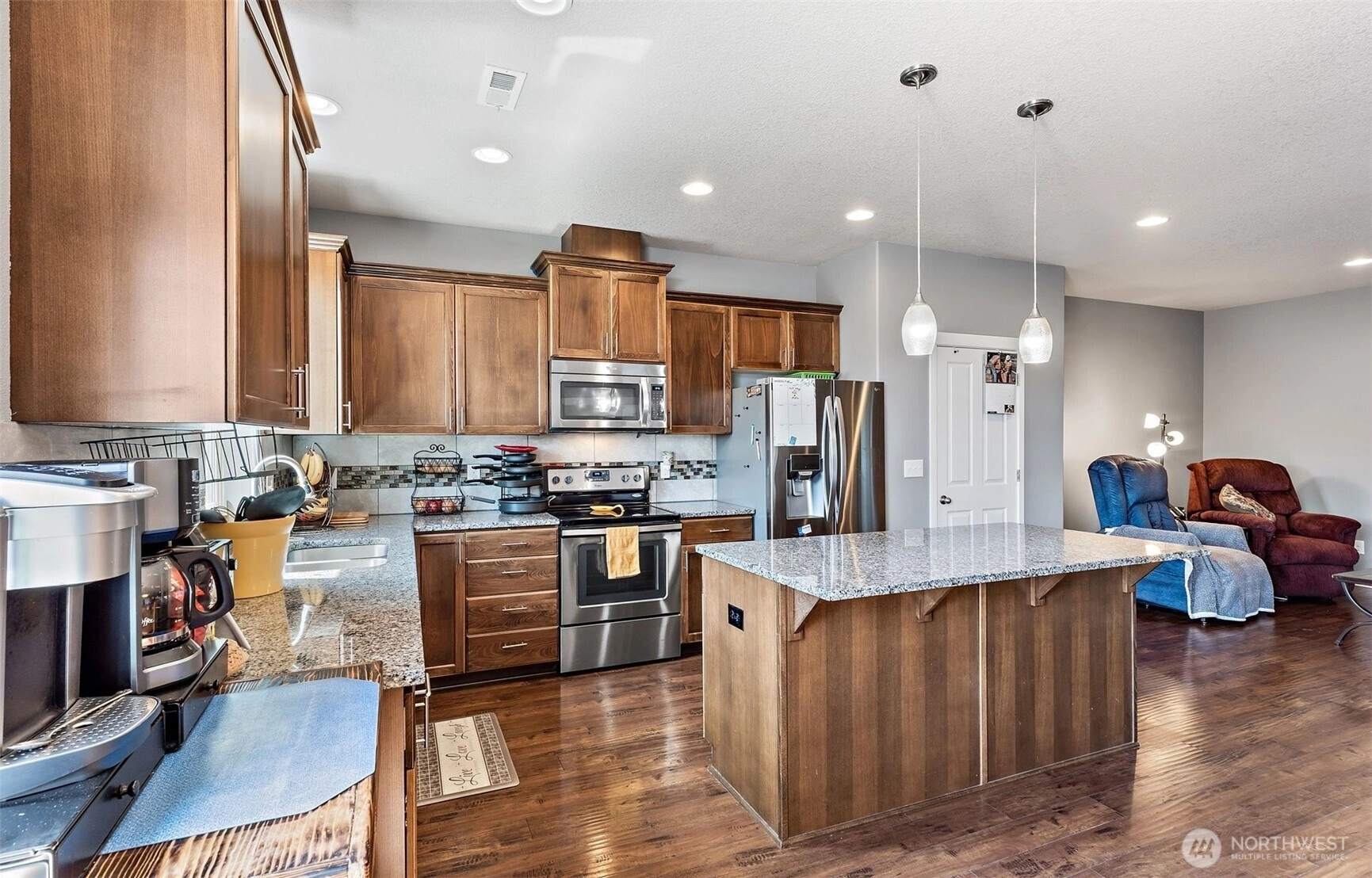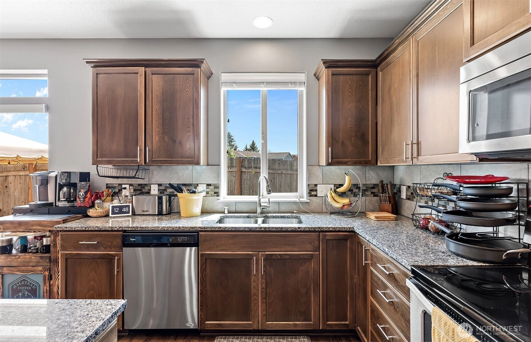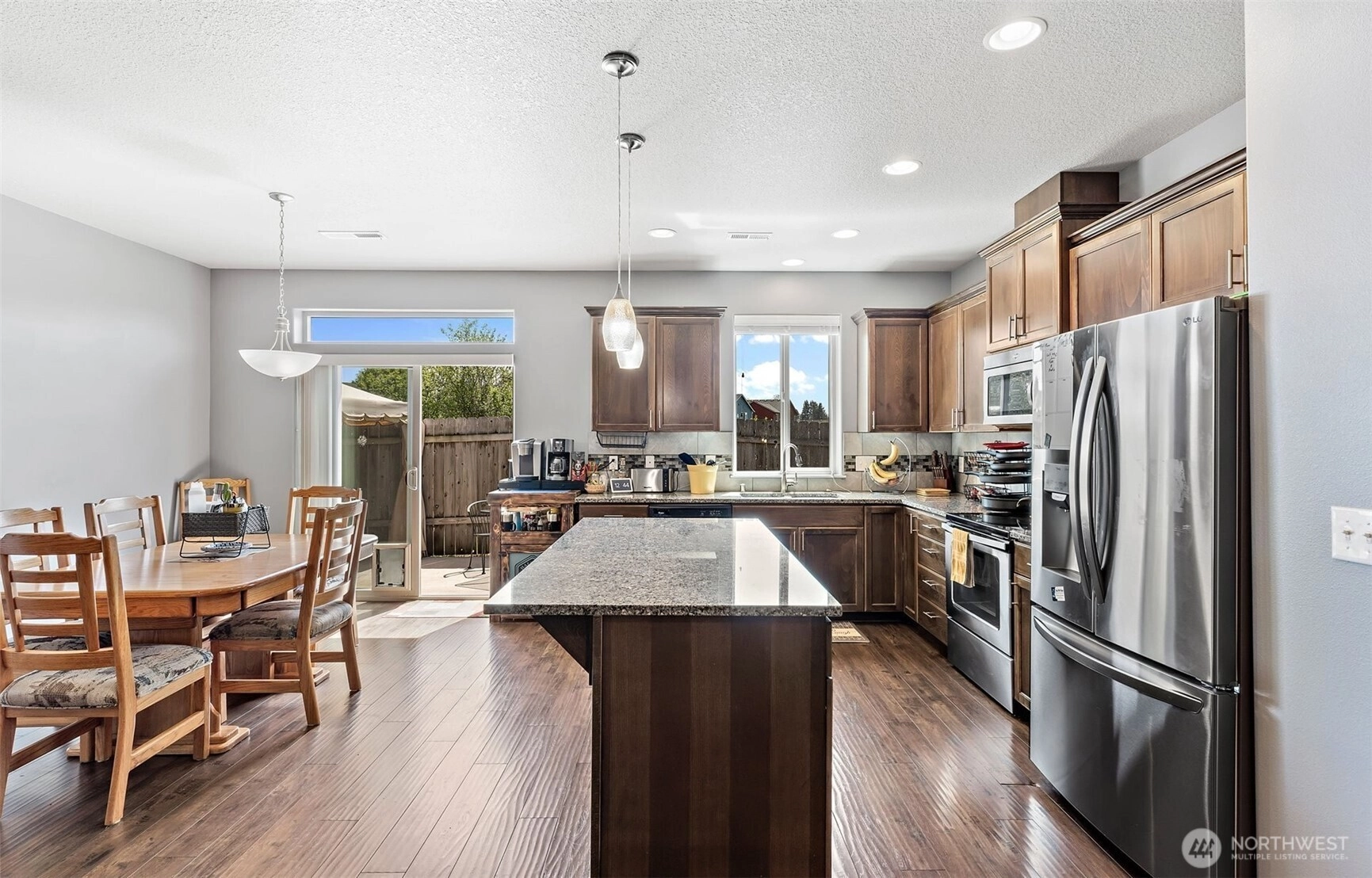 Welcome to this charming 3BD, 2BA 1-level home in the desirable Oak Meadow neighborhood! Built in 2015, this well-maintained 1,400 sqft. residence feat. an open concept layout w/ high ceilings, engineered hardwood floors, & a spacious kitchen w/ granite countertops, island, & stainless-steel appliances perfect for entertaining. The primary suite offers a walk-in closet & ensuite bath w/ double sinks & walk-in shower, while two additional bedrooms provide flexibility for guests or office space. Enjoy outdoor living w/ a covered patio, gazebo, and fully fenced yard. Conveniently located near schools, parks, & shopping. This property is the perfect blend of comfort, style, and low-maintenance living move-in ready and waiting for you!