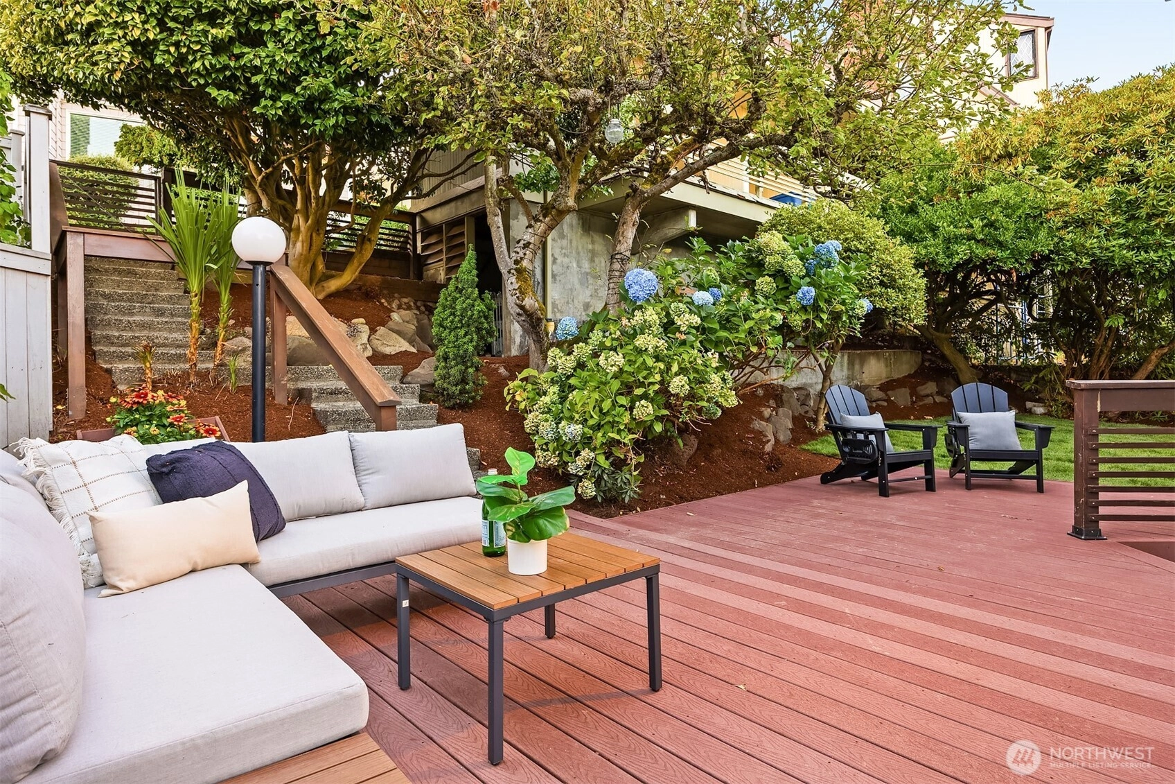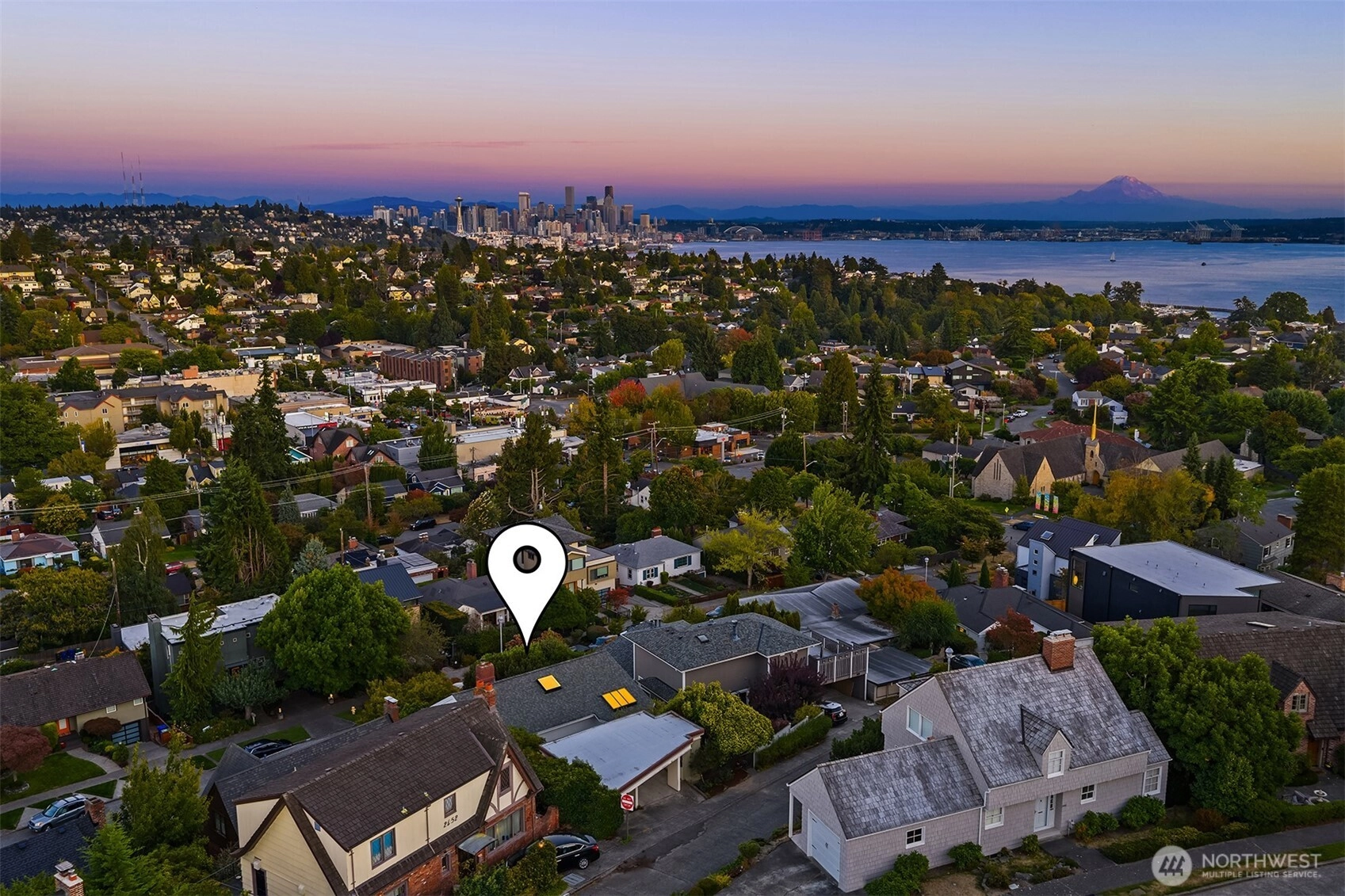 A perfect blend of old-world charm & modern sophistication, this Magnolia home offers a rare combination of beauty and function. Stunning SE-facing views extend from Mt. Rainier to the Space Needle. The versatile floor plan includes 3 bds up, 1 on the main & 1 huge bd down. You’ll love how this house flows! Design features include vintage brass & iron railings, exposed brick, vaulted ceilings & original midcentury-built-ins. Completely-renovated daylight basement features new kitchen, bth, flex rm & large living/media/rec space — use as ADU if desired. Enjoy newly landscaped backyard/patio & carport for 2 + storage (easy alley access). Located in the coveted neighborhood of Carleton Park & just blocks from shopping/dining in the Village.
