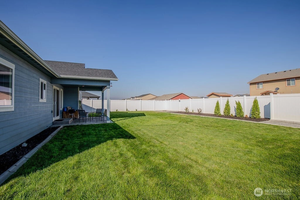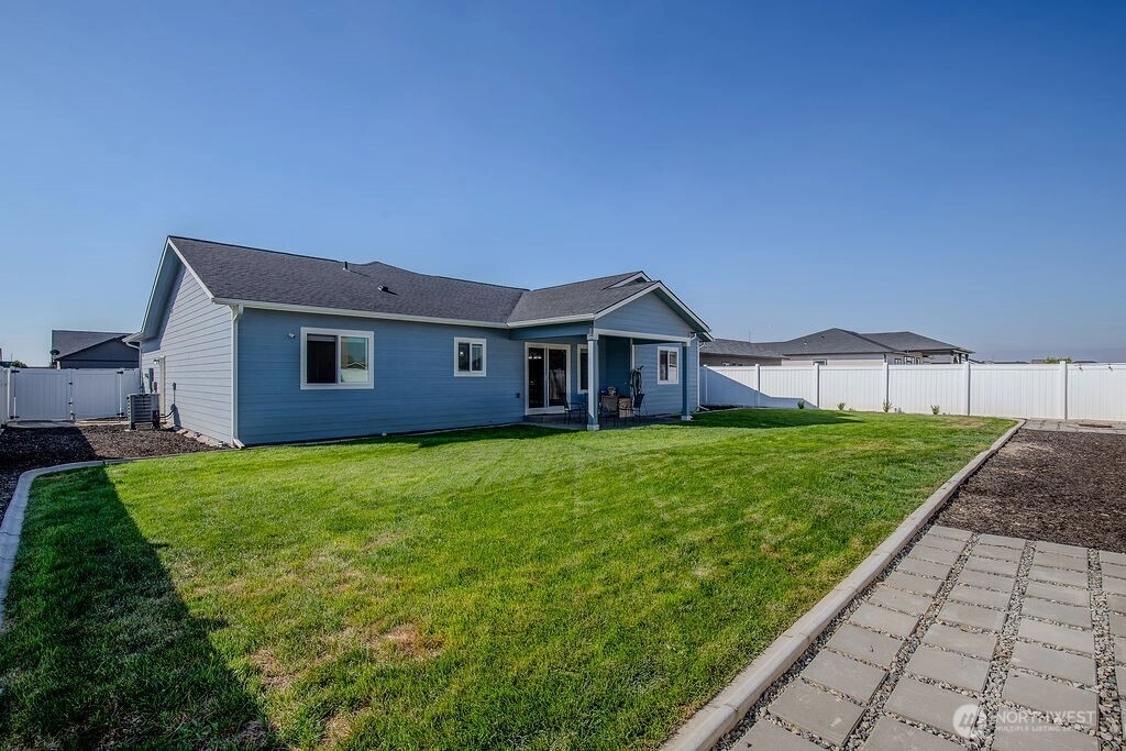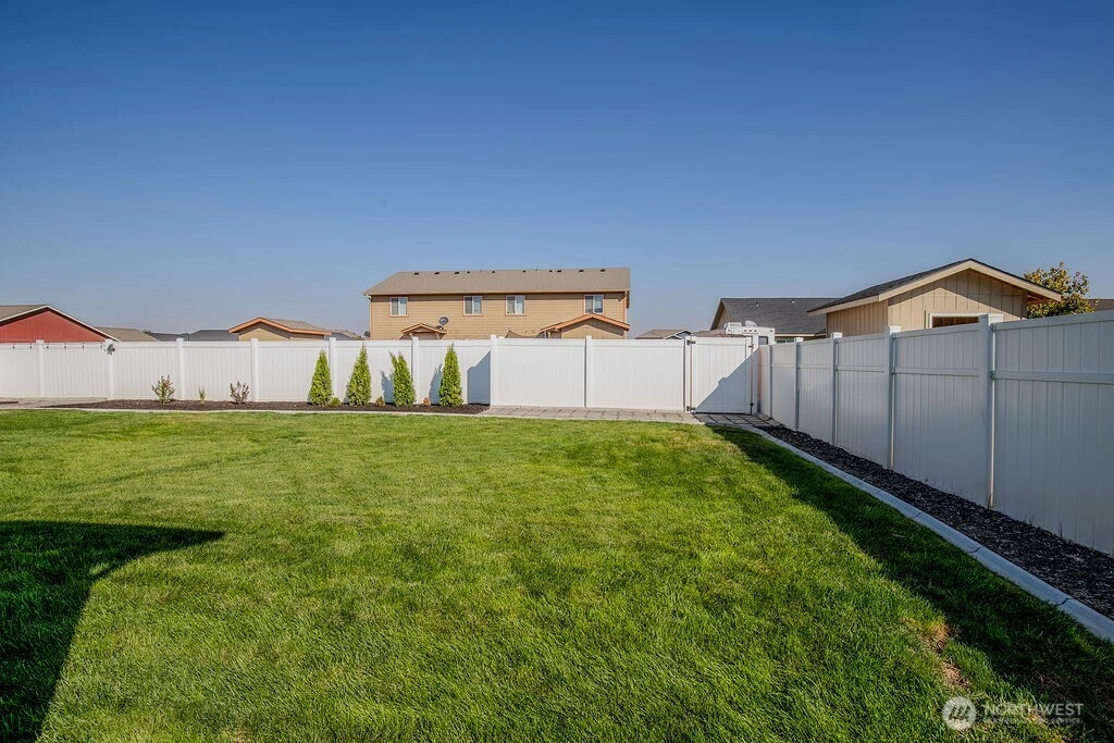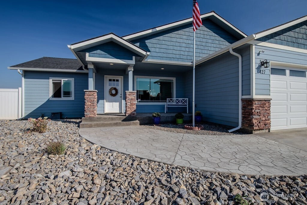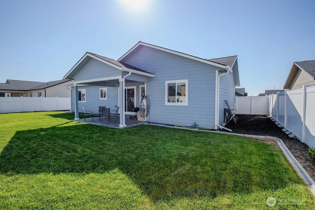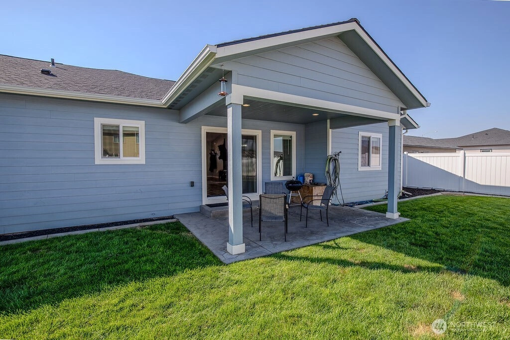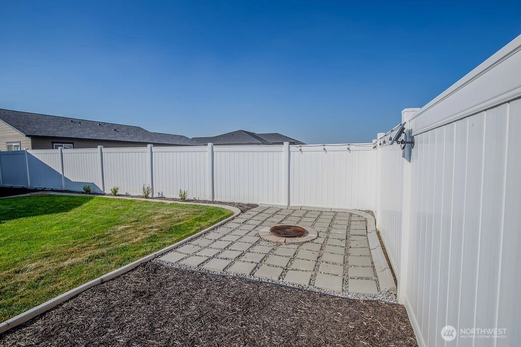 Fantastic home in a great neighborhood. Â 3 bedrooms, 1 3/4 baths with a large primary bedroom suite and open floor plan. Â The great room has a vaulted ceiling with the kitchen featuring a large island, solid surface counter top and beautiful soft-close cabinets. The primary bathroom and guest bathroom also have solid surface counter tops. The attached, finished garage has additional concrete next to it for your boat, RV or guest parking. Â Vinyl fenced back yard can be accessed off the alley or through double gate in the front. Relaxing under the large covered back patio sounds perfect after a long day. Concrete curbing and firepit are great features. Front yard is drought resistant design.