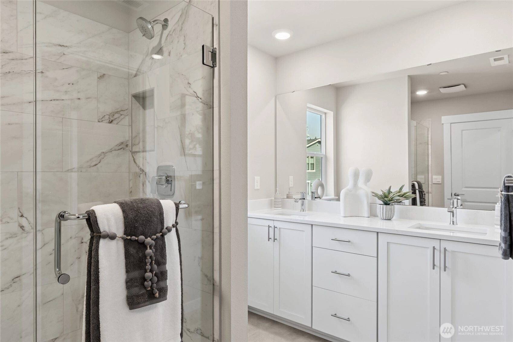 Welcome to Rosewood Court, an enclave of 51 brand-new single-family homes in desirable North Rose Hill, ideally situated between Kirkland and Redmond. This thoughtfully designed home offers 3 bedrooms, 2.5 baths, and a 2-car garage on a premium corner homesite. The main level features a spacious gourmet kitchen with a huge island, quartz counter tops, slow-close white cabinetry, and a built-in 48" counter-depth side-by-side refrigerator - perfect for entertaining and everyday living. Upstairs, enjoy the primary suite with a 4-piece bath and large walk-in closet, along with two additional bedrooms, laundry room and full bath. Additional highlights include central A/C with heat pump, Smart Home Technology, Ev-charging, and front load washer & dryer. + pedestals. Close to top employers, dining, parks and commuter routes, yet nested in a quiet, peaceful neighborhood with spacious street and ample parking. Buyer must register broker on first visit, including open houses.
